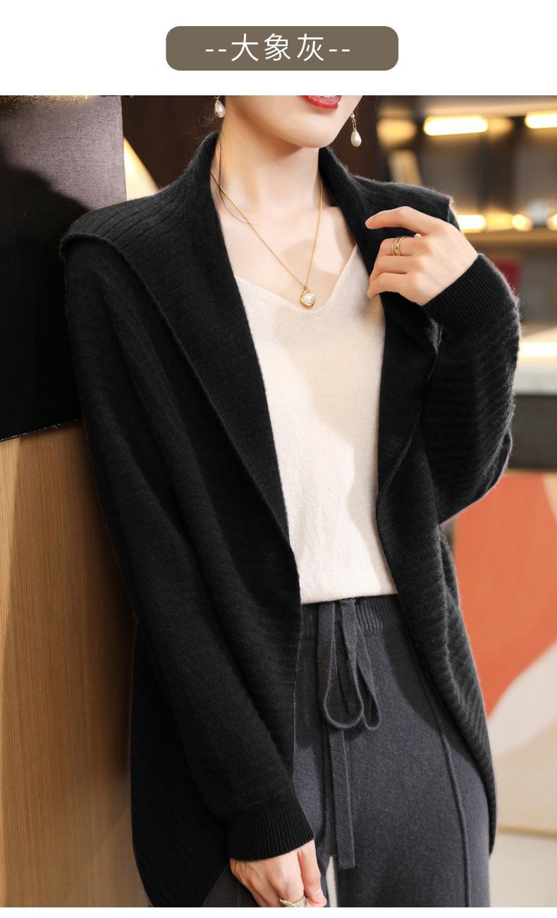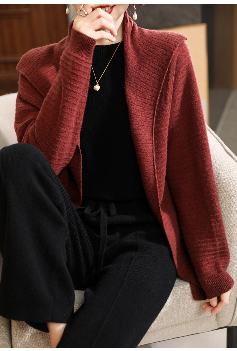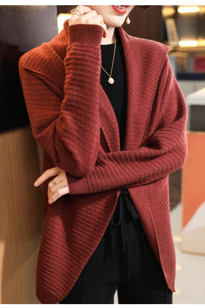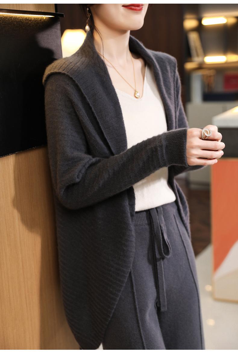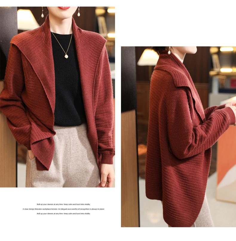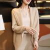 Cárdigan de punto de lana pura 100% para mujer, chal de dos caras, para otoño e invierno, chaqueta de lana elegante de longitud media, suelta