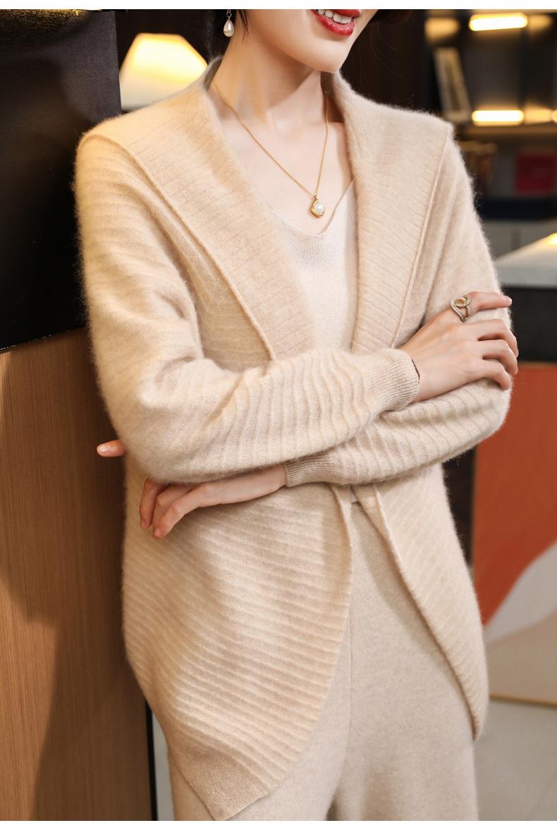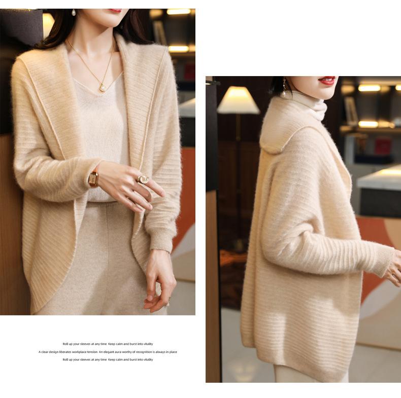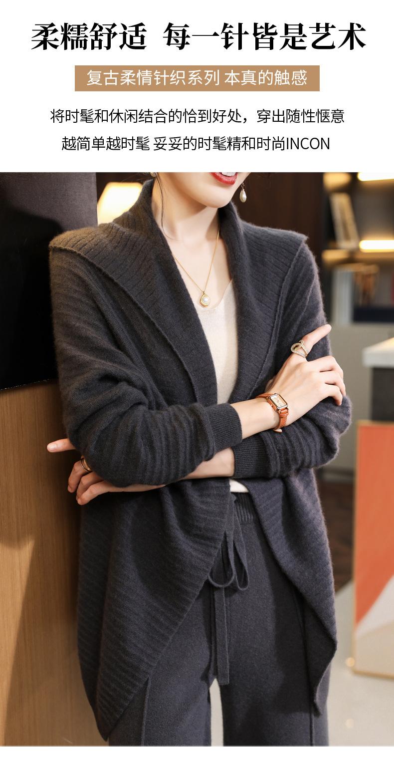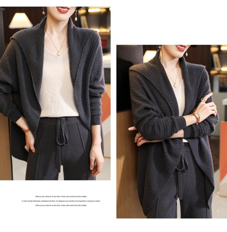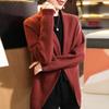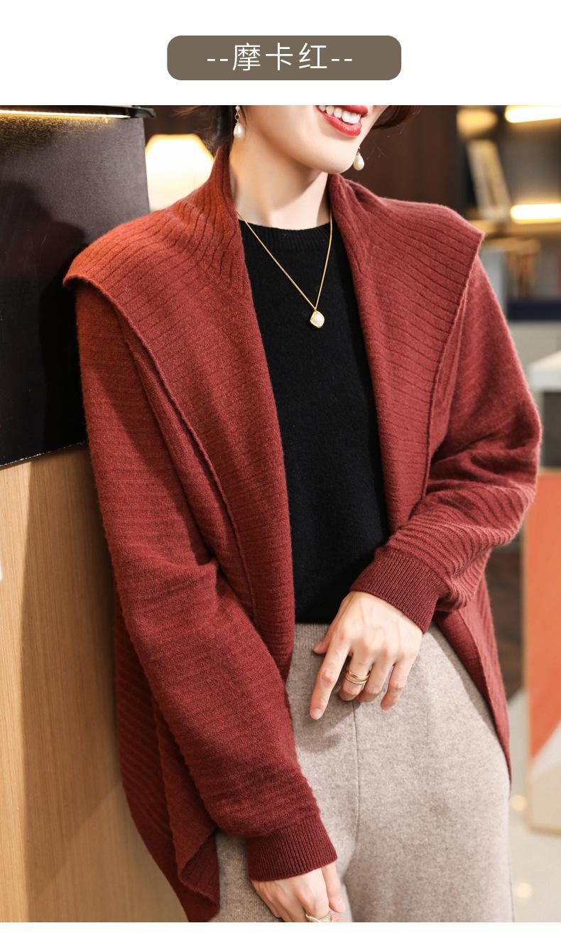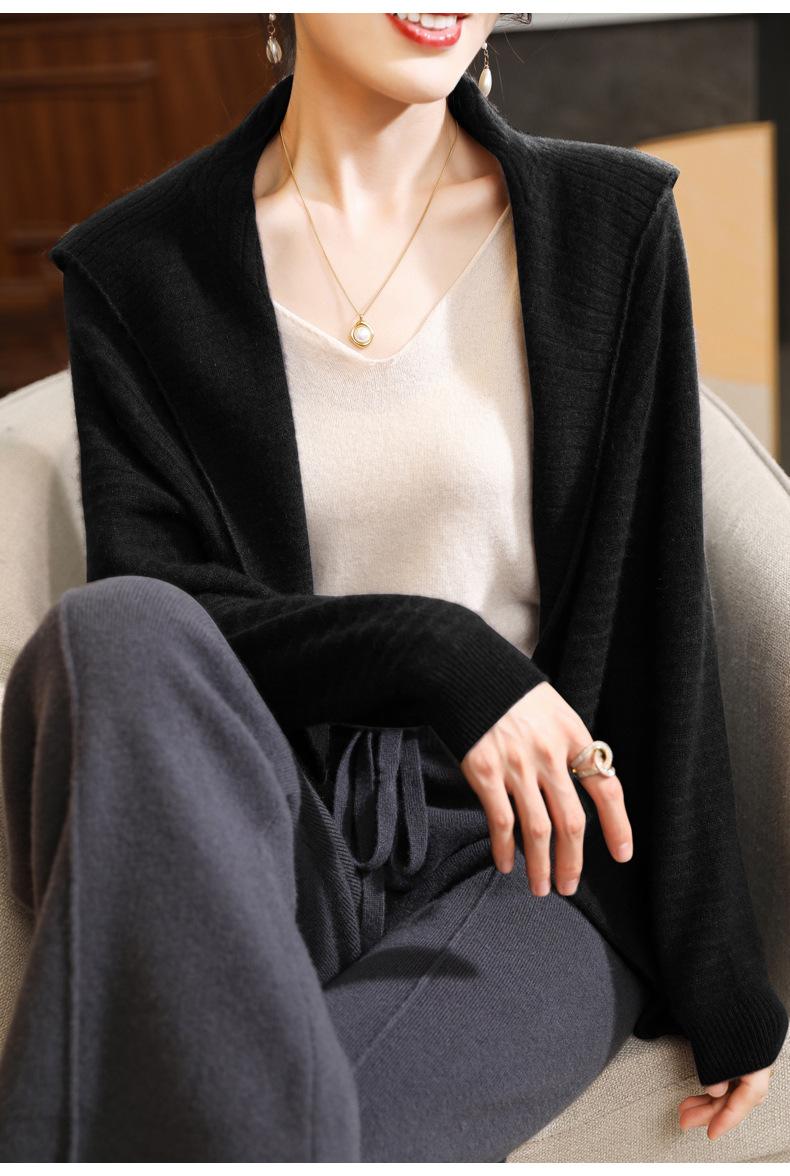 Cárdigan de punto de lana pura 100% para mujer, chal de dos caras, para otoño e invierno, chaqueta de lana elegante de longitud media, suelta