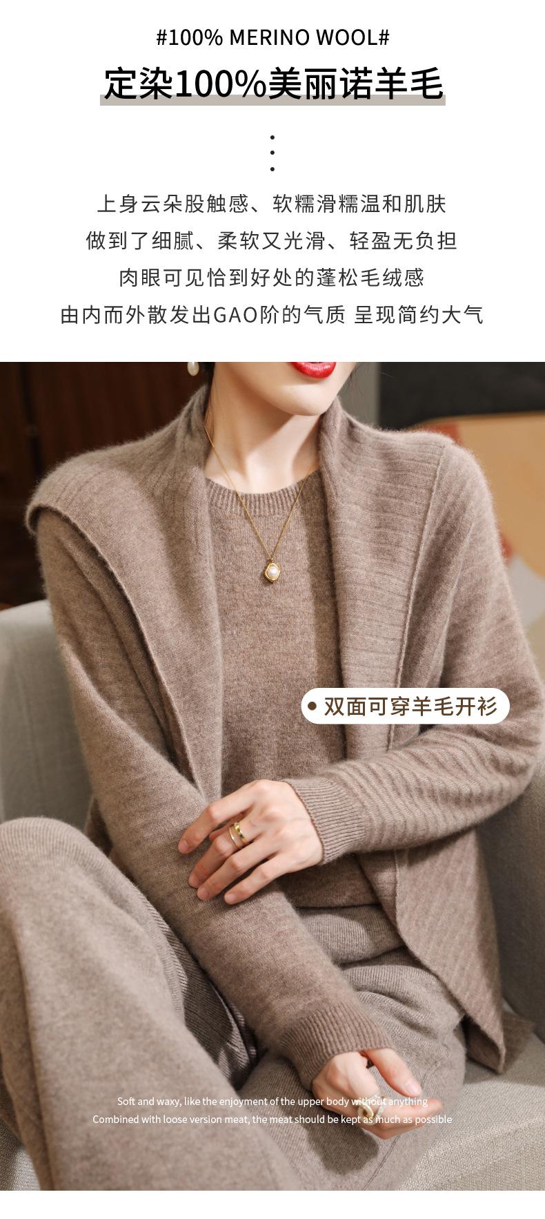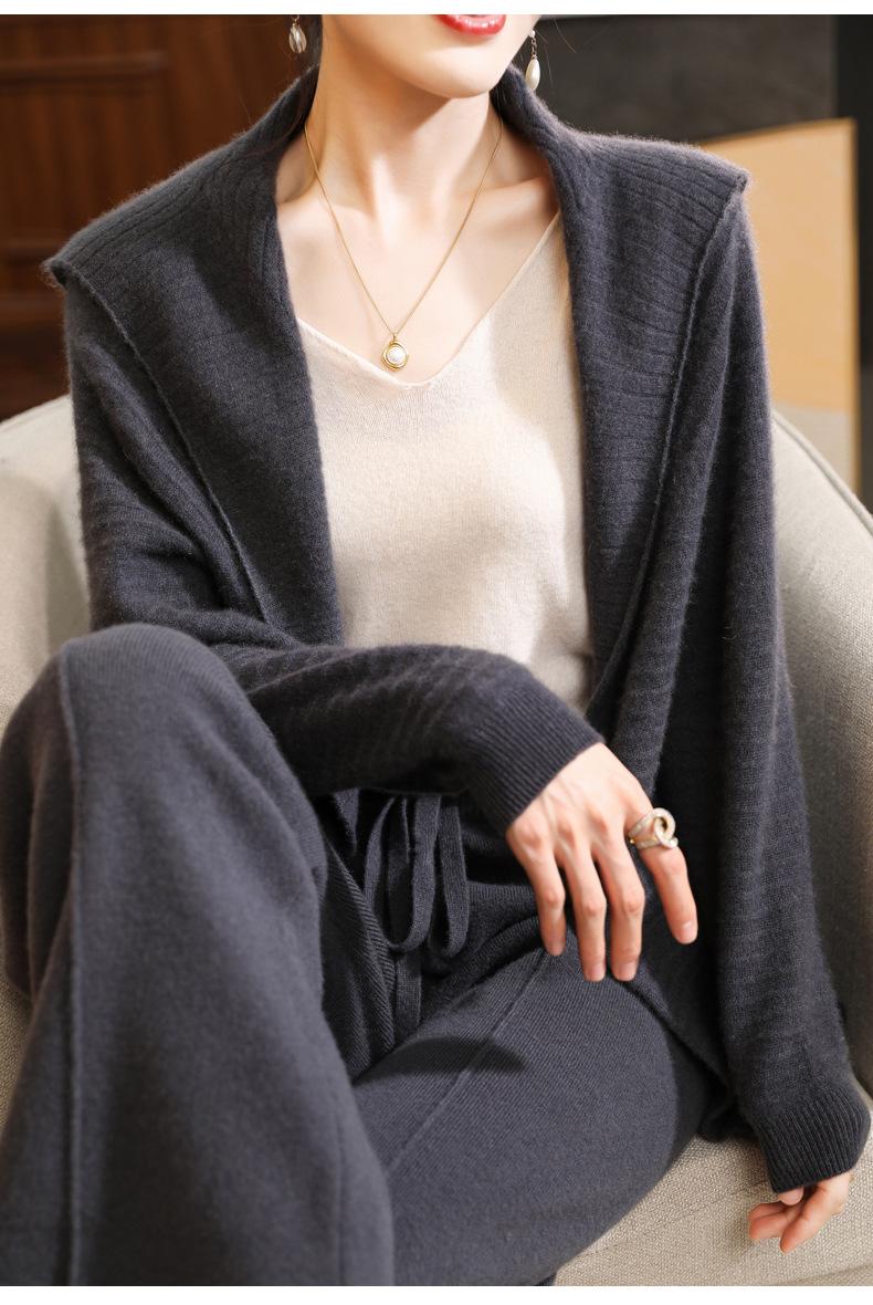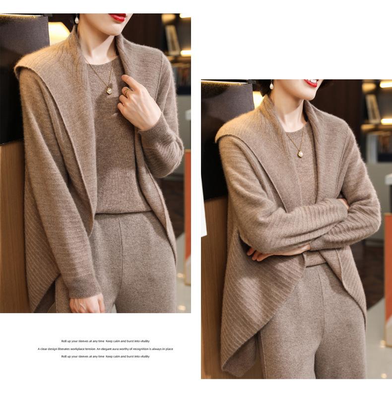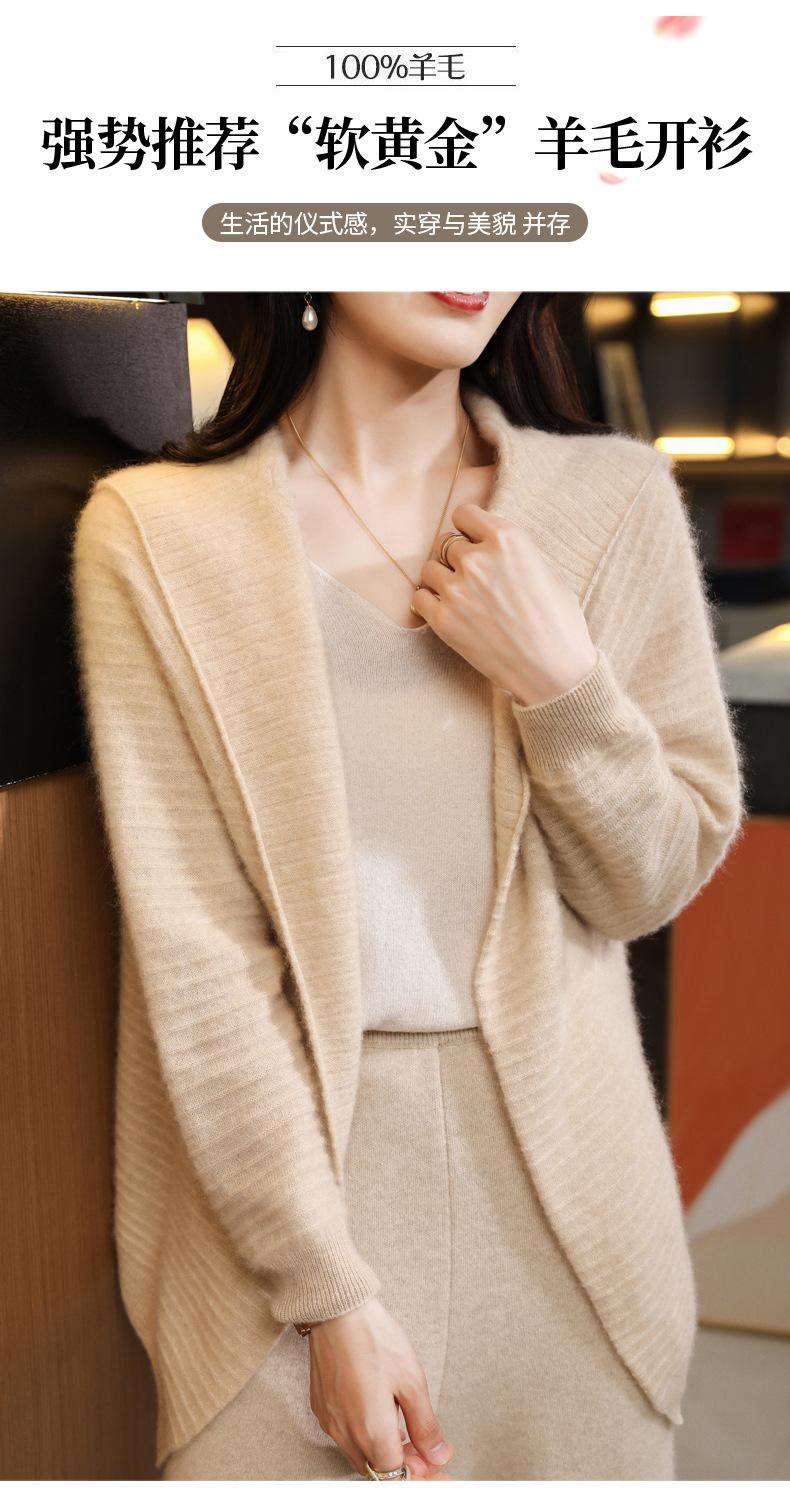 Cárdigan de punto de lana pura 100% para mujer, chal de dos caras, para otoño e invierno, chaqueta de lana elegante de longitud media, suelta