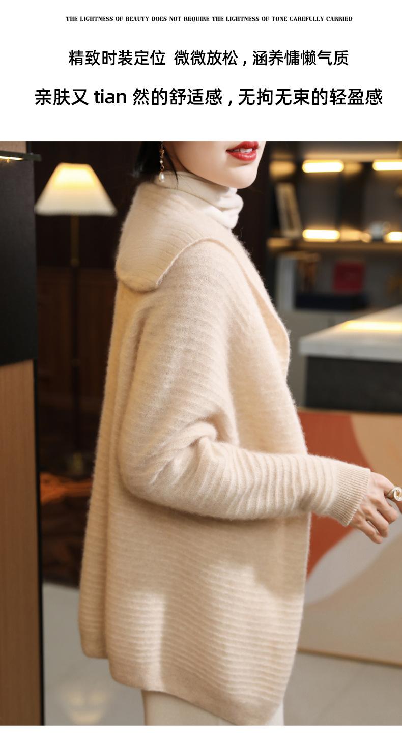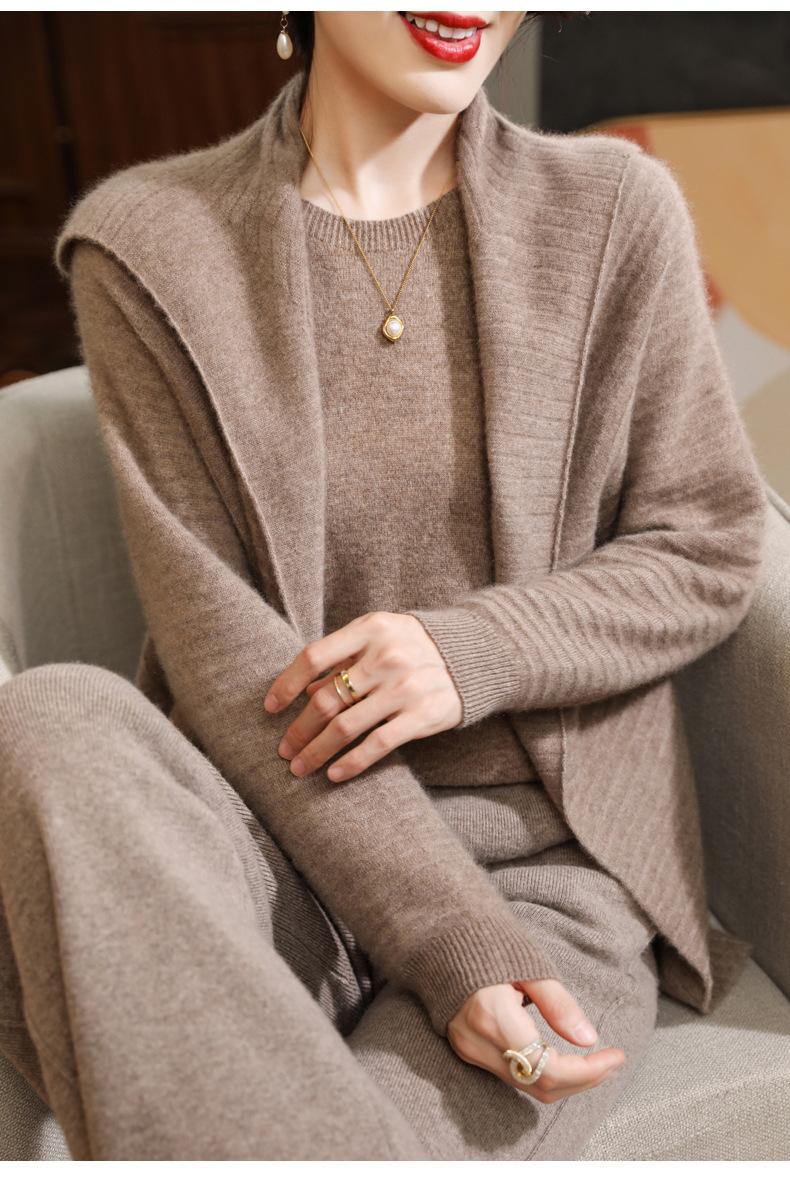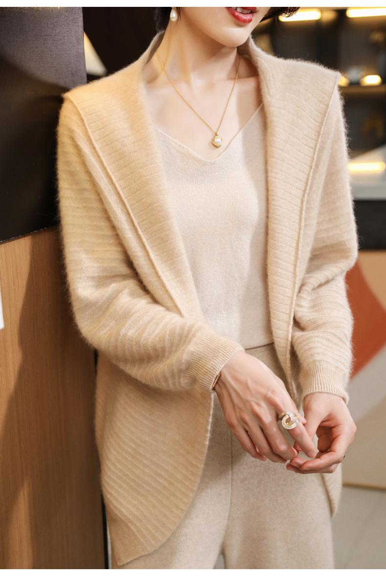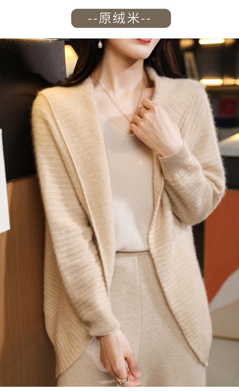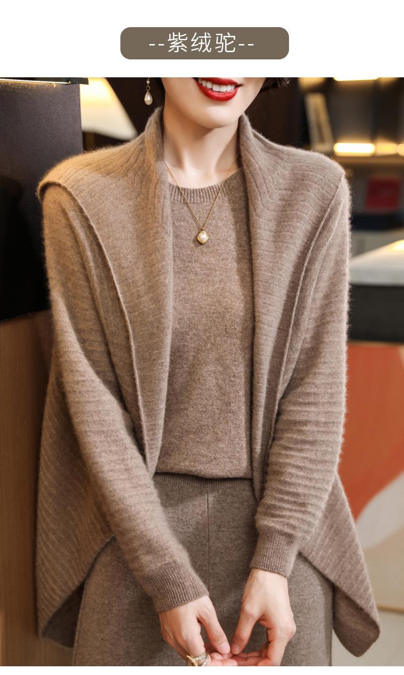 Cárdigan de punto de lana pura 100% para mujer, chal de dos caras, para otoño e invierno, chaqueta de lana elegante de longitud media, suelta