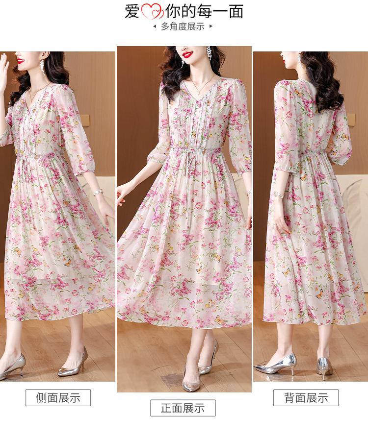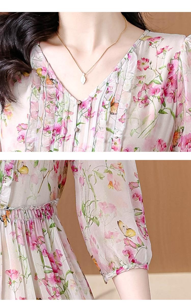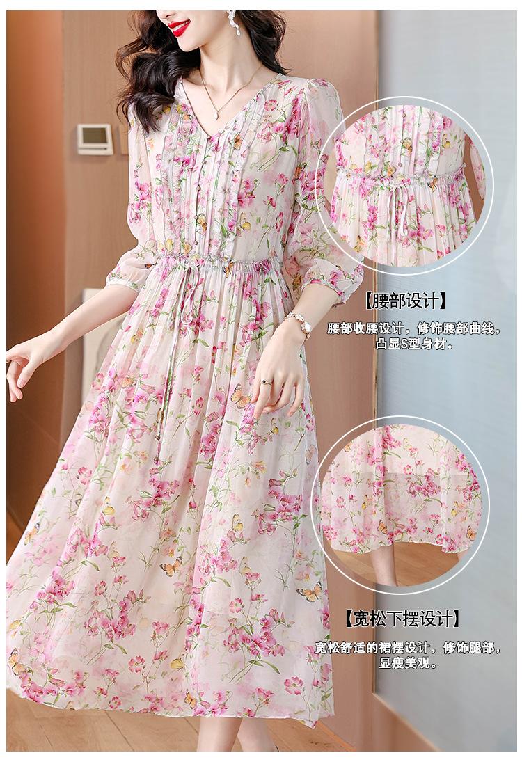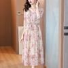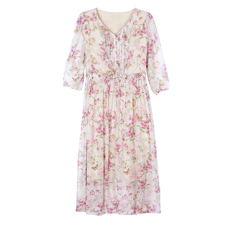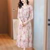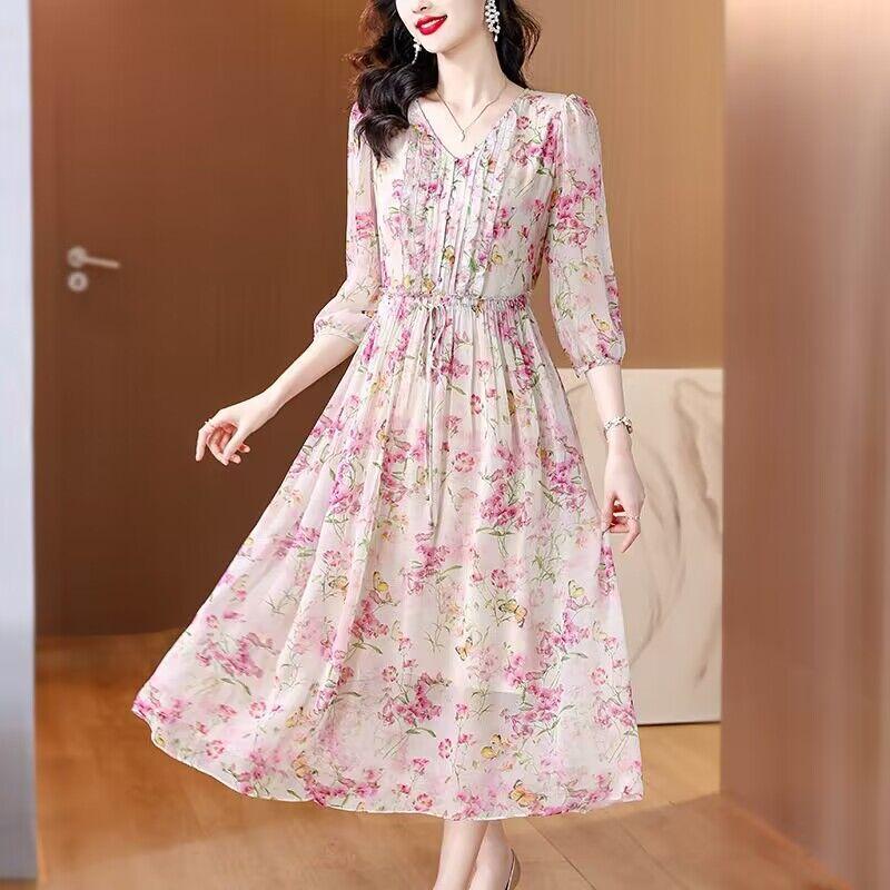 Vestido floral estilo francés con escote en V suave para mujer, verano 2024, nuevo, elegante, dulce, antiedad, largo medio