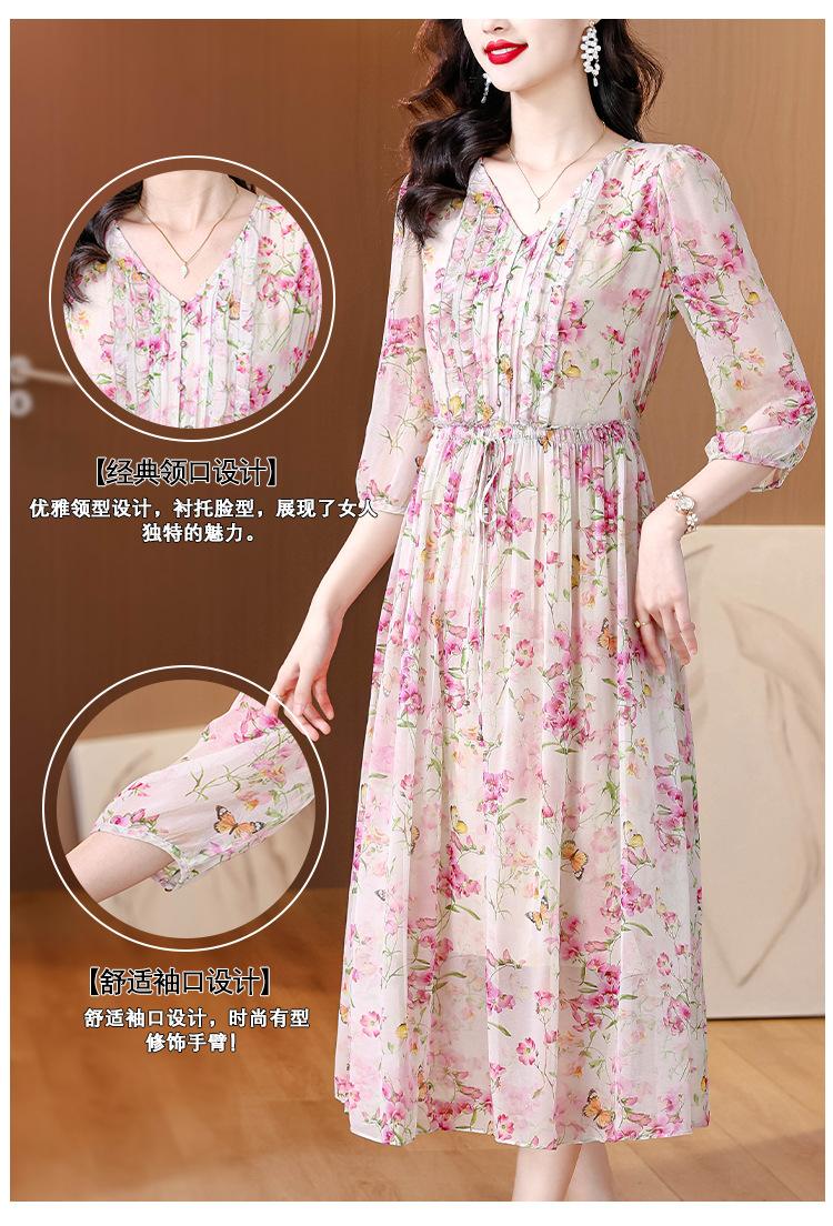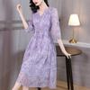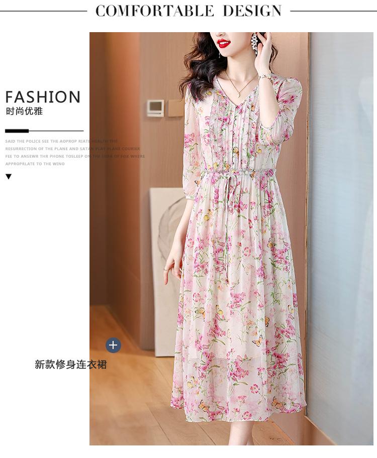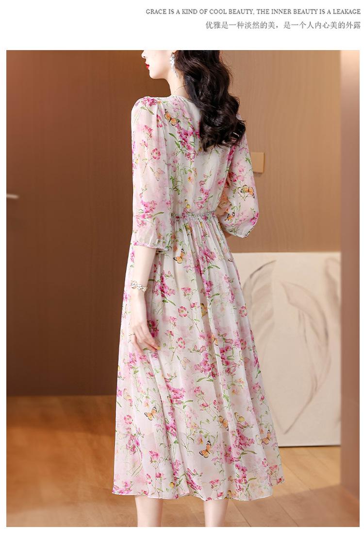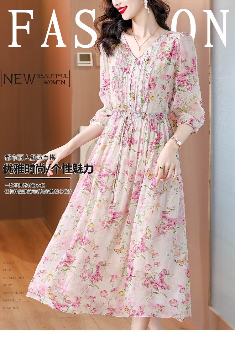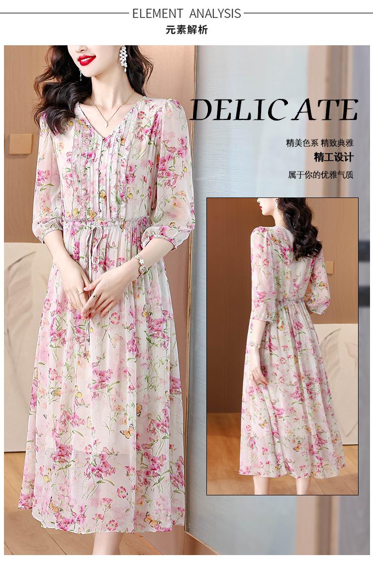 Vestido floral estilo francés con escote en V suave para mujer, verano 2024, nuevo, elegante, dulce, antiedad, largo medio