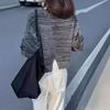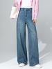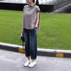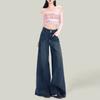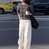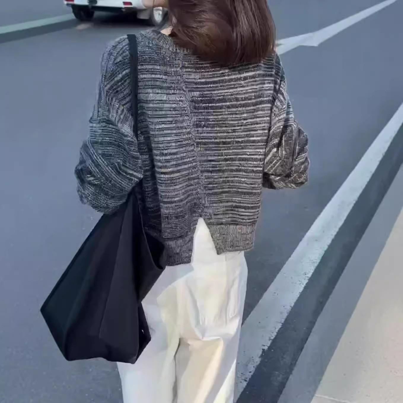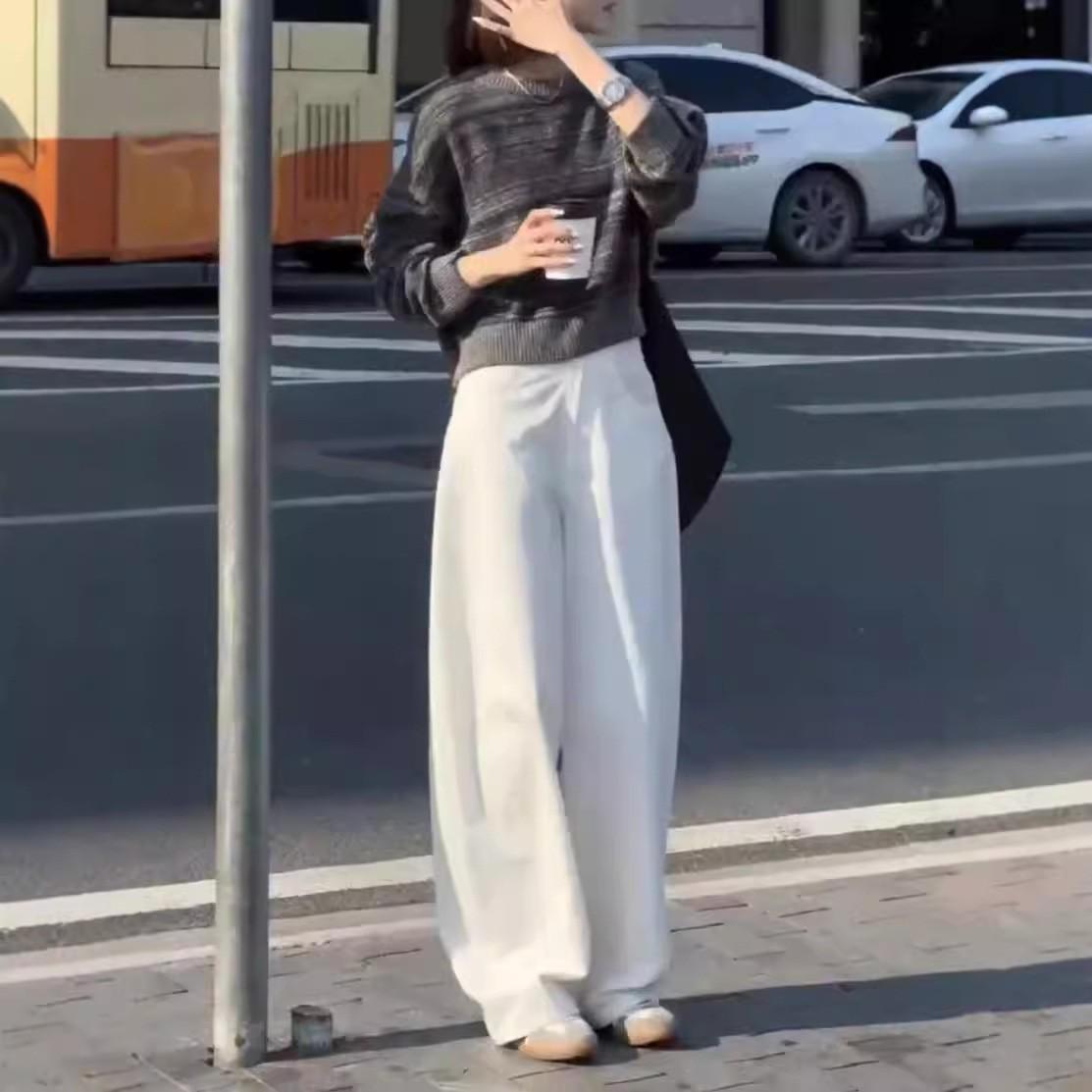 24736 Gran Amor Meiyuan 2025 Otoño Nuevo Retro Gris Cuello Redondo Manga Larga Top Pantalones Pierna Ancha Cintura Alta Mujer