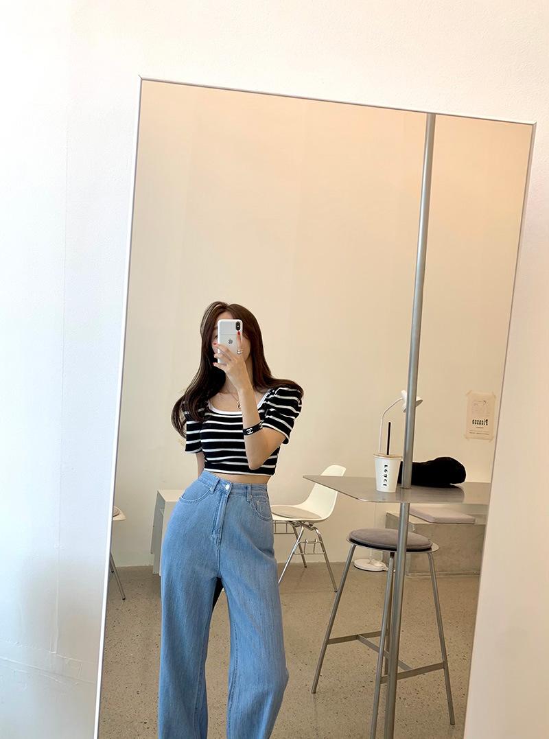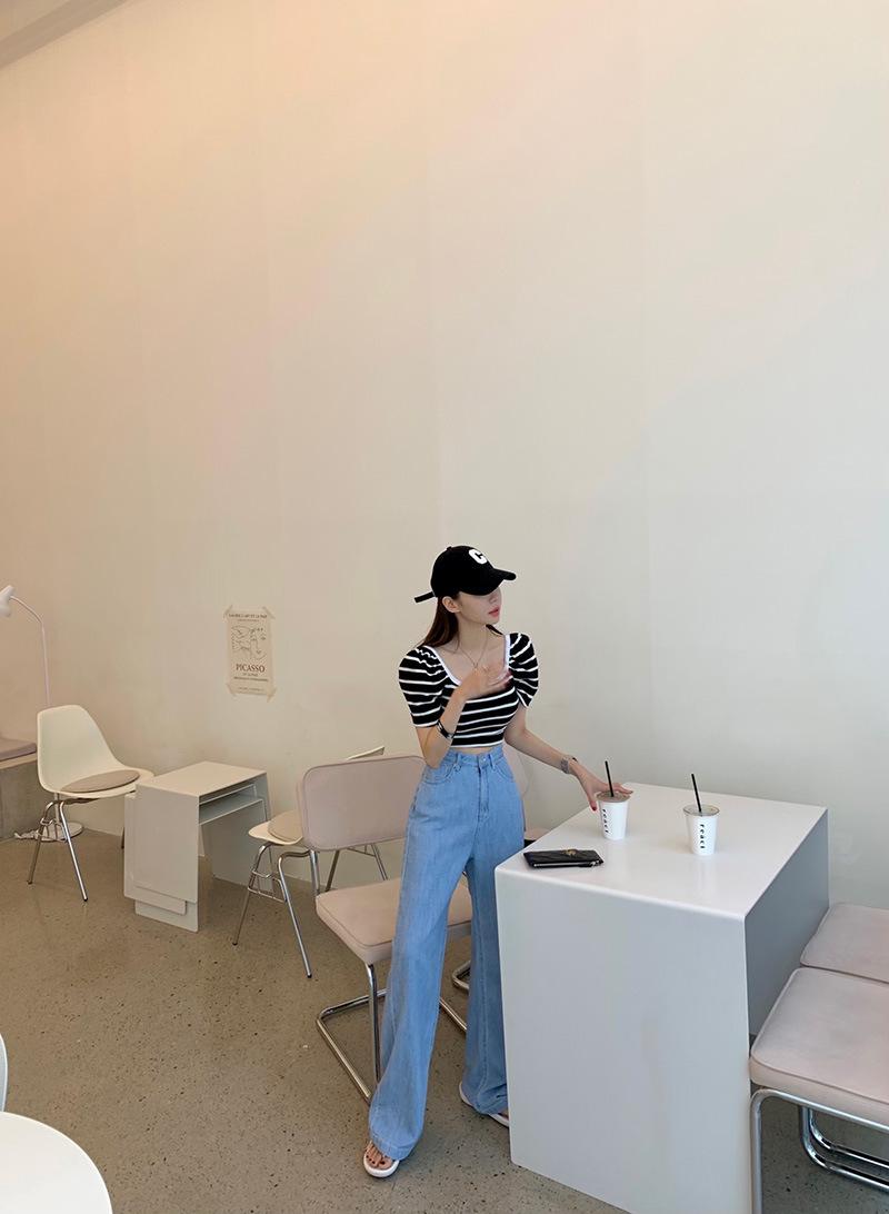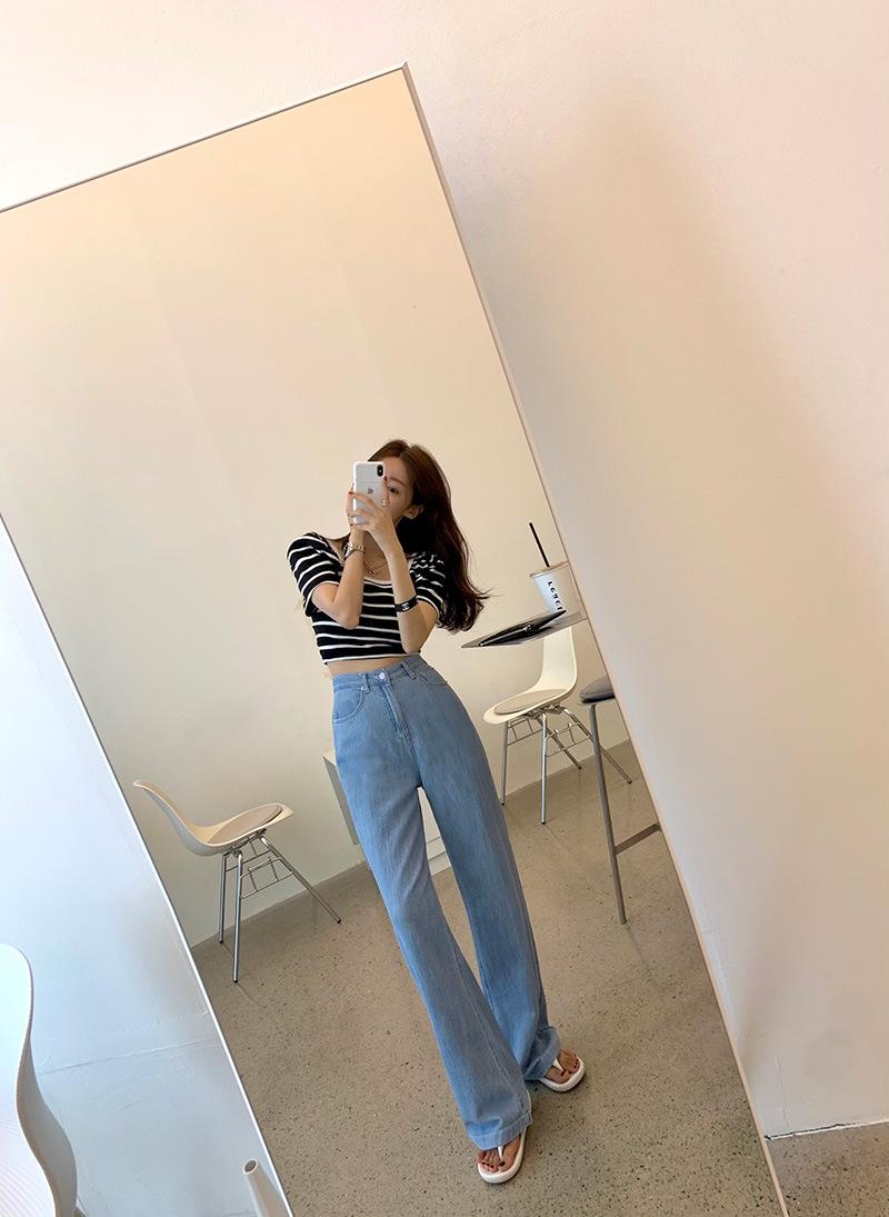 Vaqueros de pierna ancha, lavados, de cintura alta y alta calidad, de Dongdaemun, para mujer coreana, para verano
