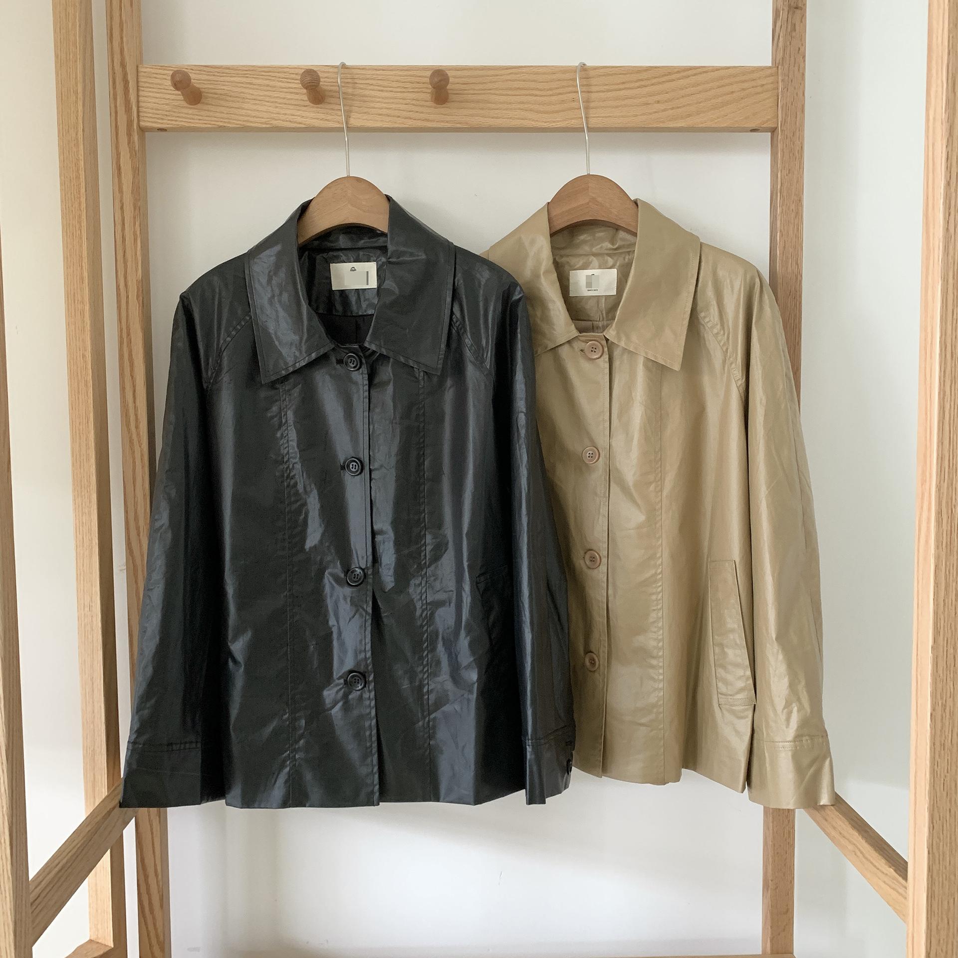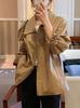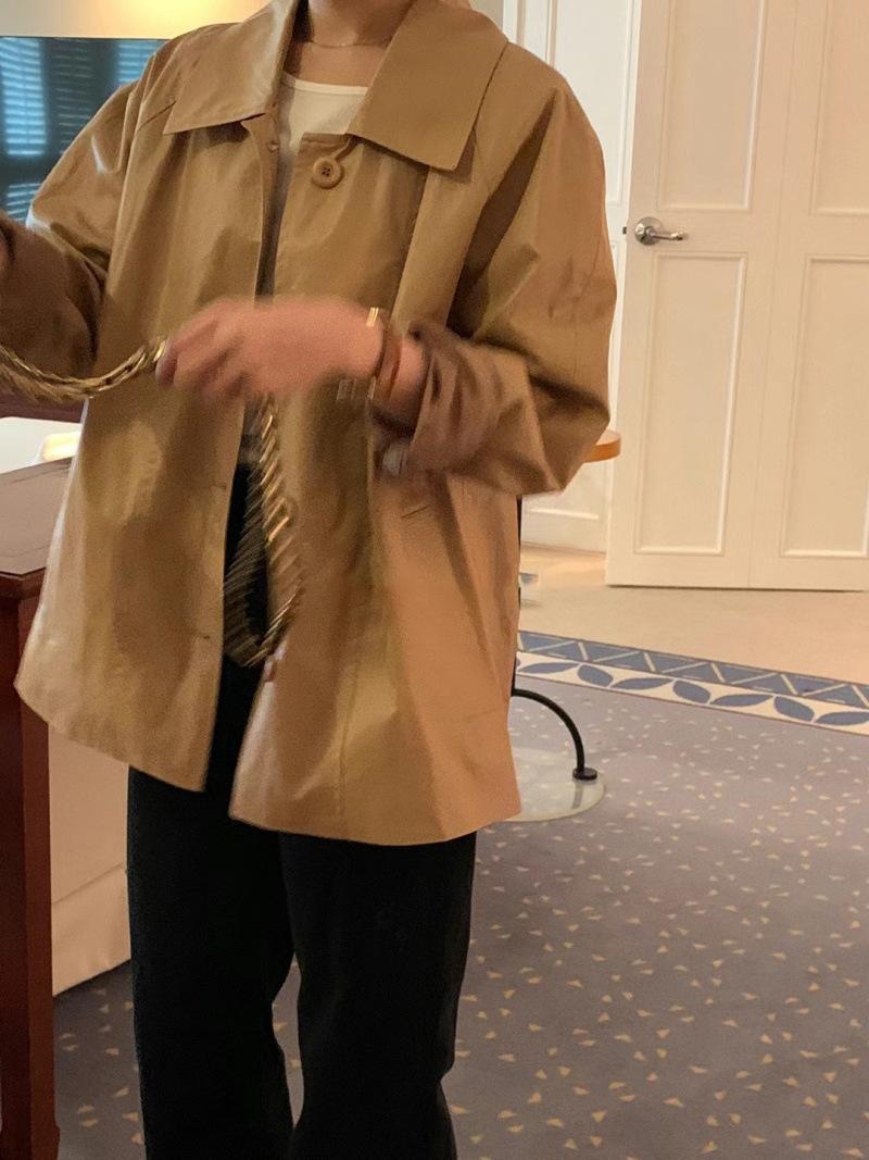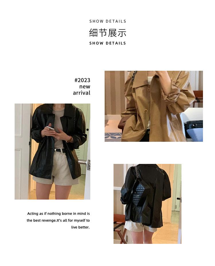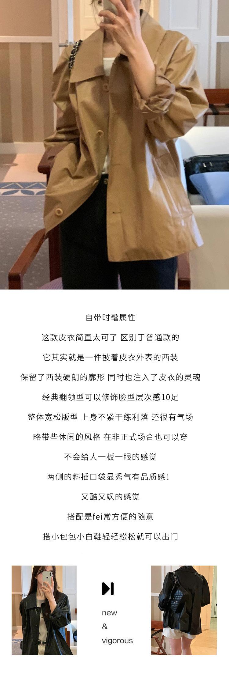Chaqueta de cuero de manga larga con solapa suelta y botonadura sencilla estilo coreano OB * ET, disponible en otoño de 2024.