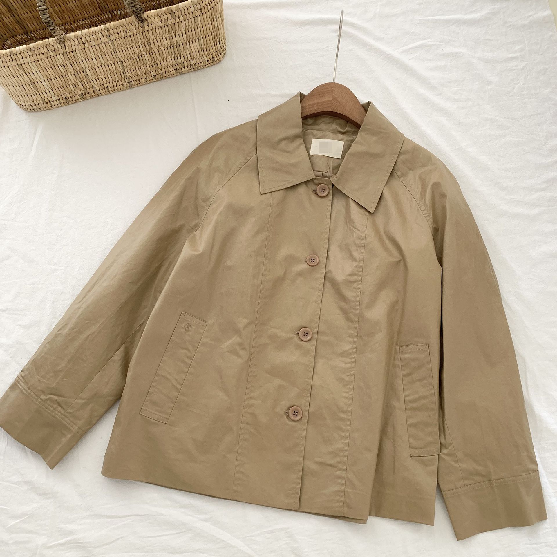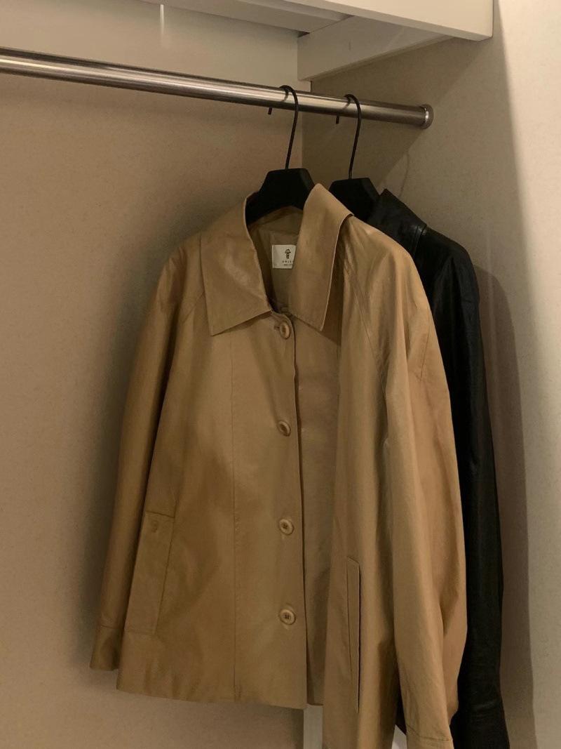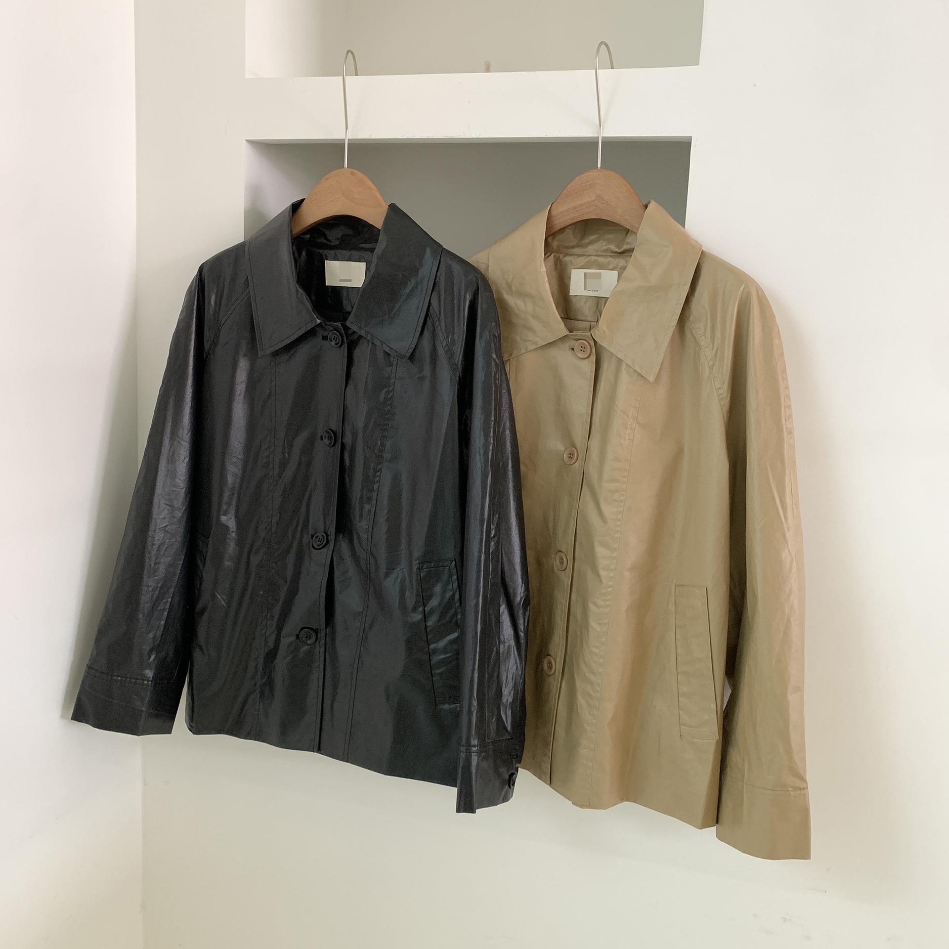 Chaqueta de cuero de manga larga con solapa suelta y botonadura sencilla estilo coreano OB * ET, disponible en otoño de 2024.