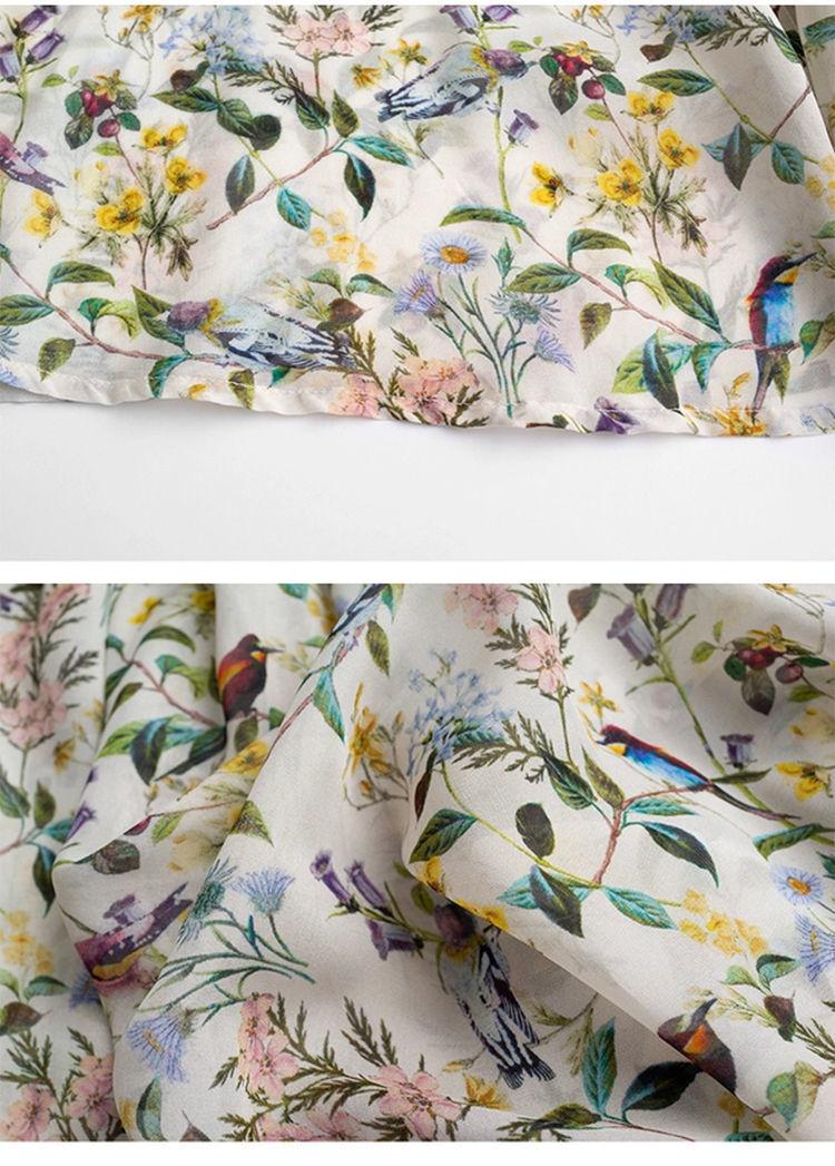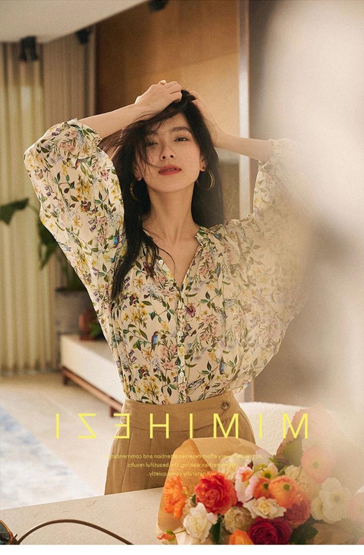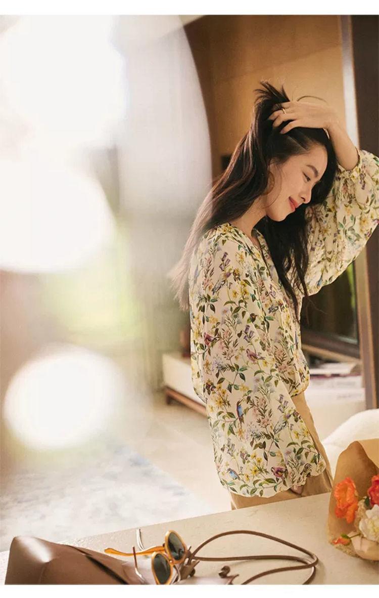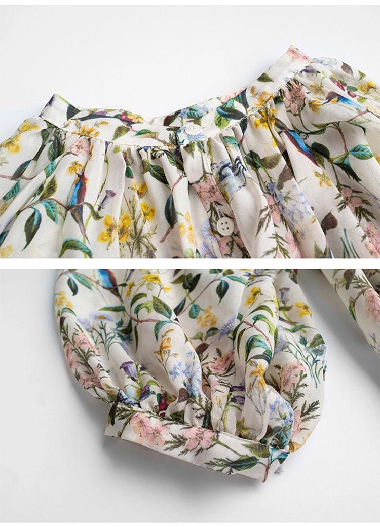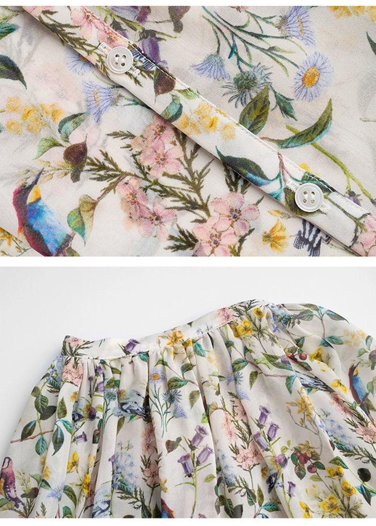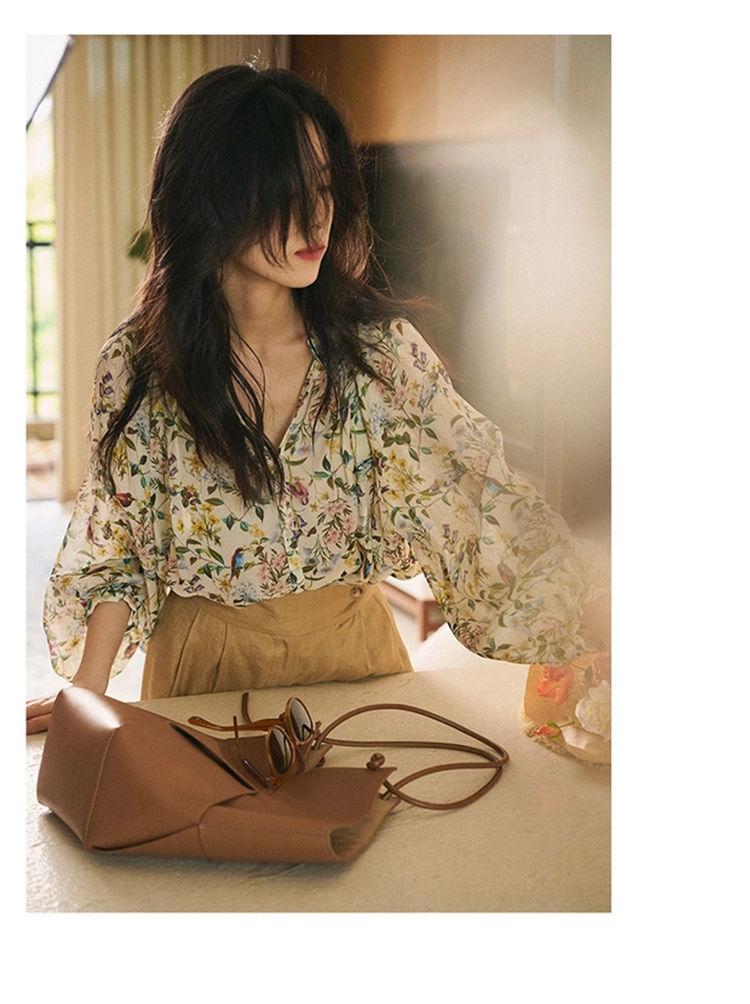 Camisa elegante de gasa con estampado floral para mujer, blusa francesa fina de manga de tres puntos con diseño de hadas de verano para principios de otoño