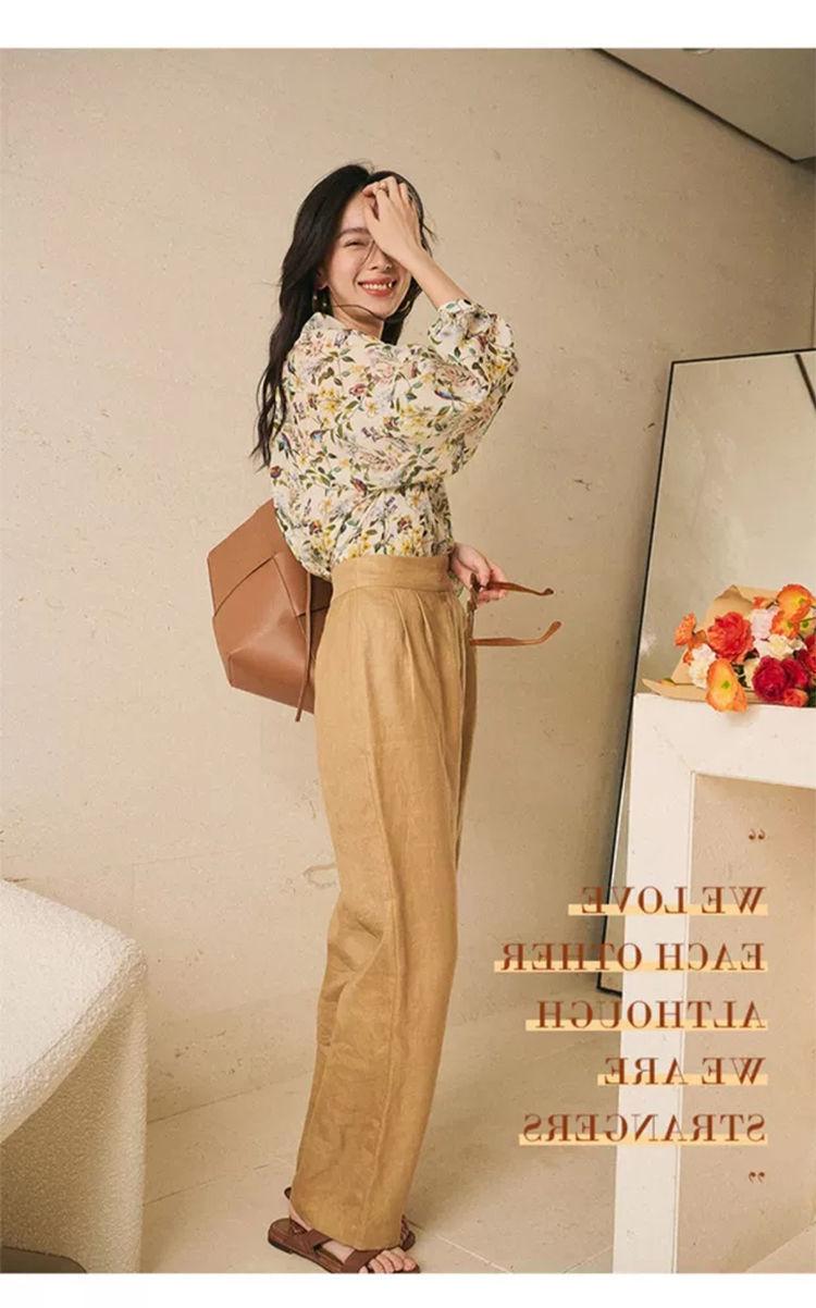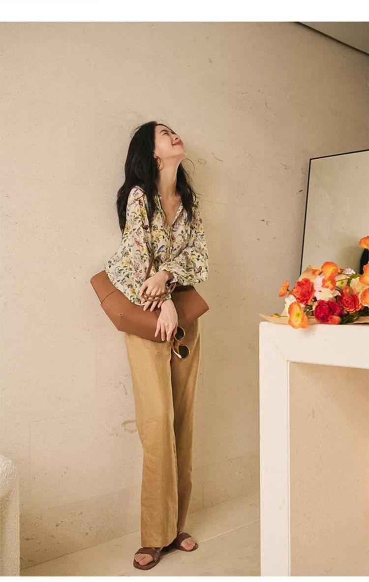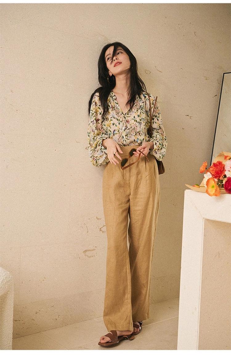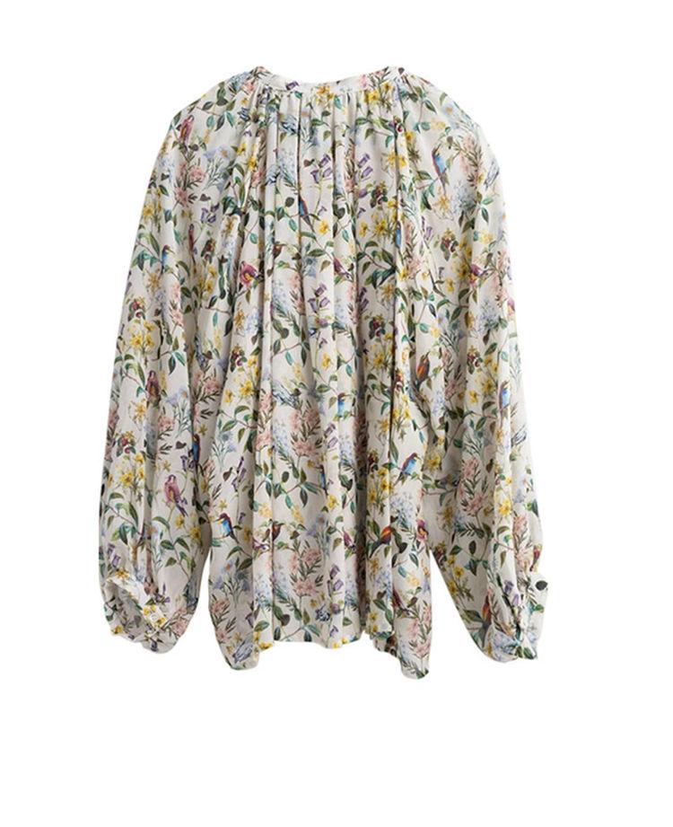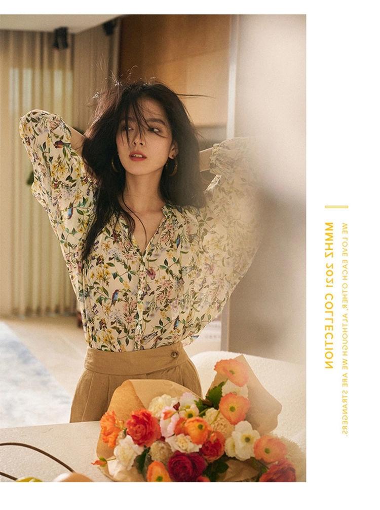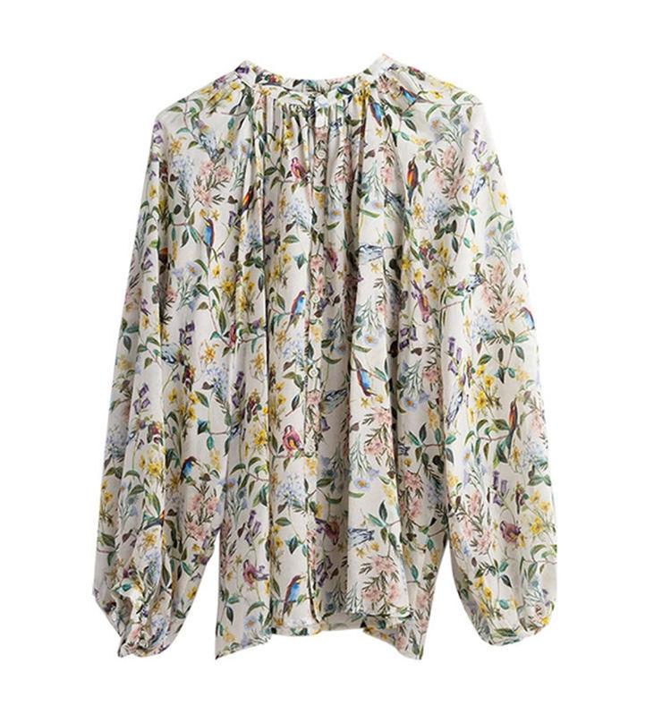 Camisa elegante de gasa con estampado floral para mujer, blusa francesa fina de manga de tres puntos con diseño de hadas de verano para principios de otoño