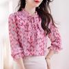 Camisa de Gasa con Lazo para Mujer Manga Larga 2024 Otoño Nueva Camisa Elegante Top Suelto Trendy