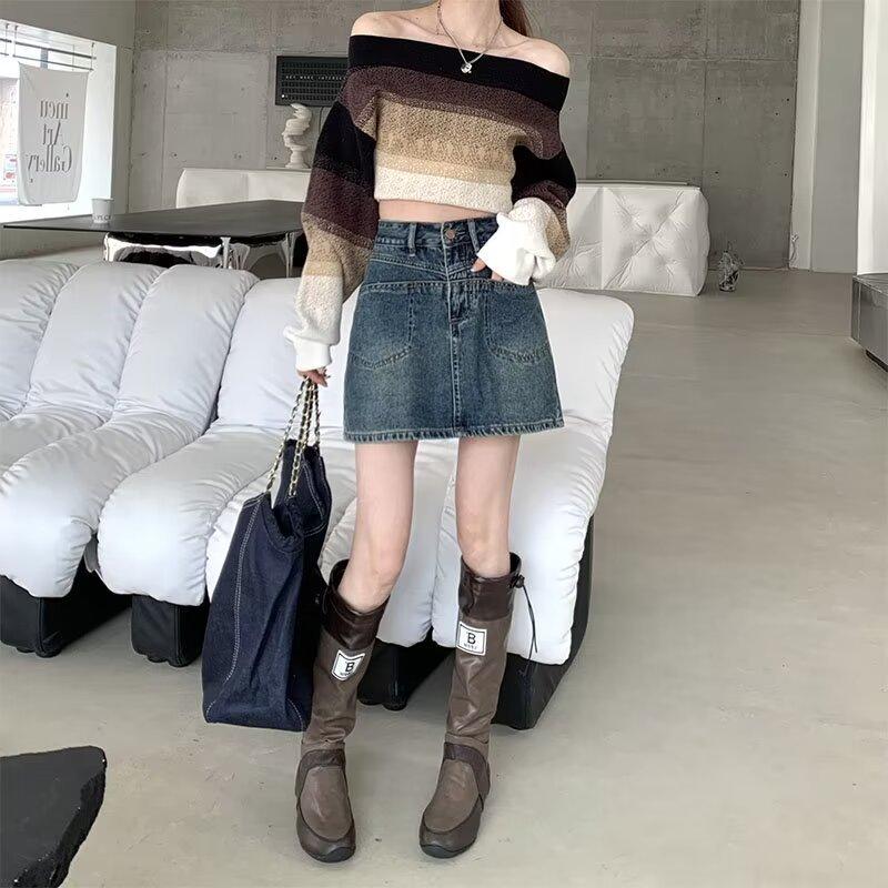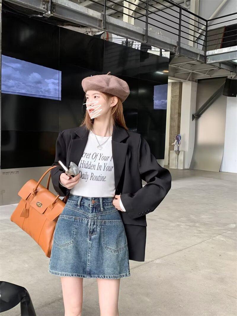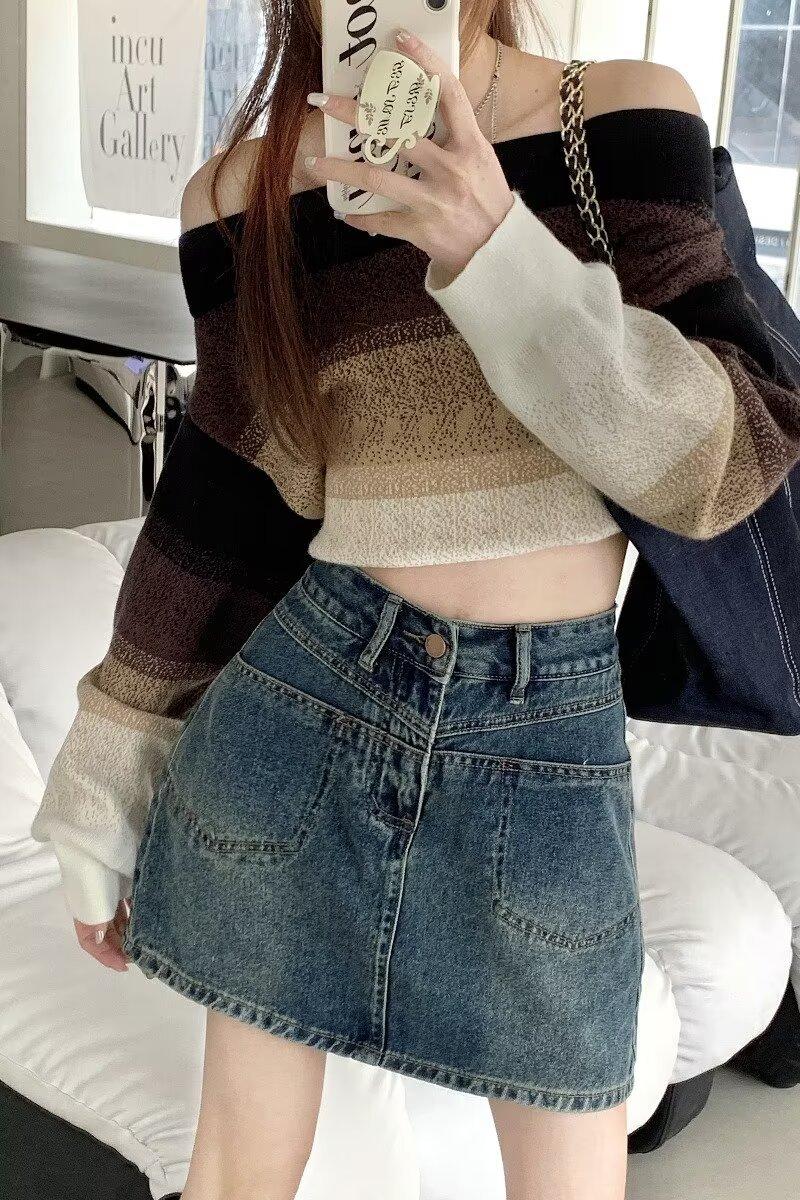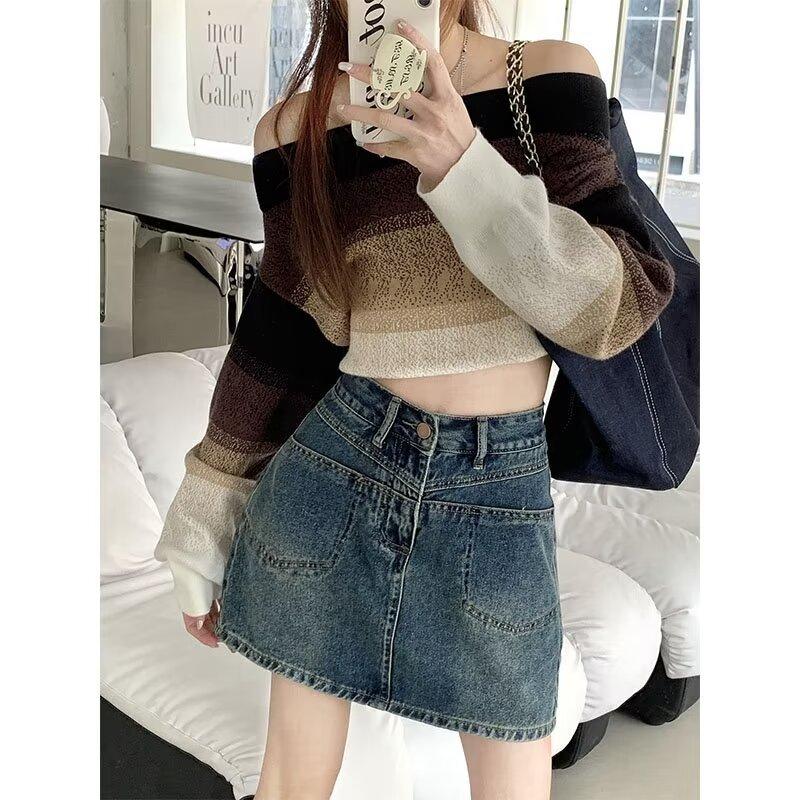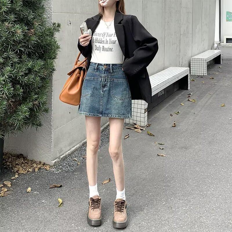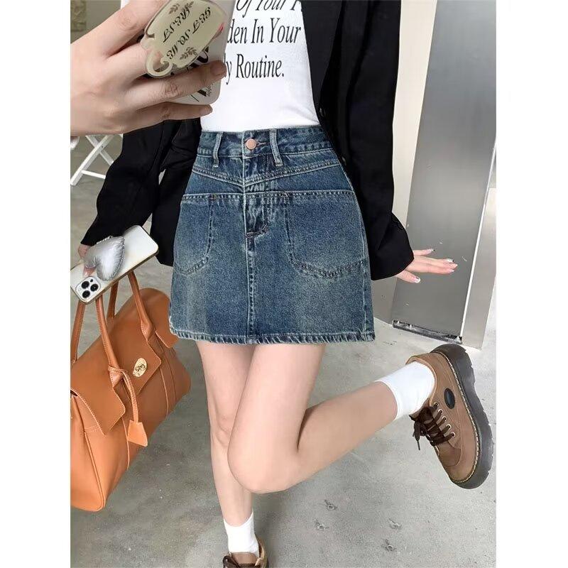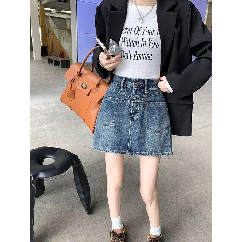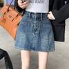 Falda vaquera azul para mujer, verano 2024, nueva, antiexposición, cintura alta, adelgazante, cadera pequeña, culotte corto, moda