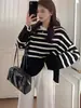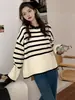 Suéter coreano de primavera y otoño de 2024 para mujer, suéter de punto suelto a rayas de manga larga con cuello redondo, comercio exterior interno al por mayor.