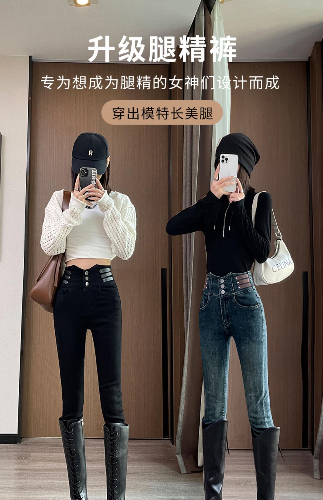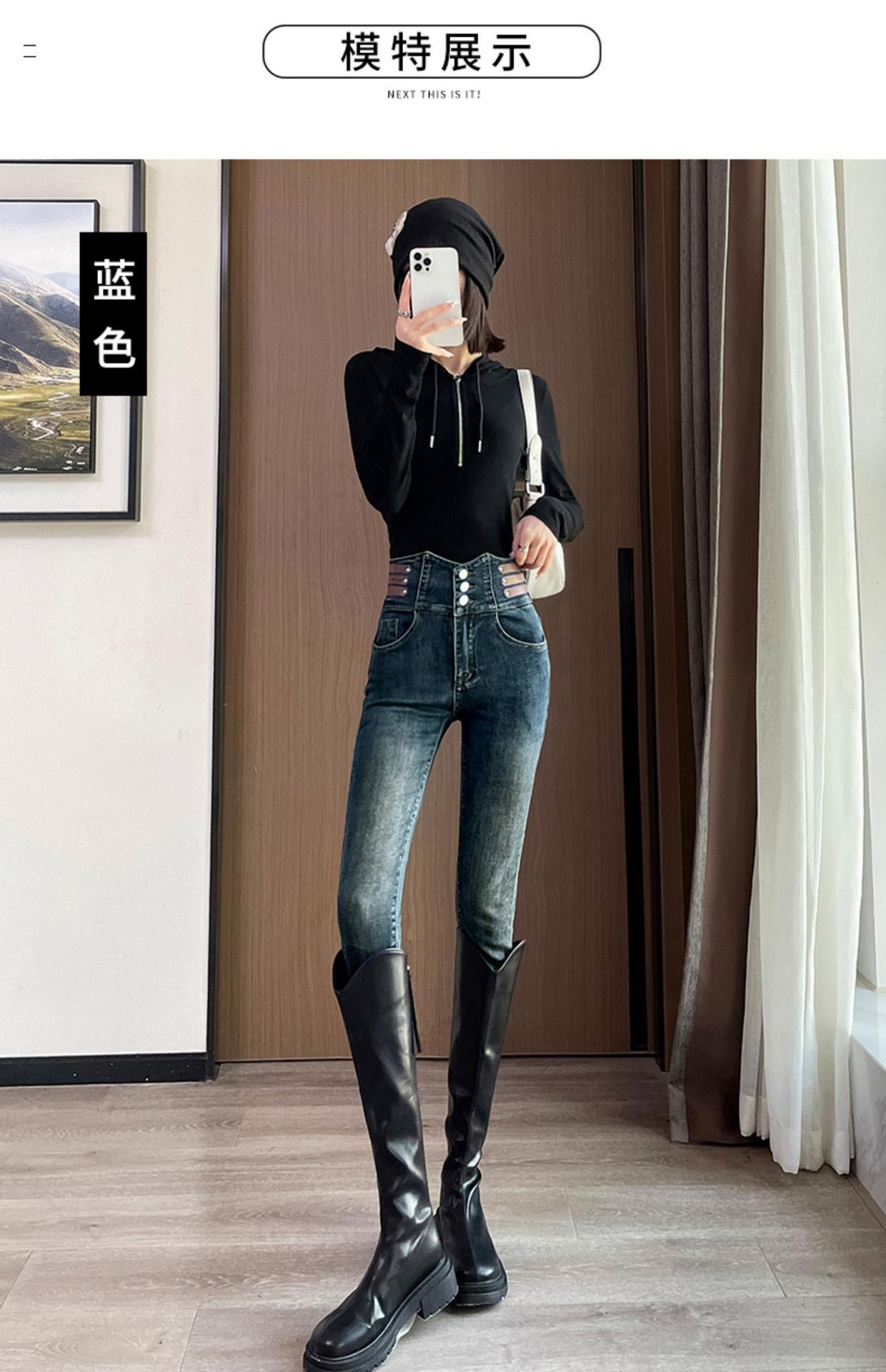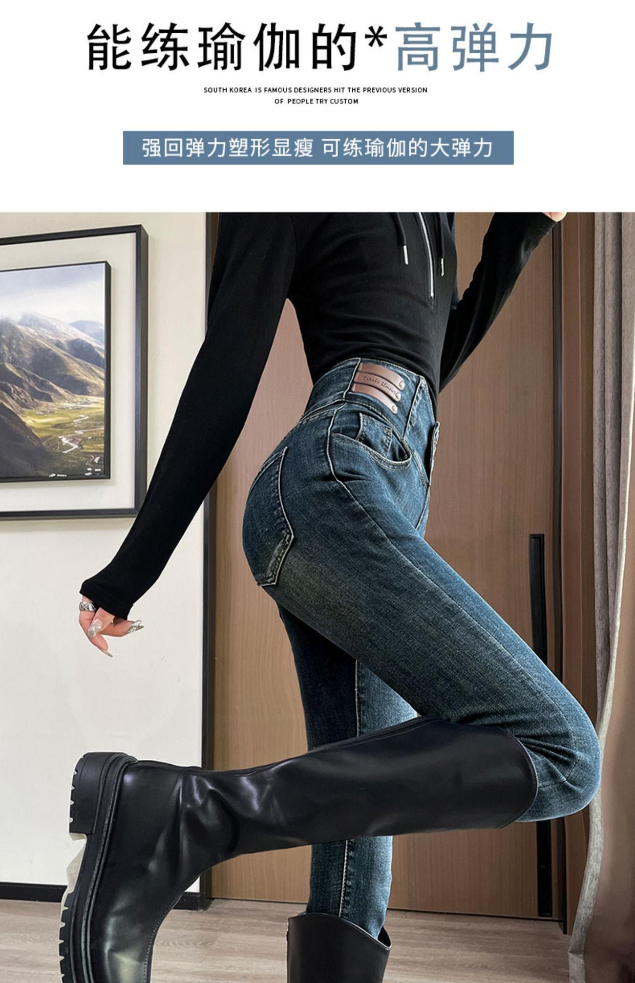 Pantalones pitillo ajustados y elásticos de otoño e invierno para mujer 2023, pantalones pitillo de mezclilla de cintura alta y ajustados, combinables con todo.