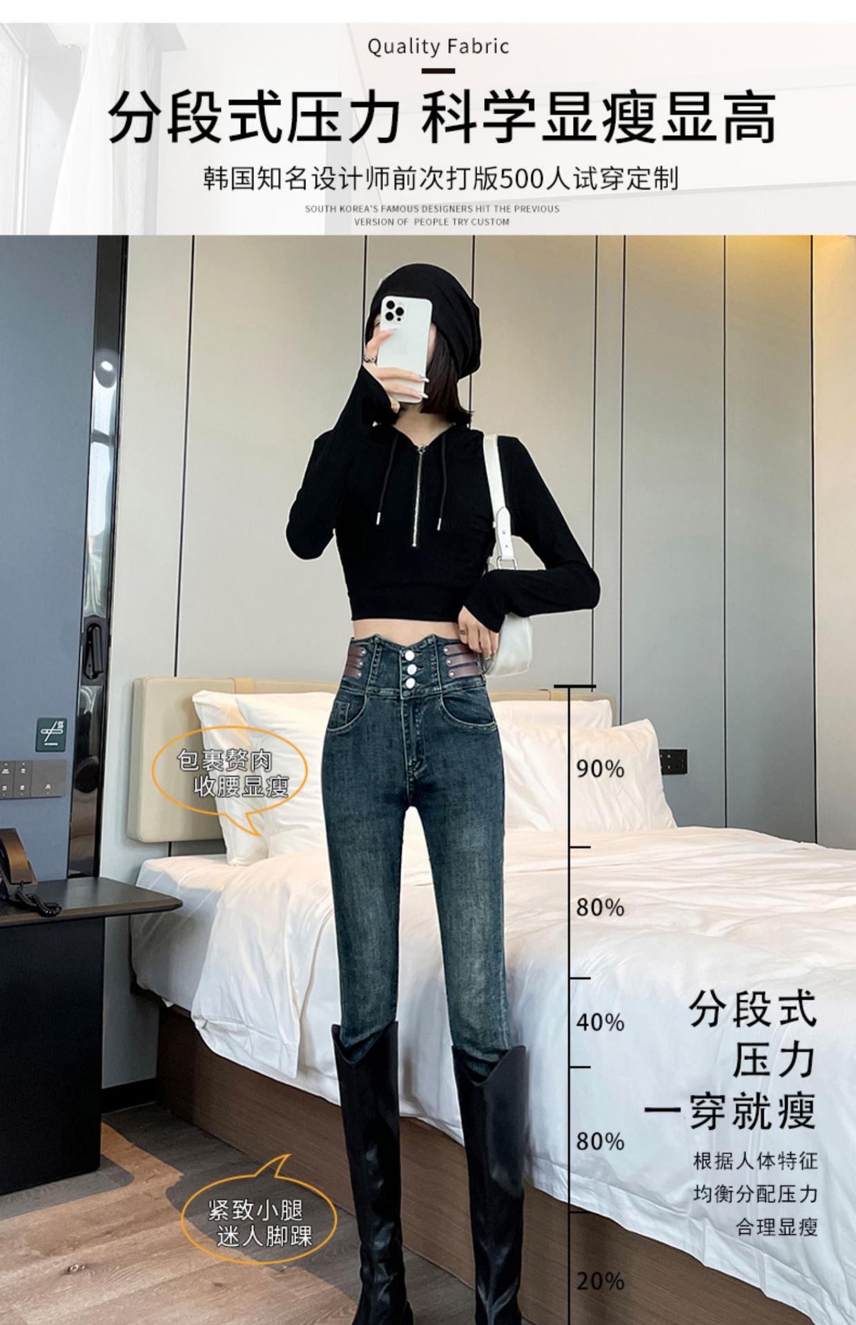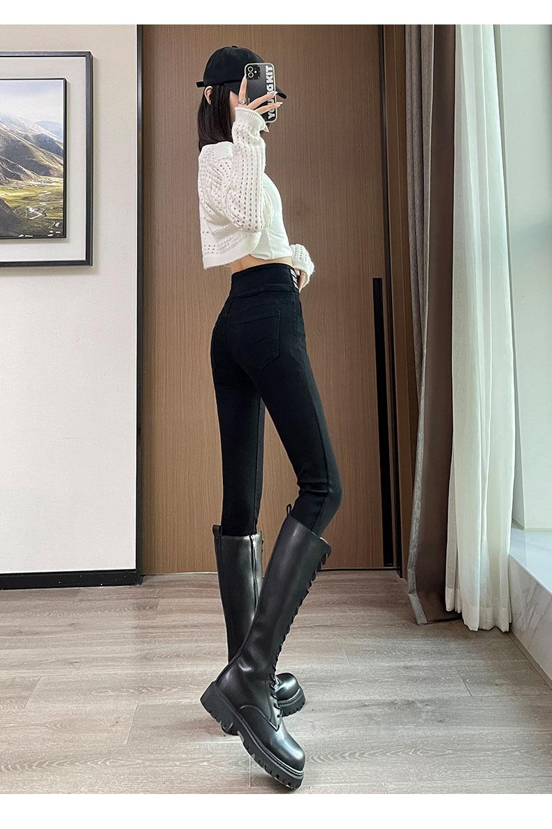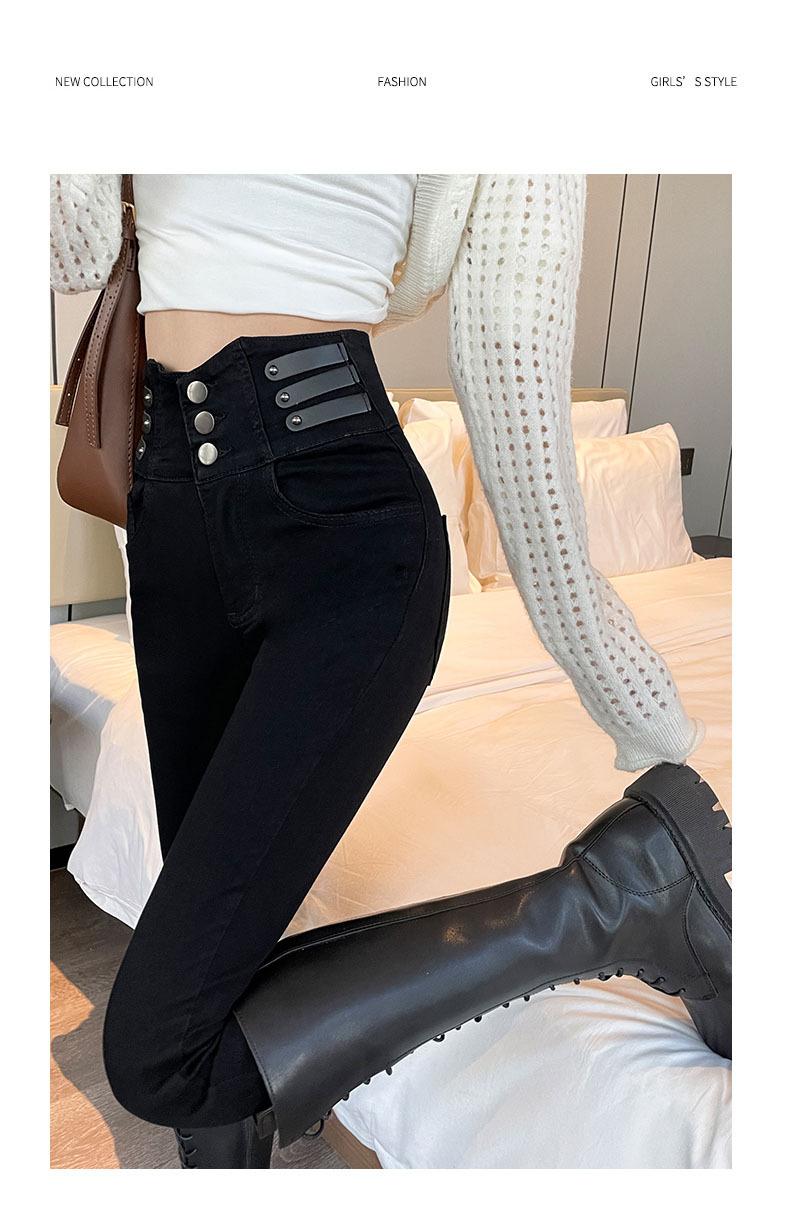 Pantalones pitillo ajustados y elásticos de otoño e invierno para mujer 2023, pantalones pitillo de mezclilla de cintura alta y ajustados, combinables con todo.