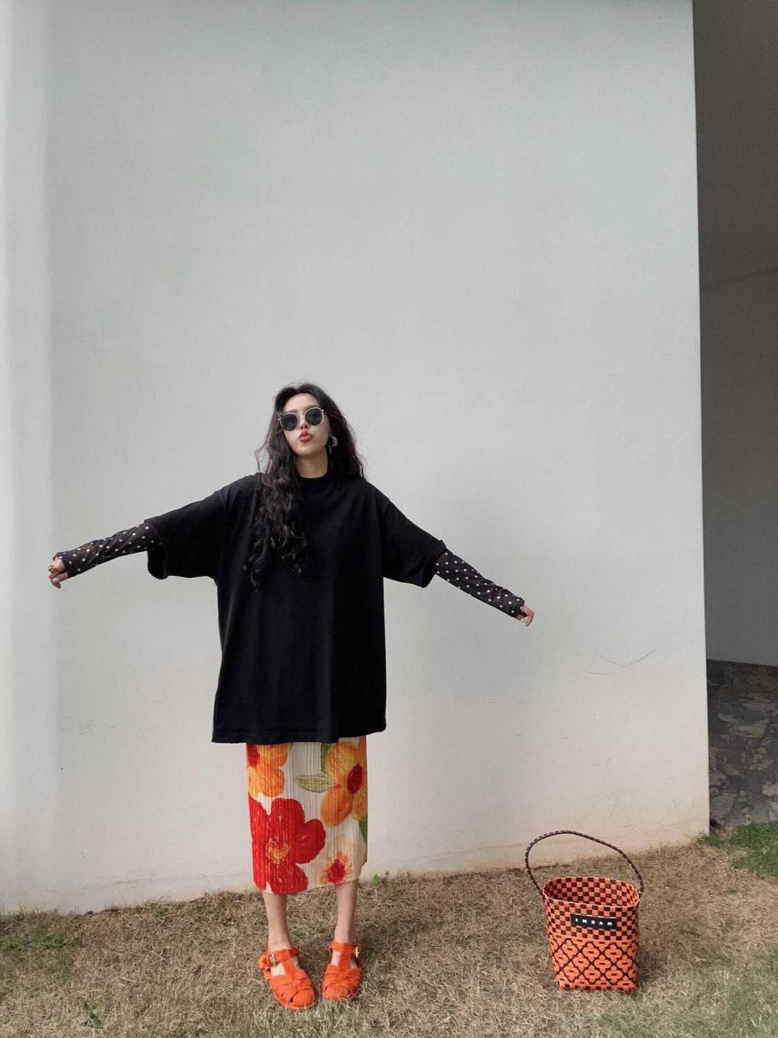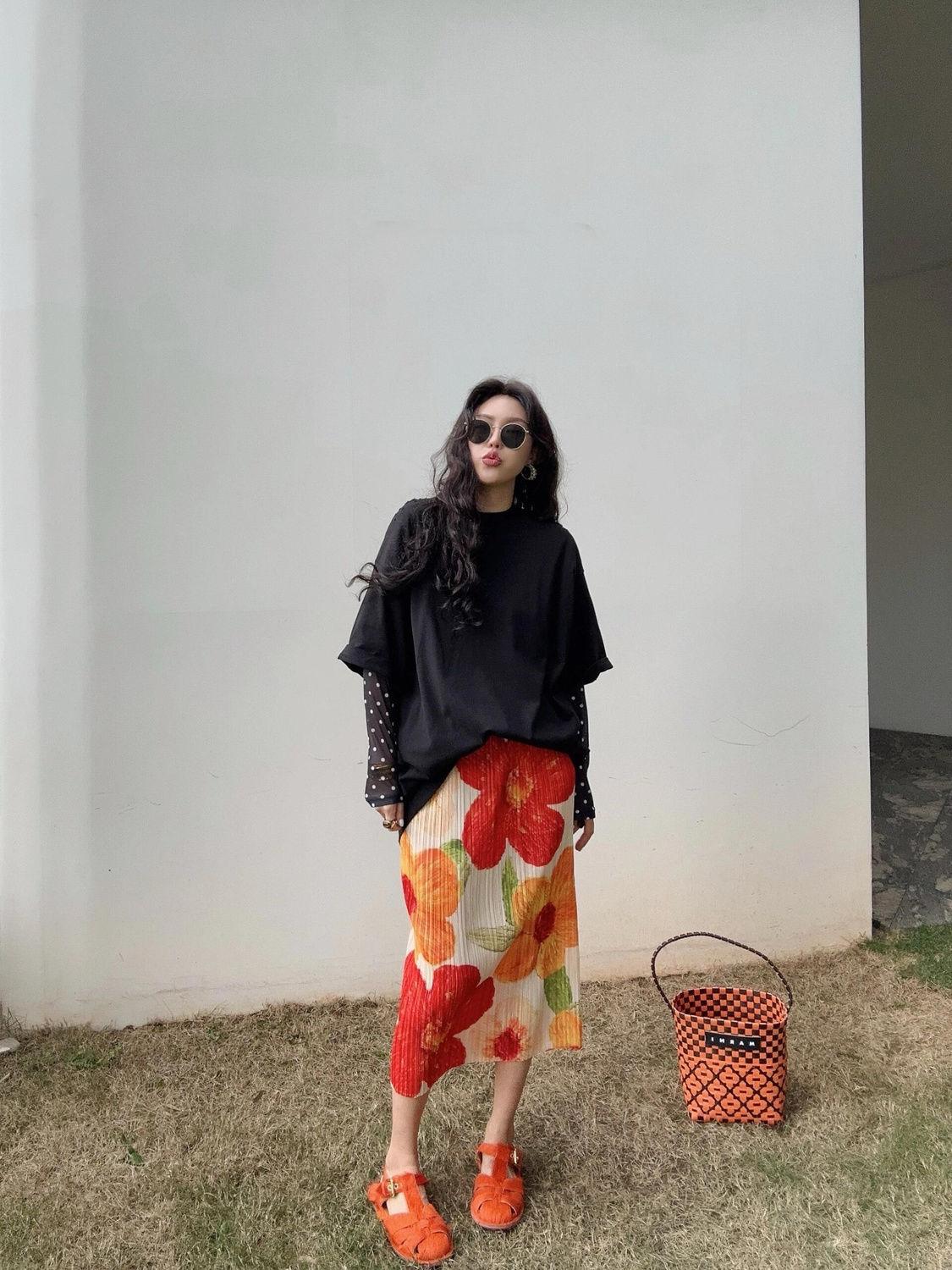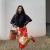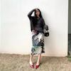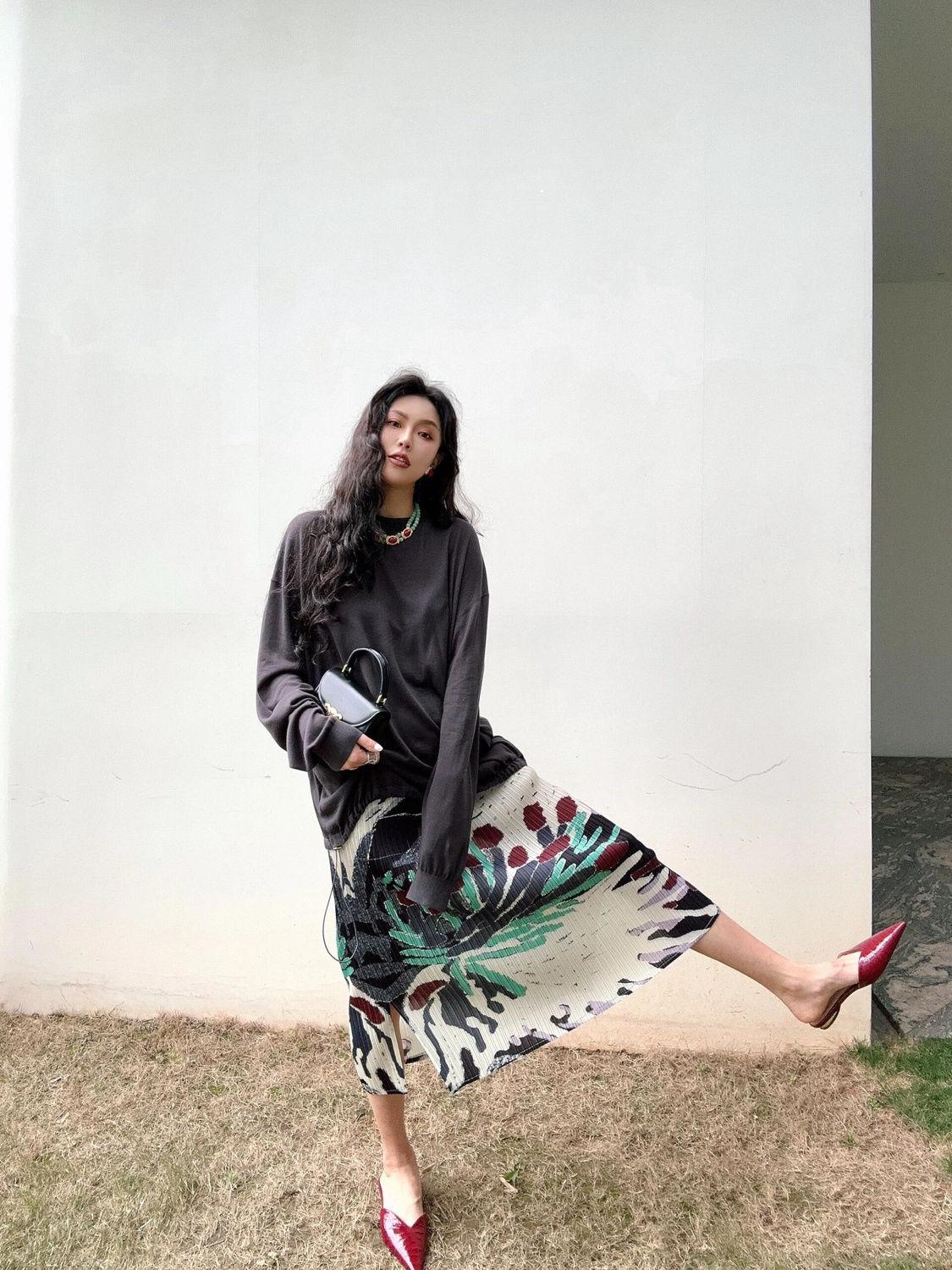 Falda Retro 2024 Nueva Falda Diseño Nicho para Mujer Estampada Slim Flecos Plisada Falda Plisada