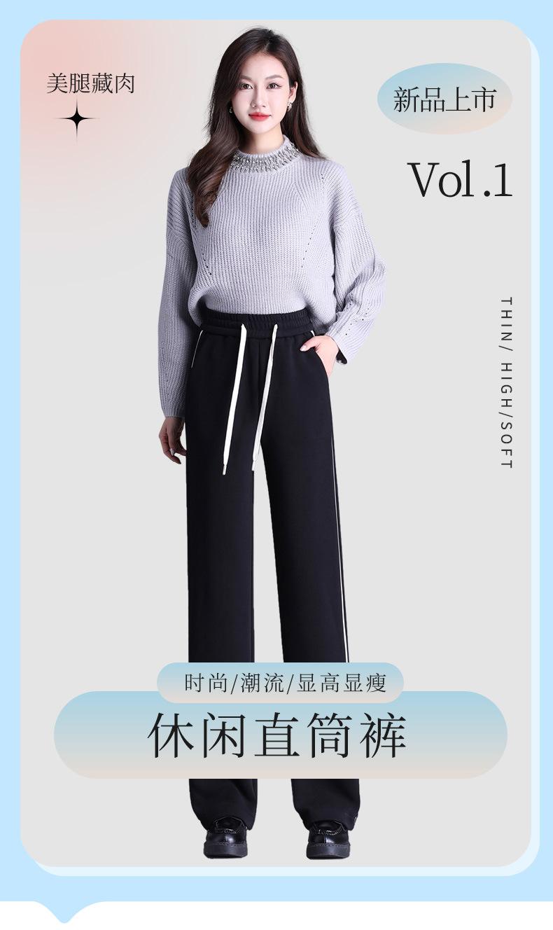 Pantalones adelgazantes Yueyuan de otoño e invierno, de pierna ancha y estrecha, holgados, de tubo recto lateral, largos, para mujer.