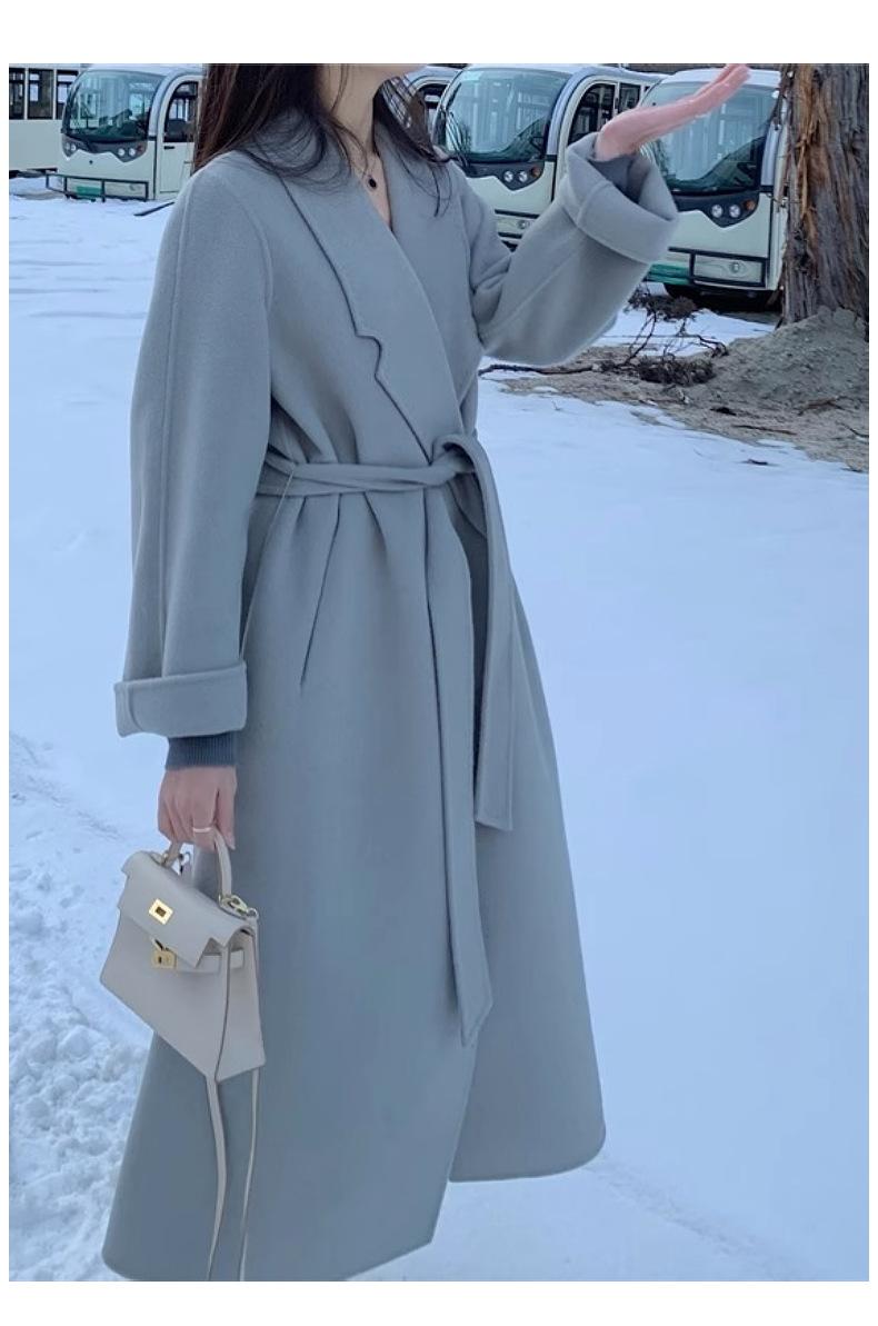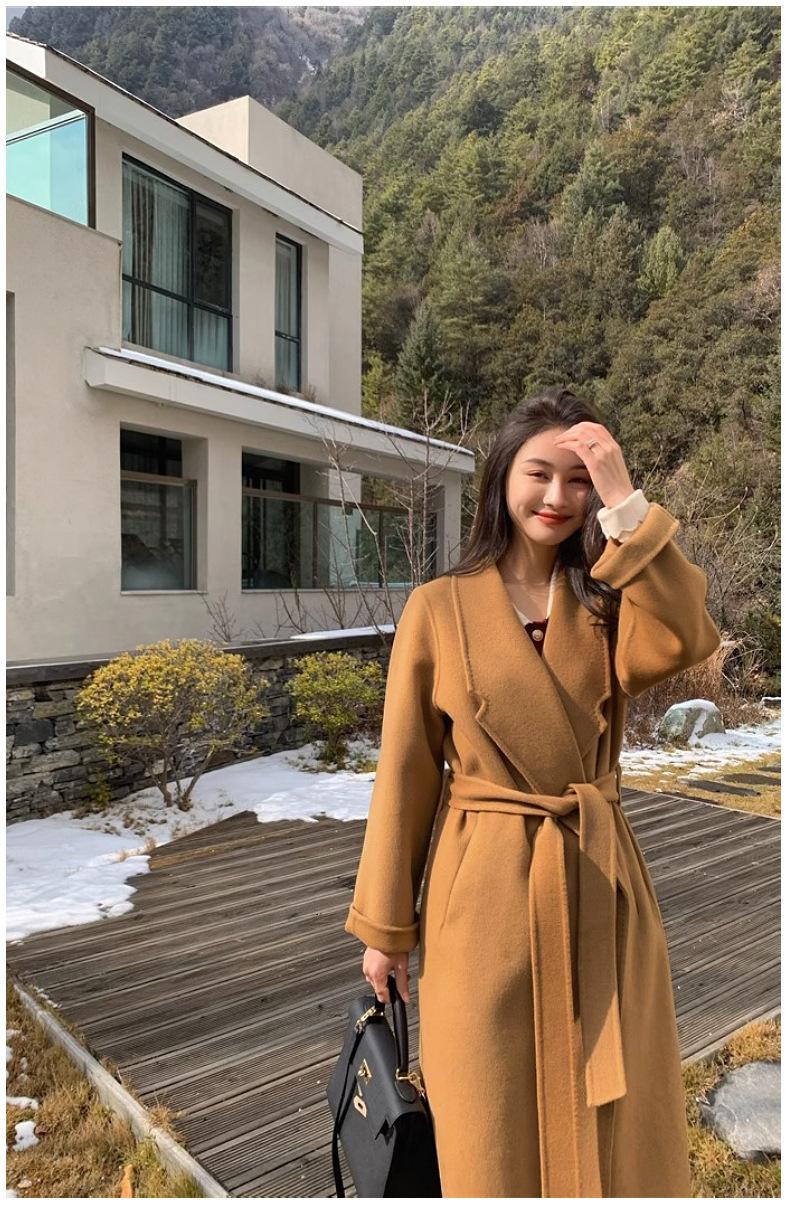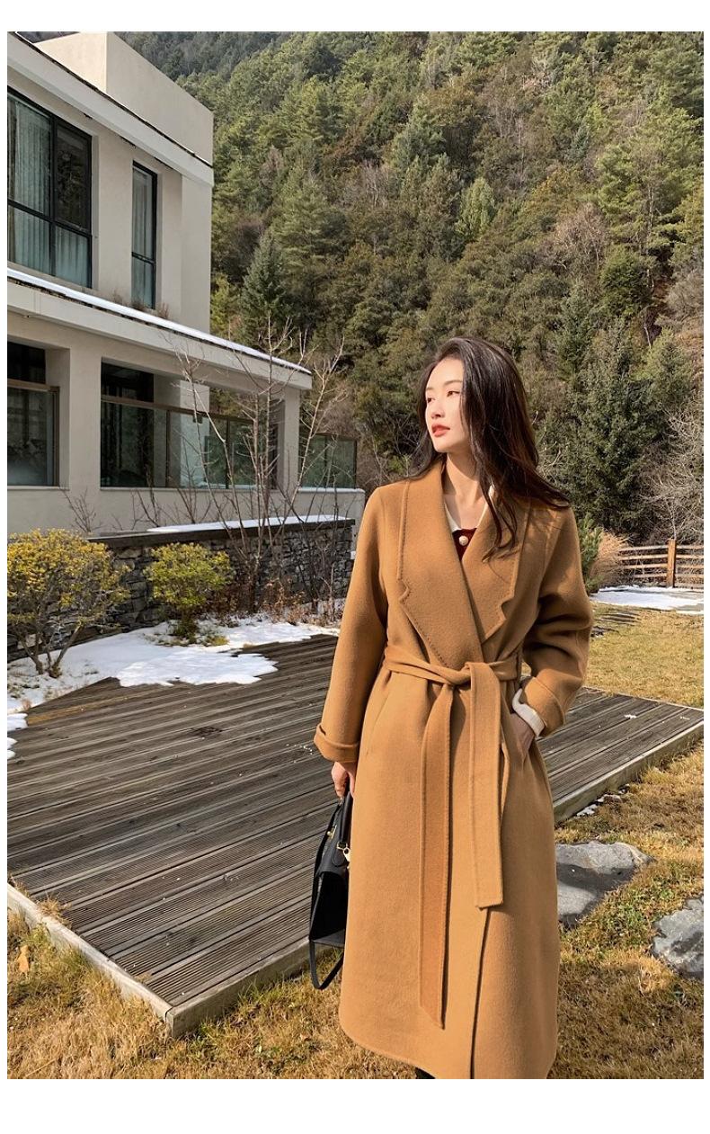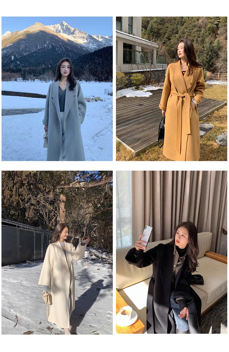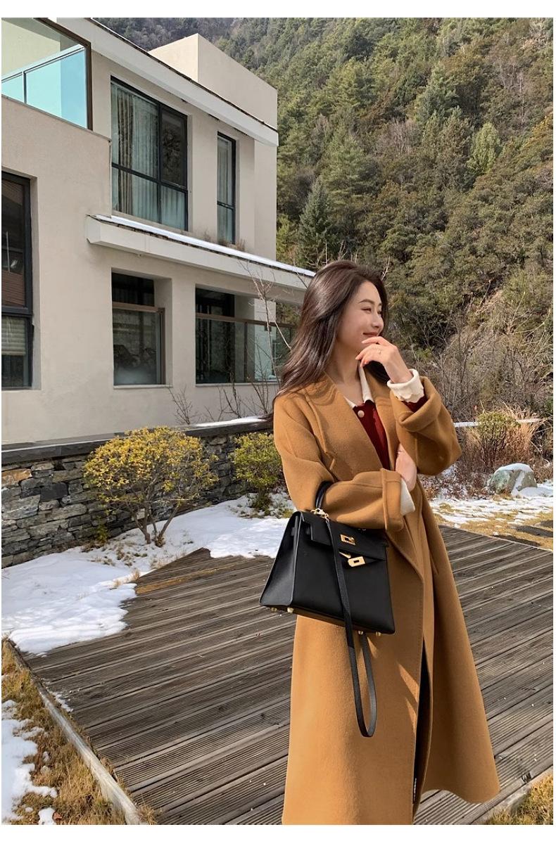 Abrigo de Lana Hecho a Mano de Doble Cara para Mujer 2025 Nuevo Abrigo de Lana de Invierno de Lana de Alto Conteo de Largo Medio