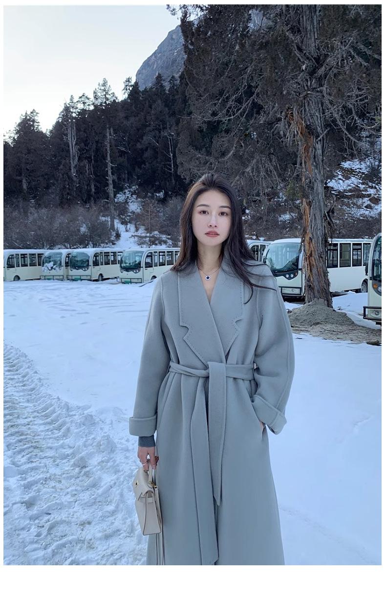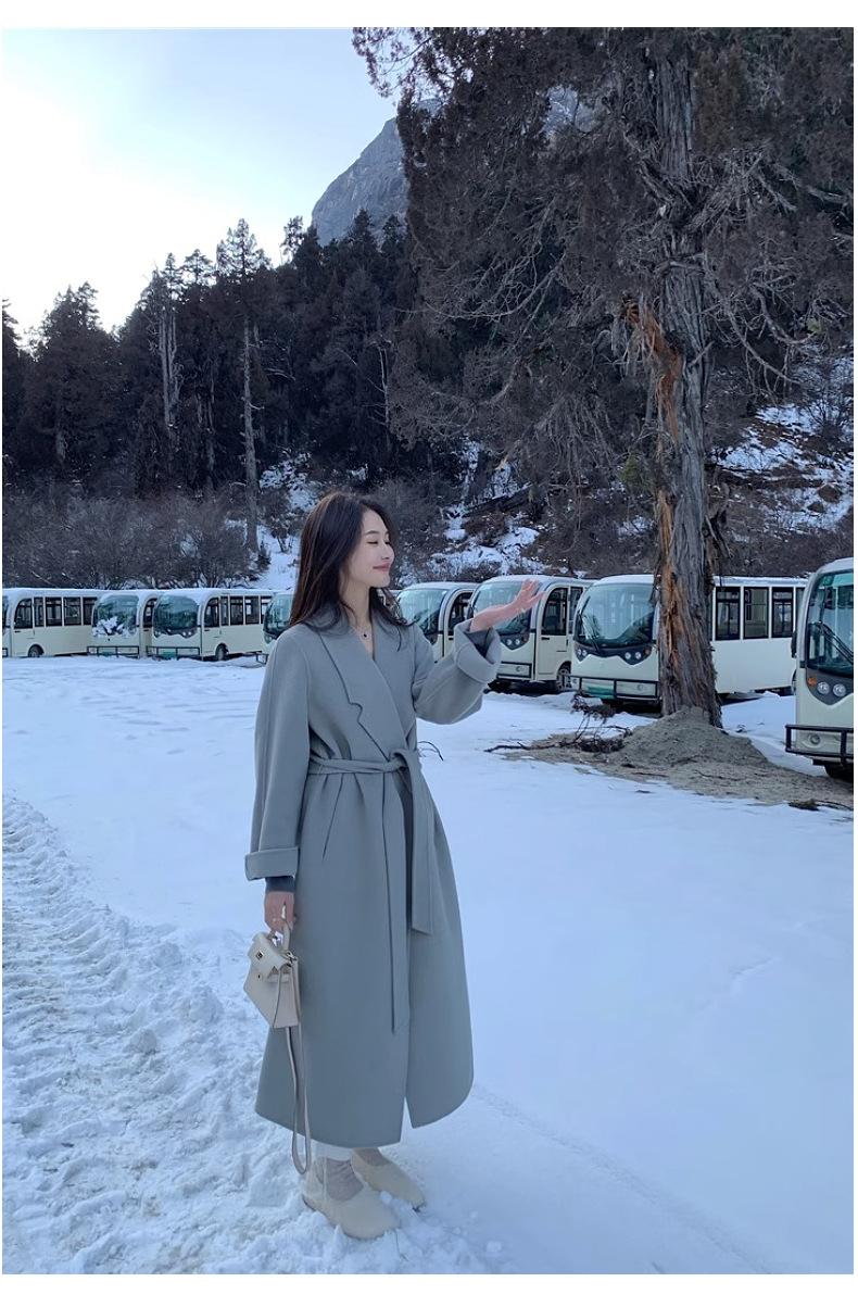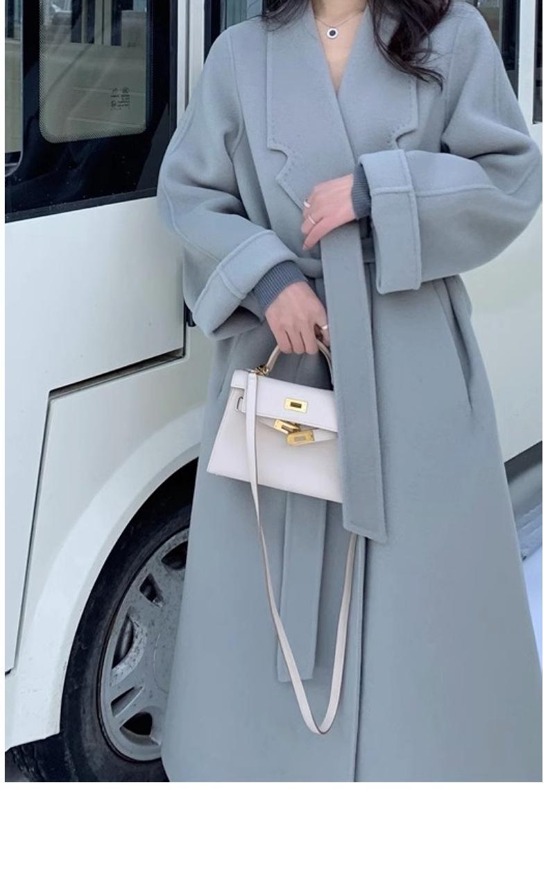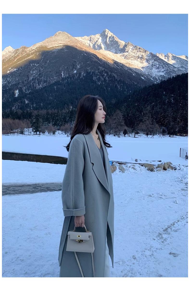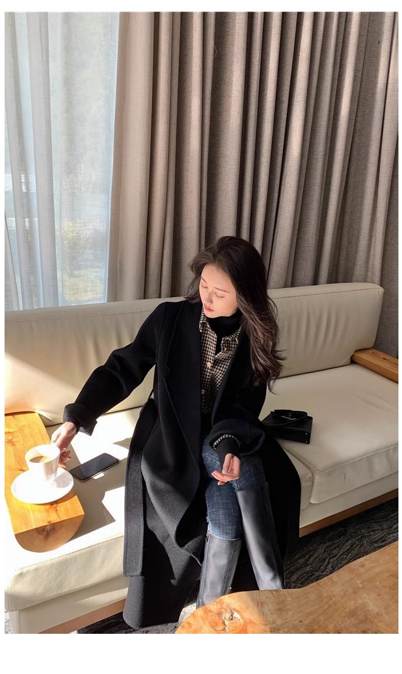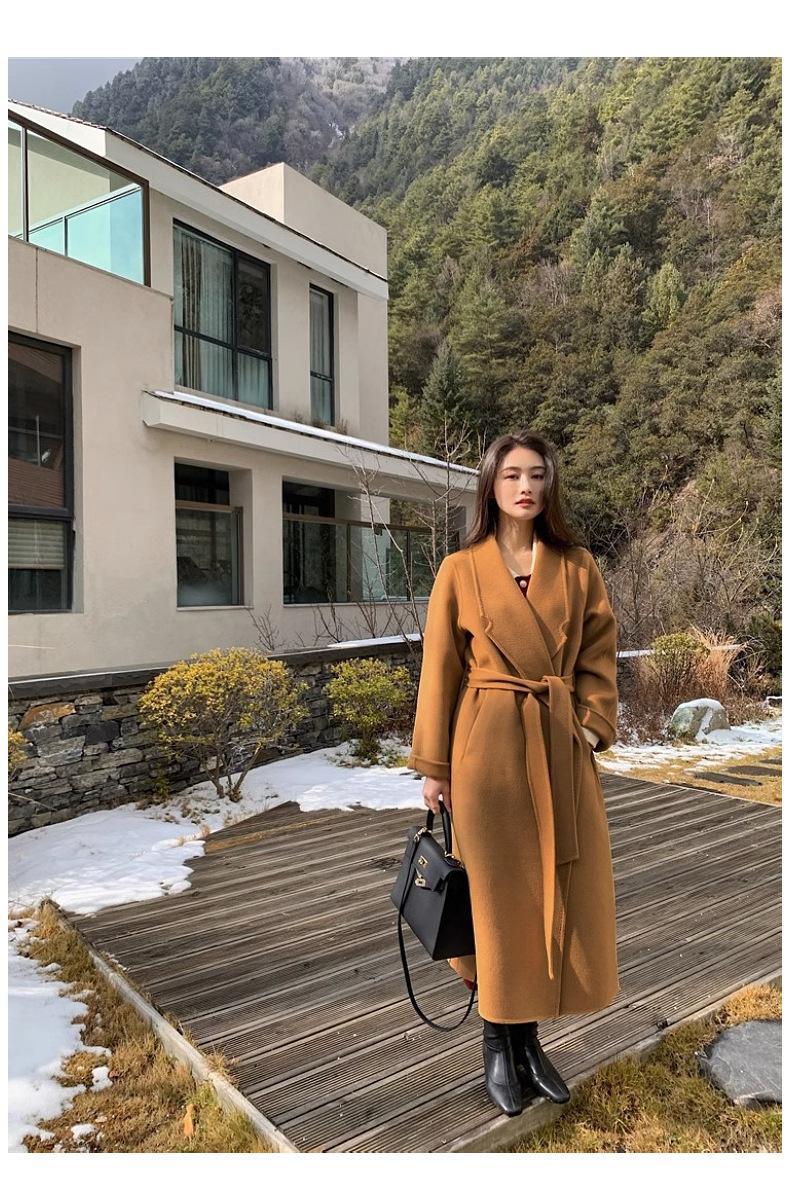 Abrigo de Lana Hecho a Mano de Doble Cara para Mujer 2025 Nuevo Abrigo de Lana de Invierno de Lana de Alto Conteo de Largo Medio