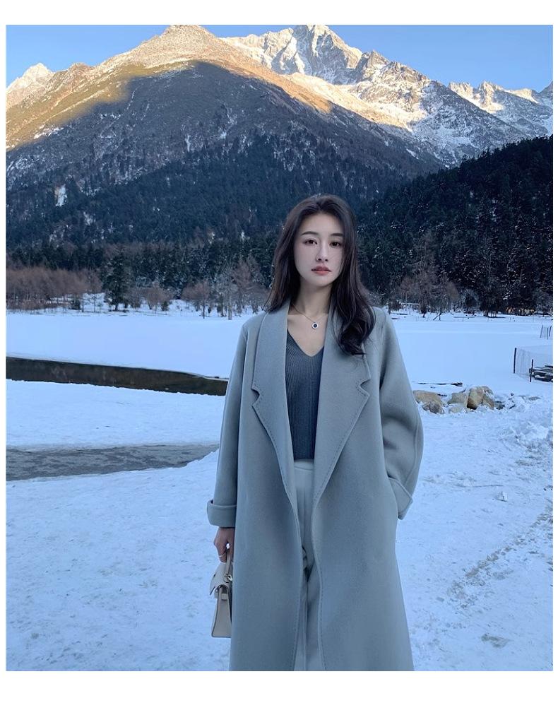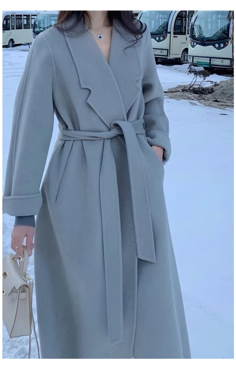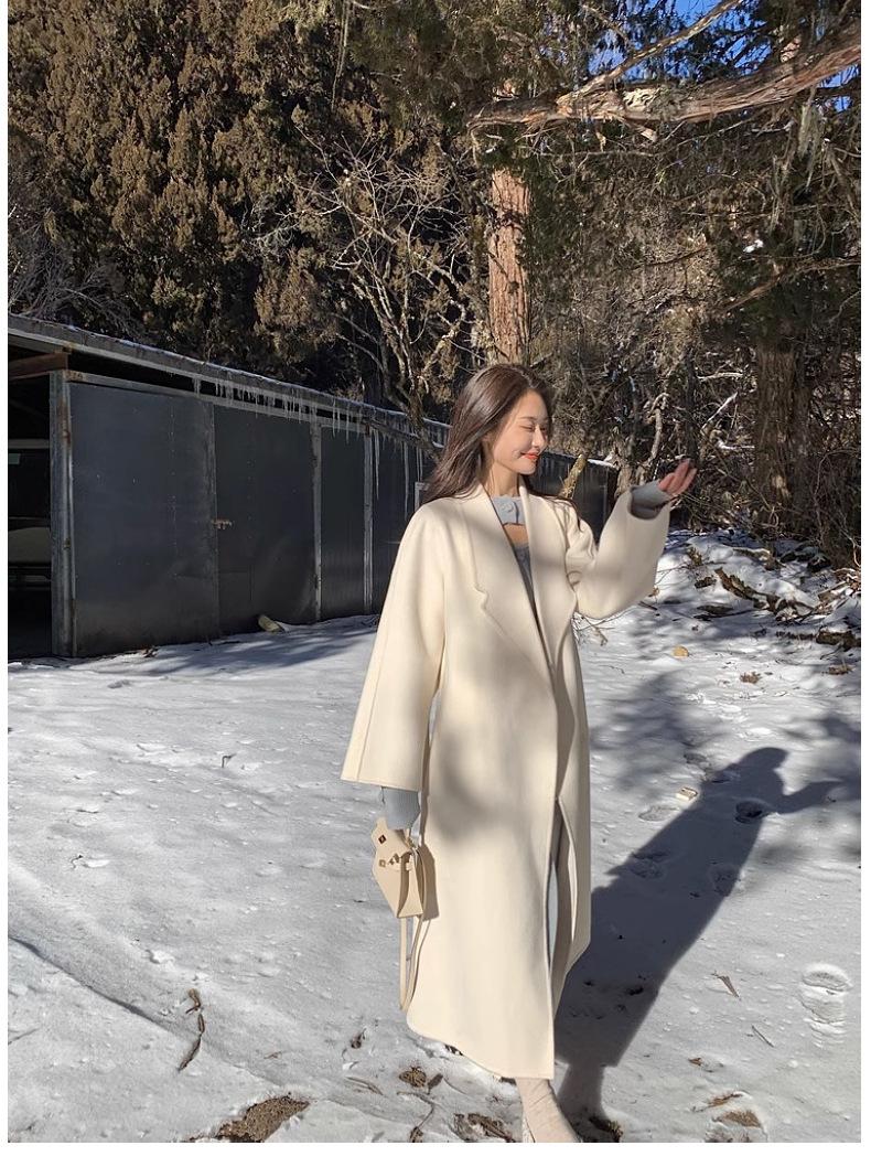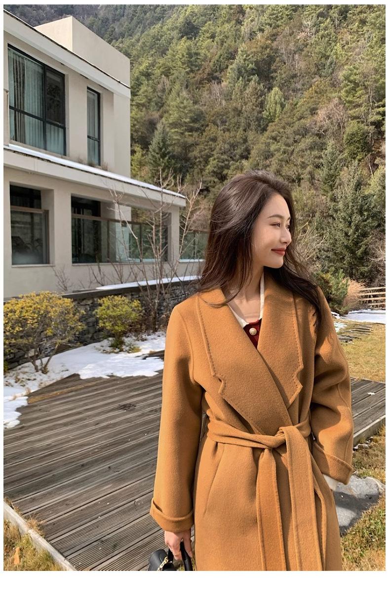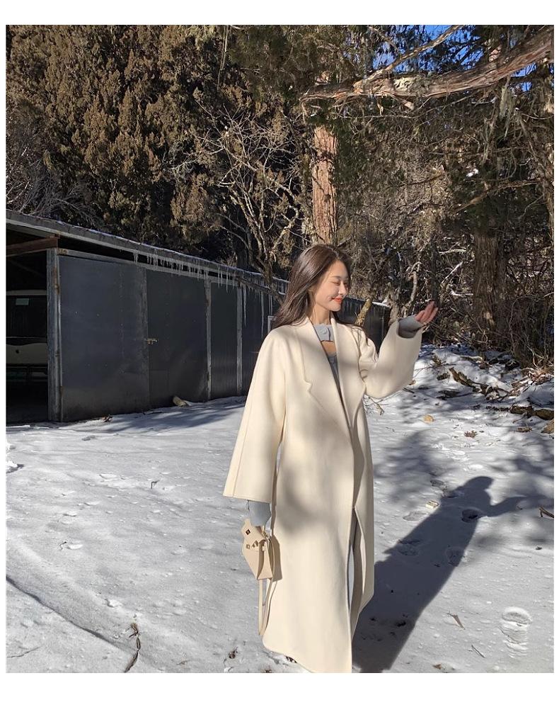 Abrigo de Lana Hecho a Mano de Doble Cara para Mujer 2025 Nuevo Abrigo de Lana de Invierno de Lana de Alto Conteo de Largo Medio