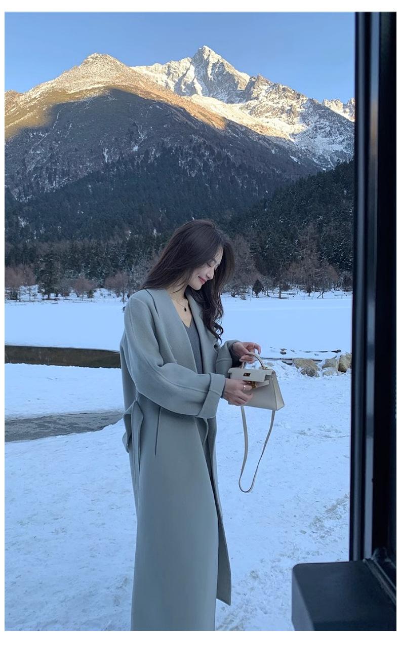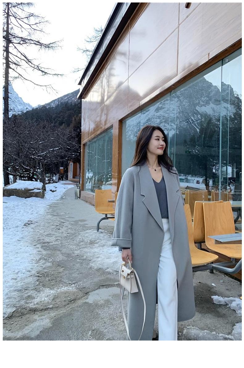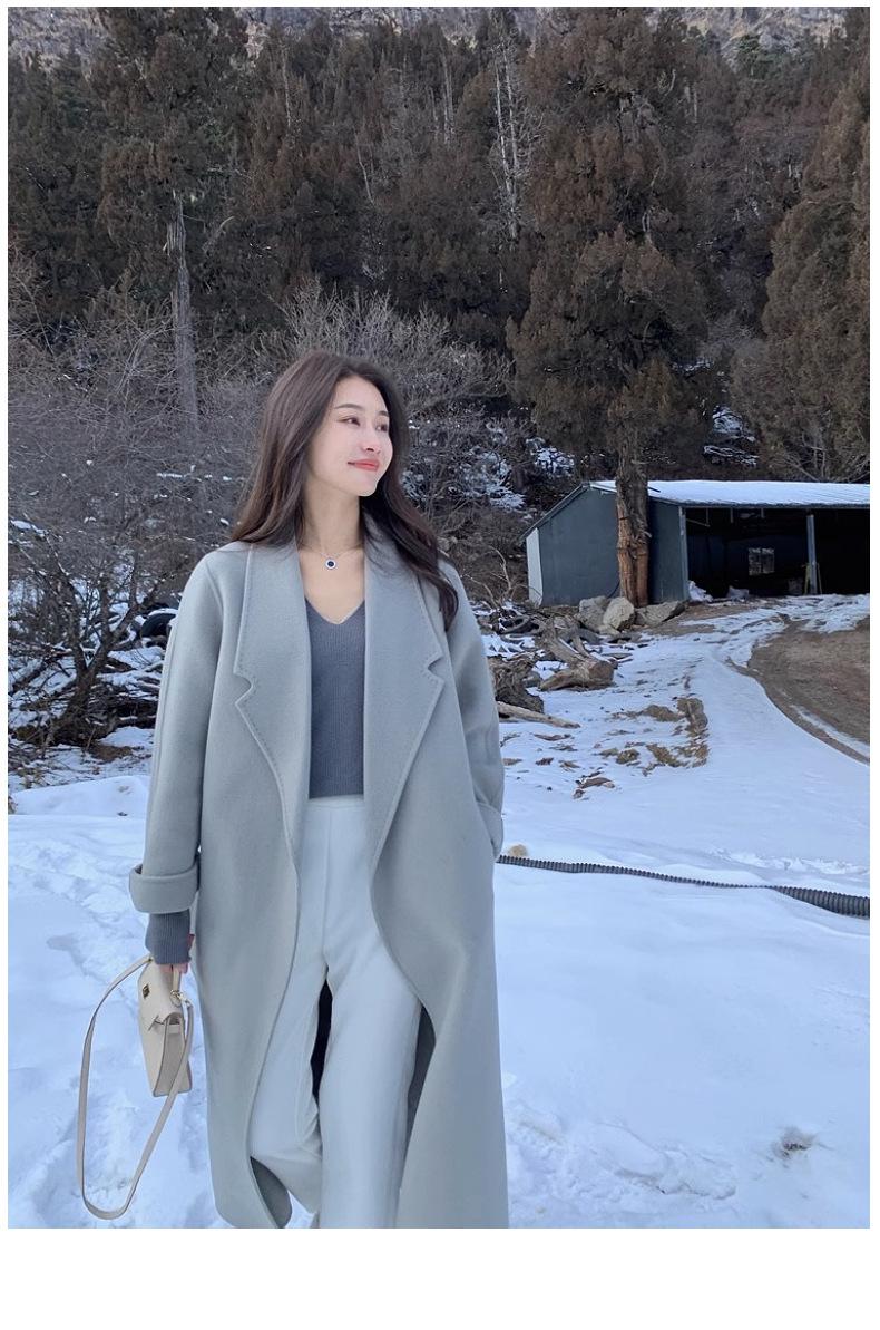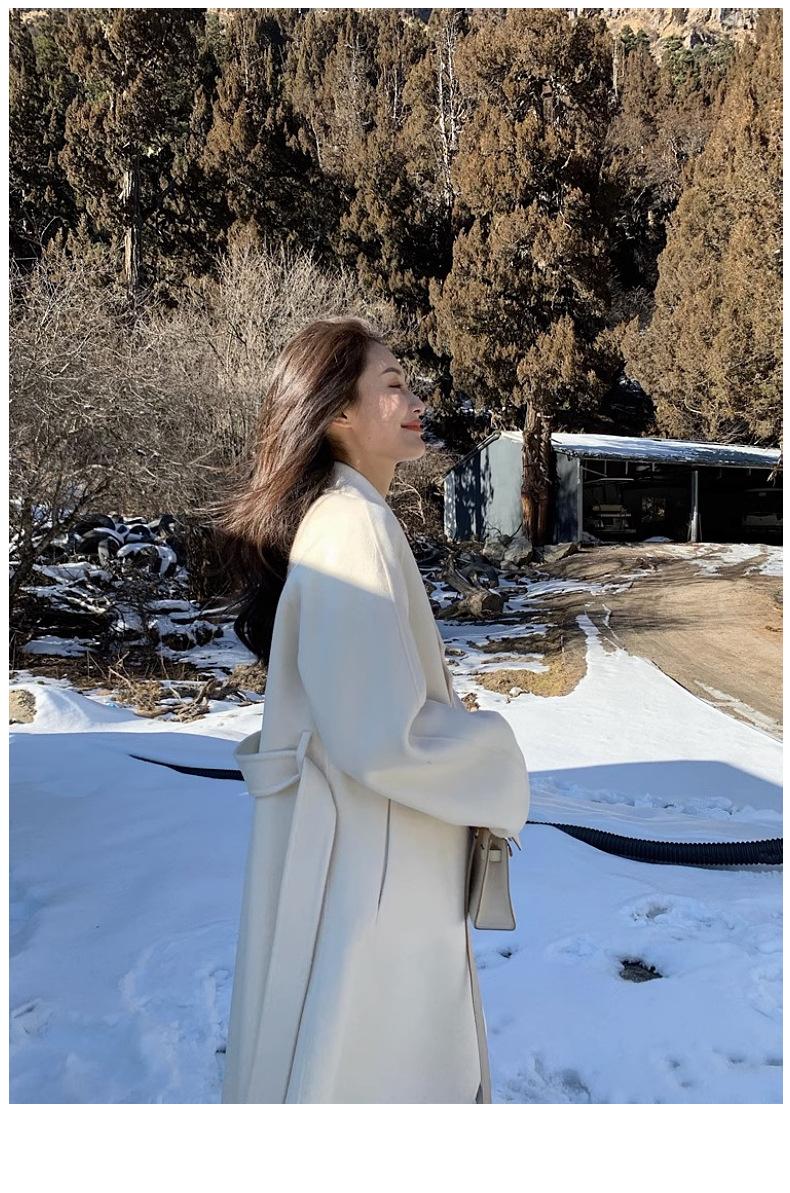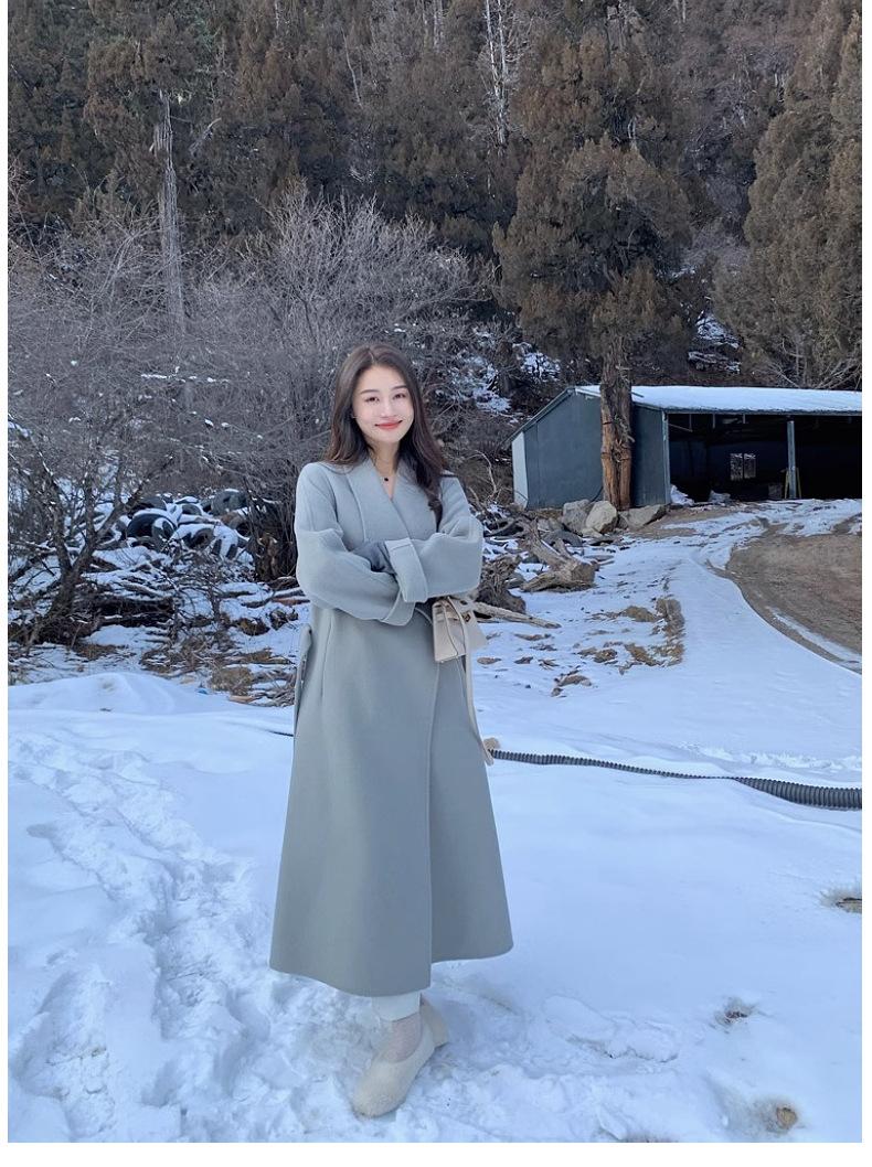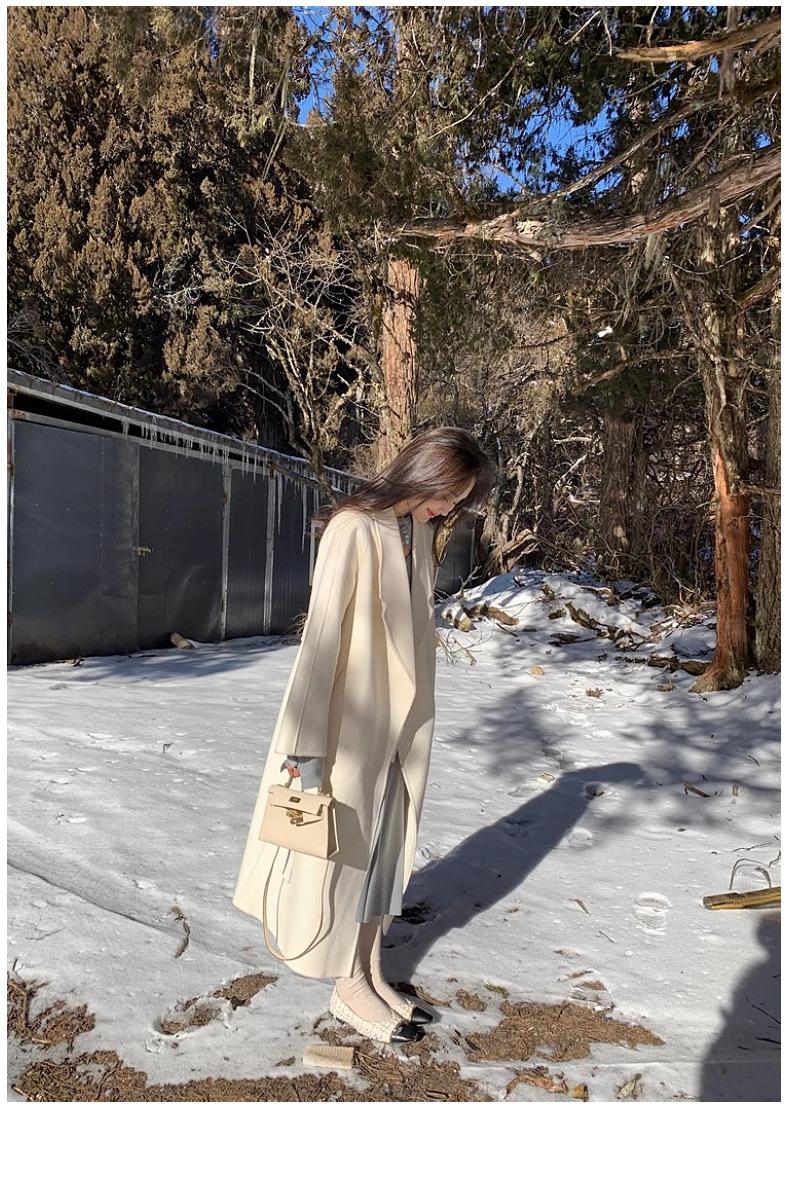 Abrigo de Lana Hecho a Mano de Doble Cara para Mujer 2025 Nuevo Abrigo de Lana de Invierno de Lana de Alto Conteo de Largo Medio