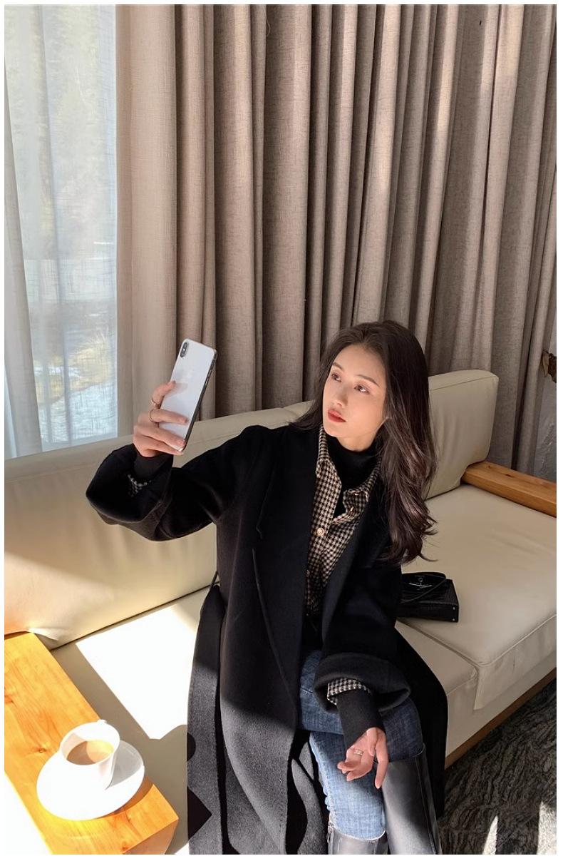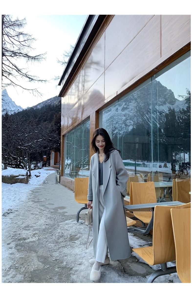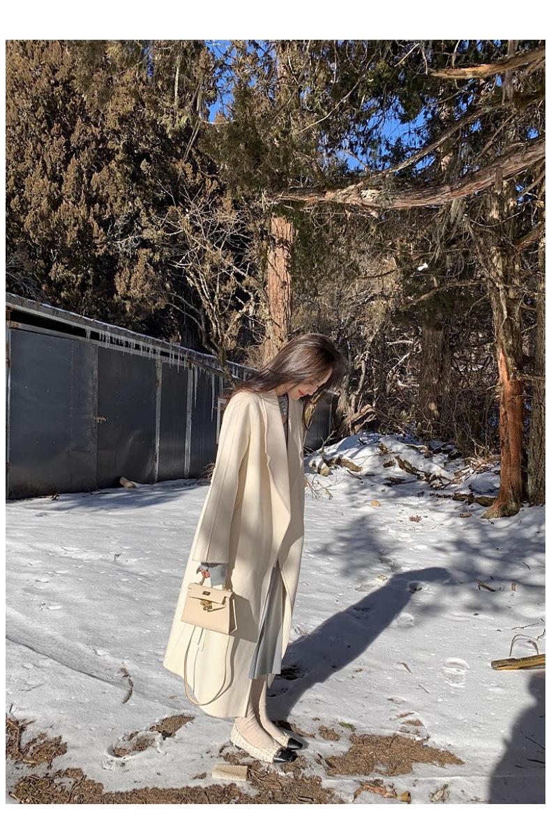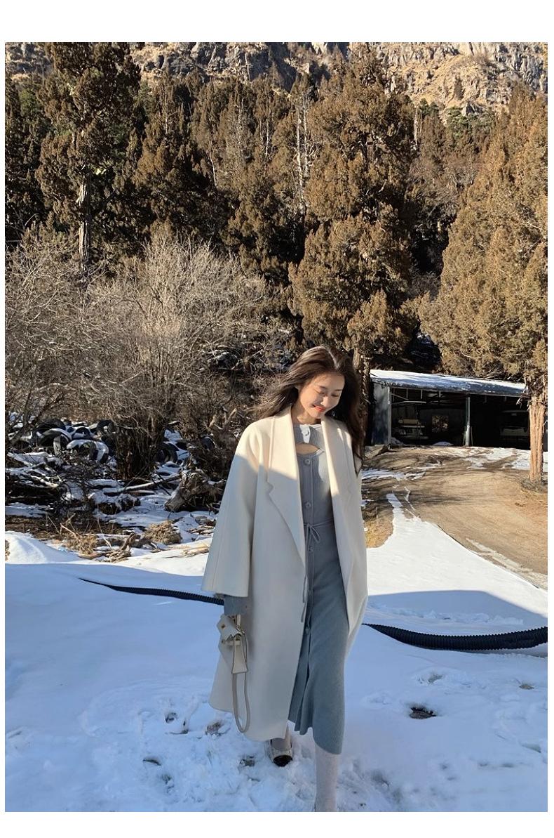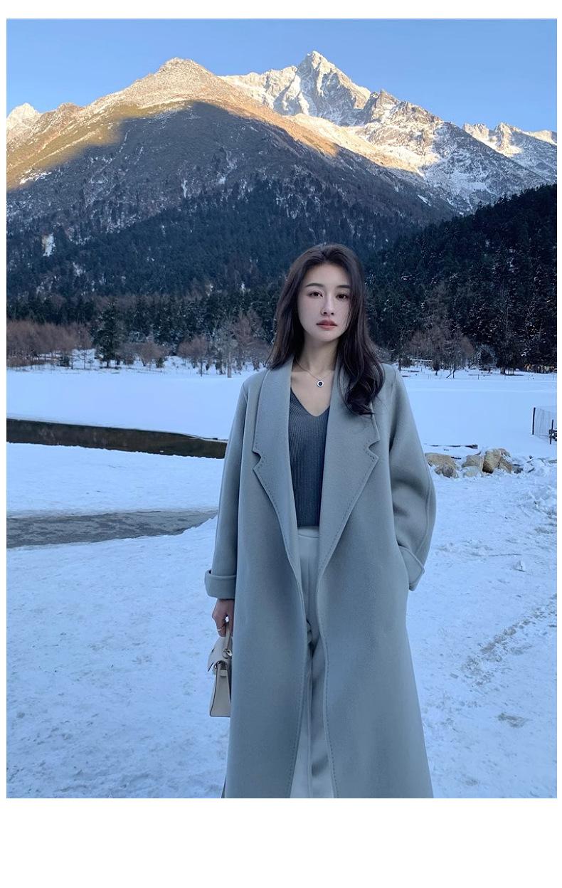 Abrigo de Lana Hecho a Mano de Doble Cara para Mujer 2025 Nuevo Abrigo de Lana de Invierno de Lana de Alto Conteo de Largo Medio