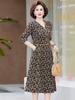 Vestido de longitud media estilo occidental de moda de primavera y otoño para mamá, elegante, adelgazante, falda base de manga larga para mujeres de mediana edad y mayores