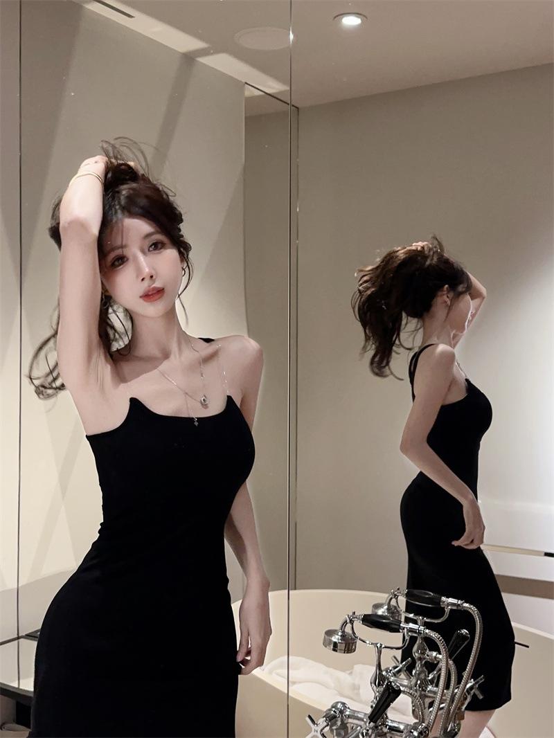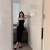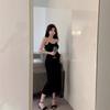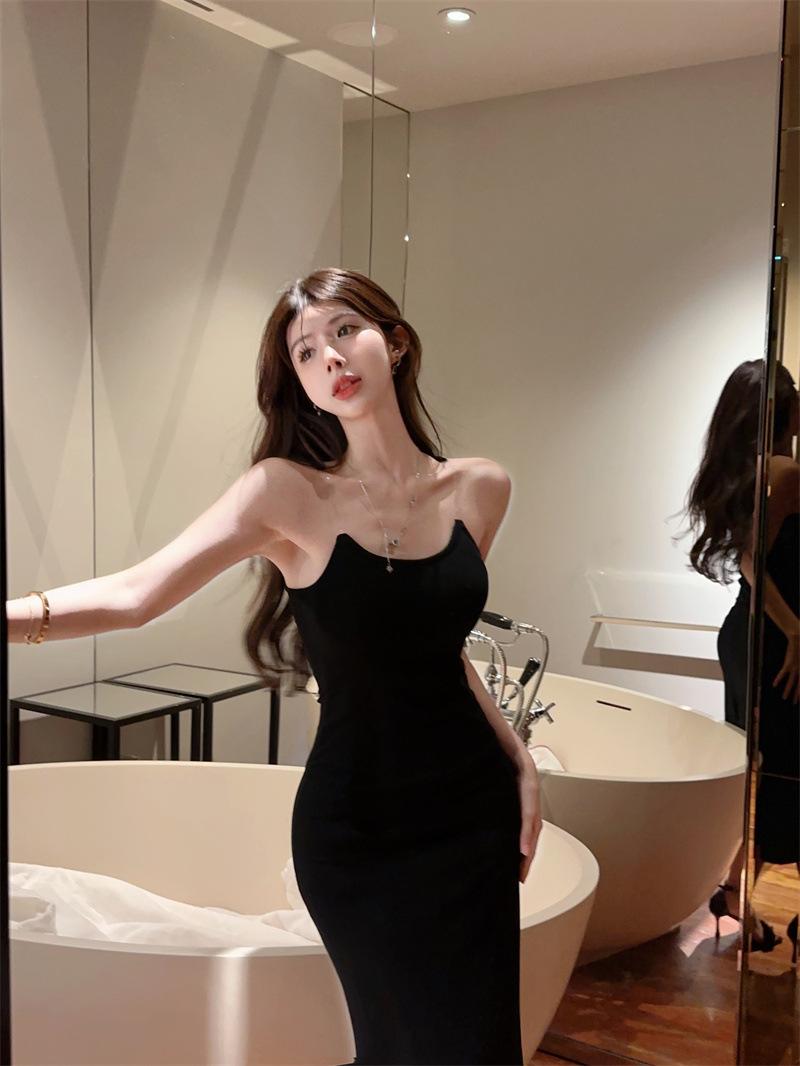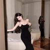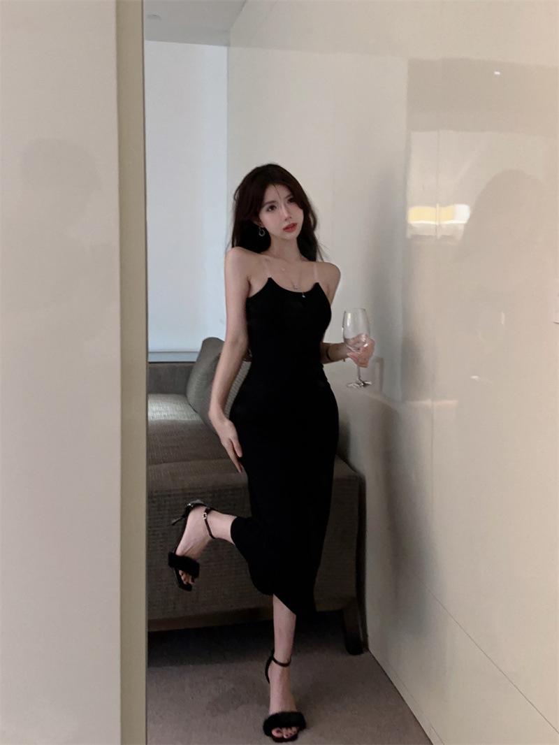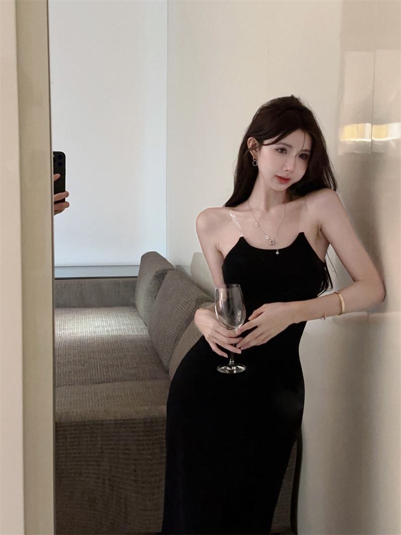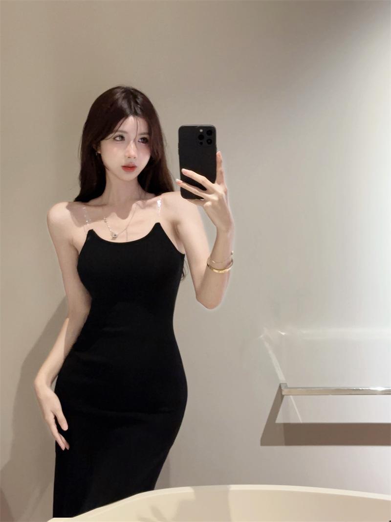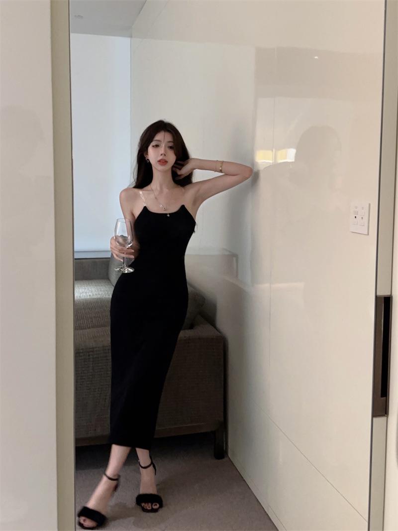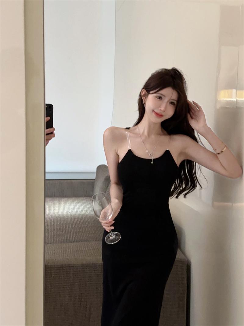 Europeo y Americano Transfronterizo Comercio Exterior Venta al Por Mayor Estilo Sexy Tirantes Invisibles Vestido Largo Negro Vestido de Tirantes Espagueti Vestido Largo Ajustado para Mujer