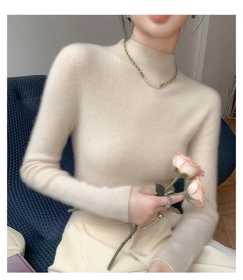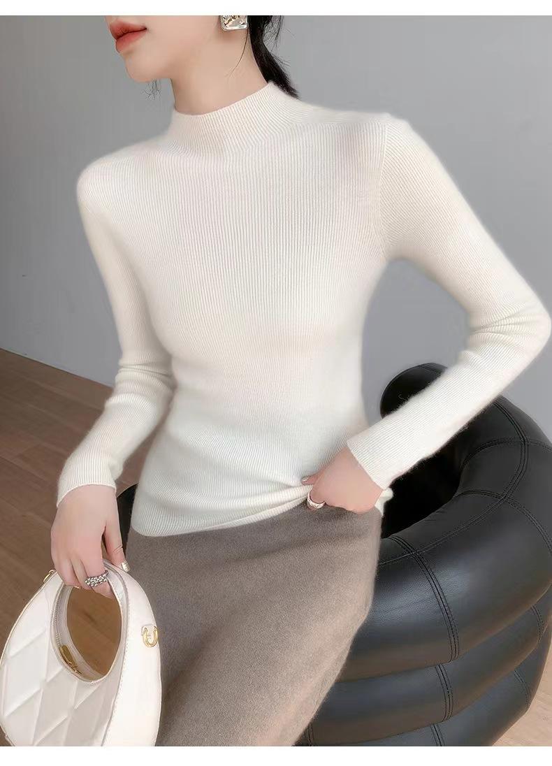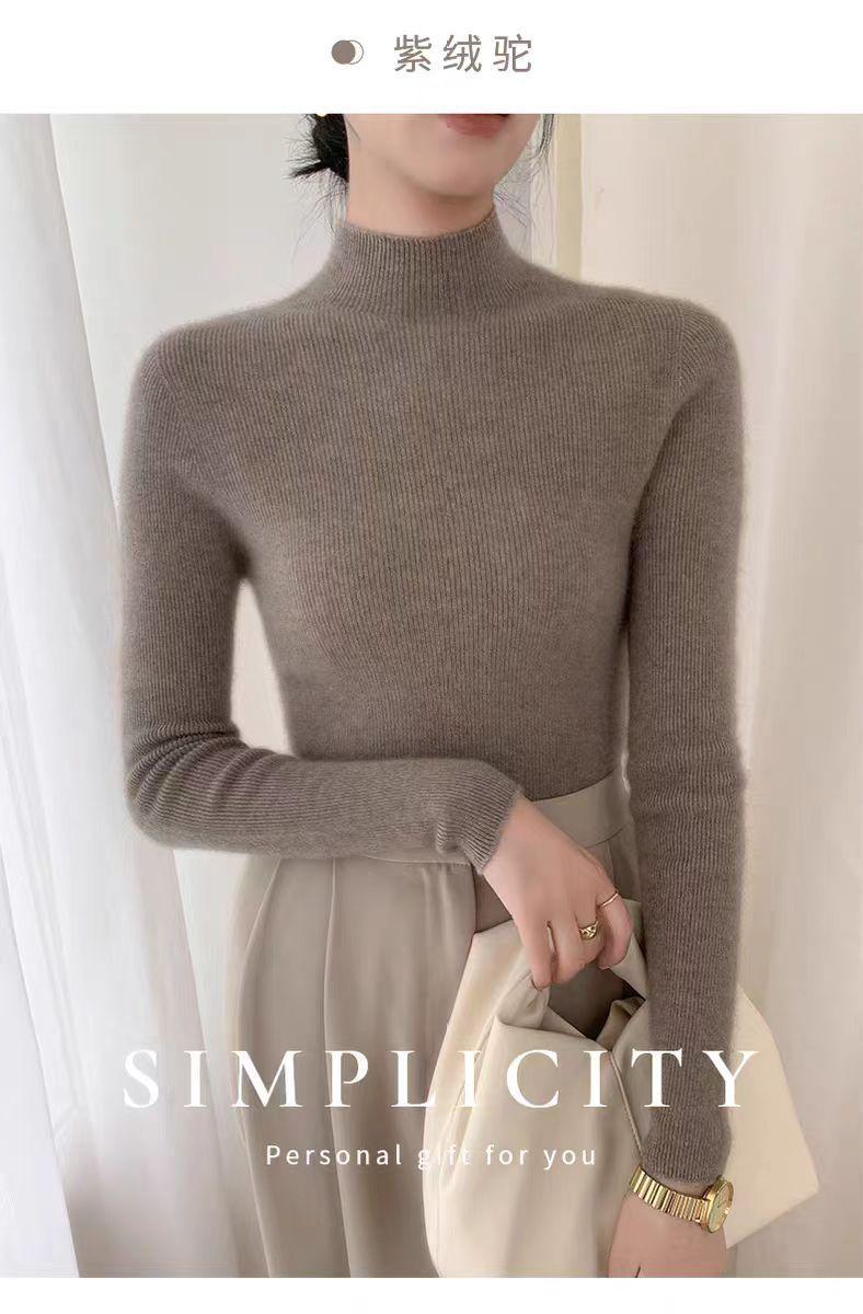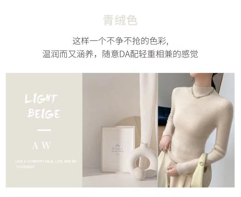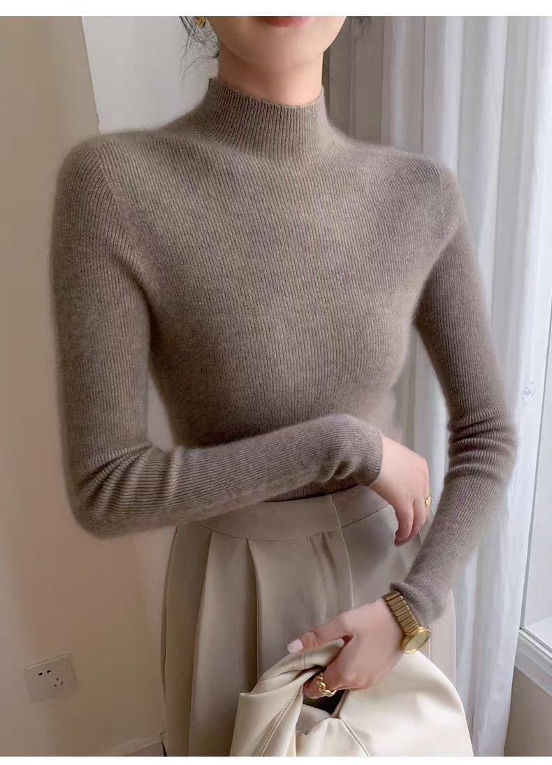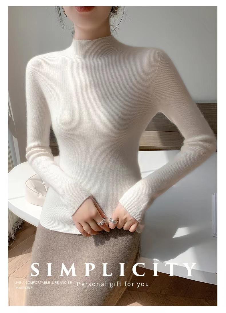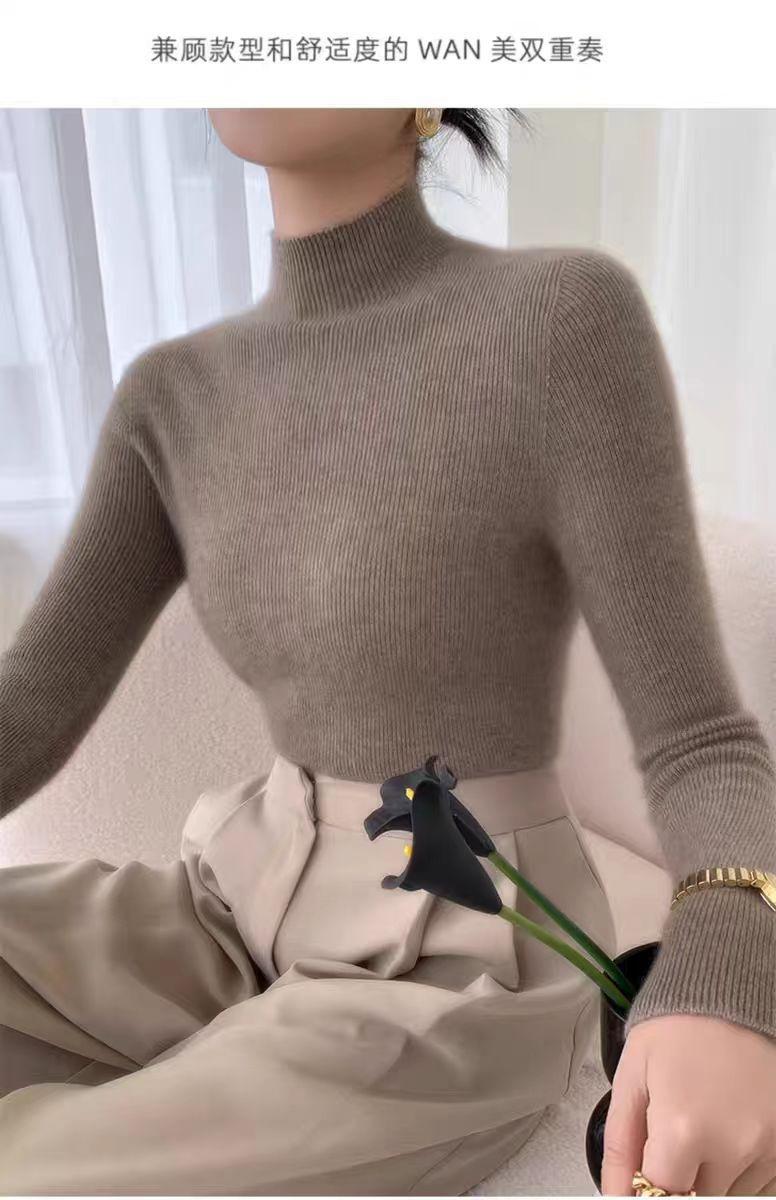[Primera Línea Listo para Usar] Suéter Grueso de Lana Tejida, Slim de Manga Larga Otoño e Invierno Versátil y Elegante Cuello Medio Tortuga Camiseta Base