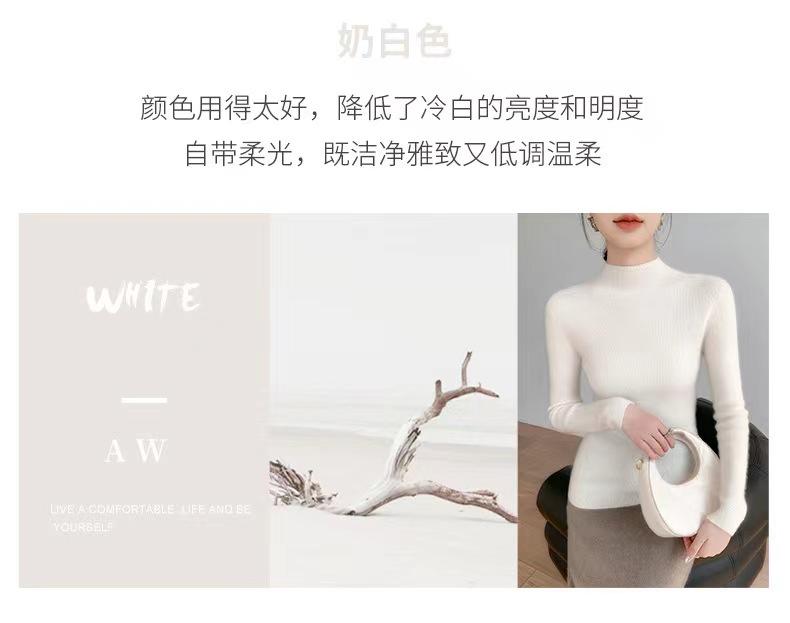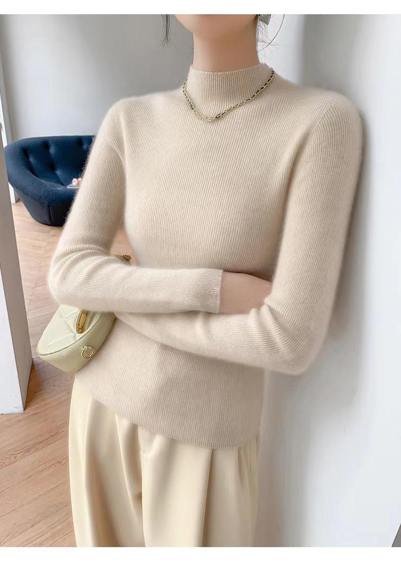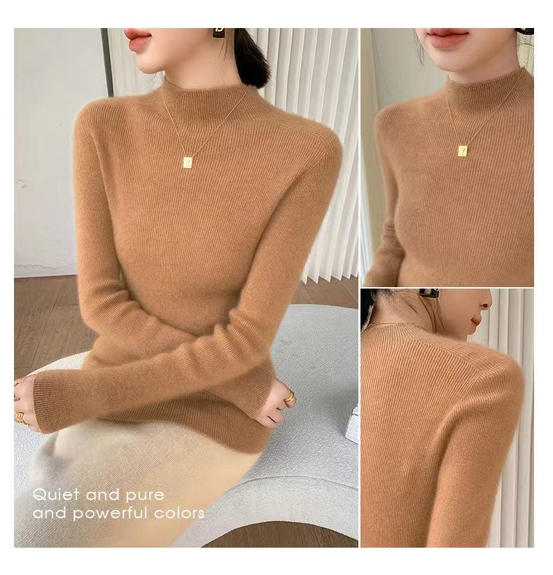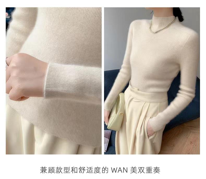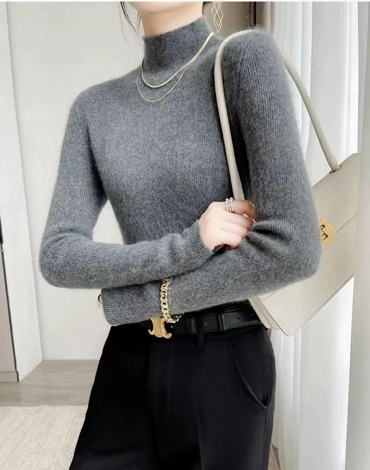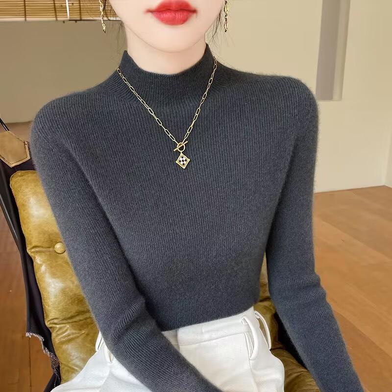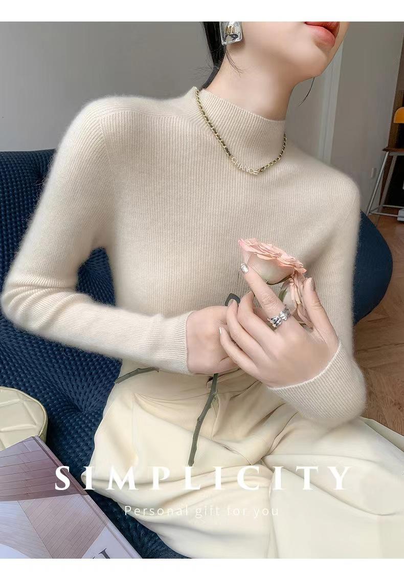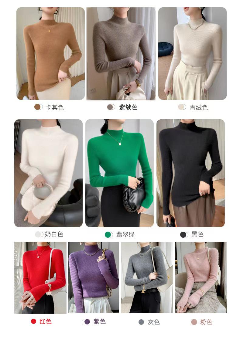 [Primera Línea Listo para Usar] Suéter Grueso de Lana Tejida, Slim de Manga Larga Otoño e Invierno Versátil y Elegante Cuello Medio Tortuga Camiseta Base