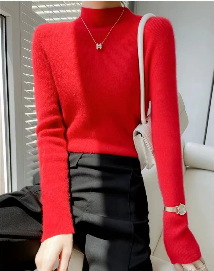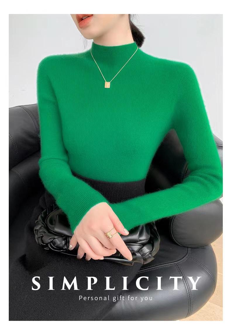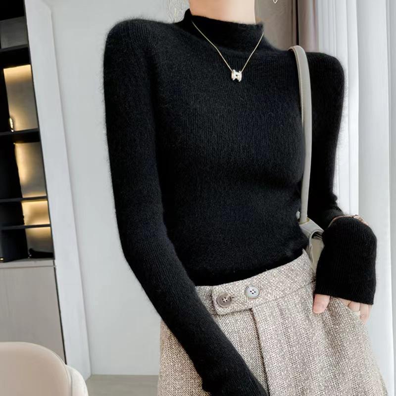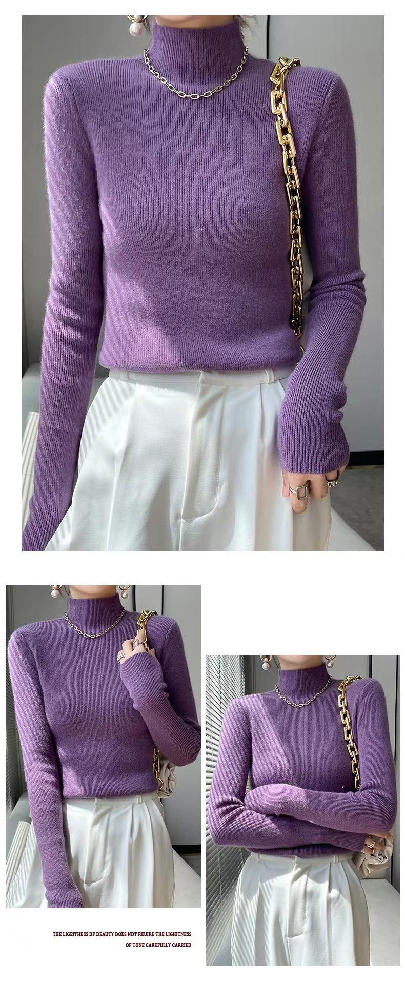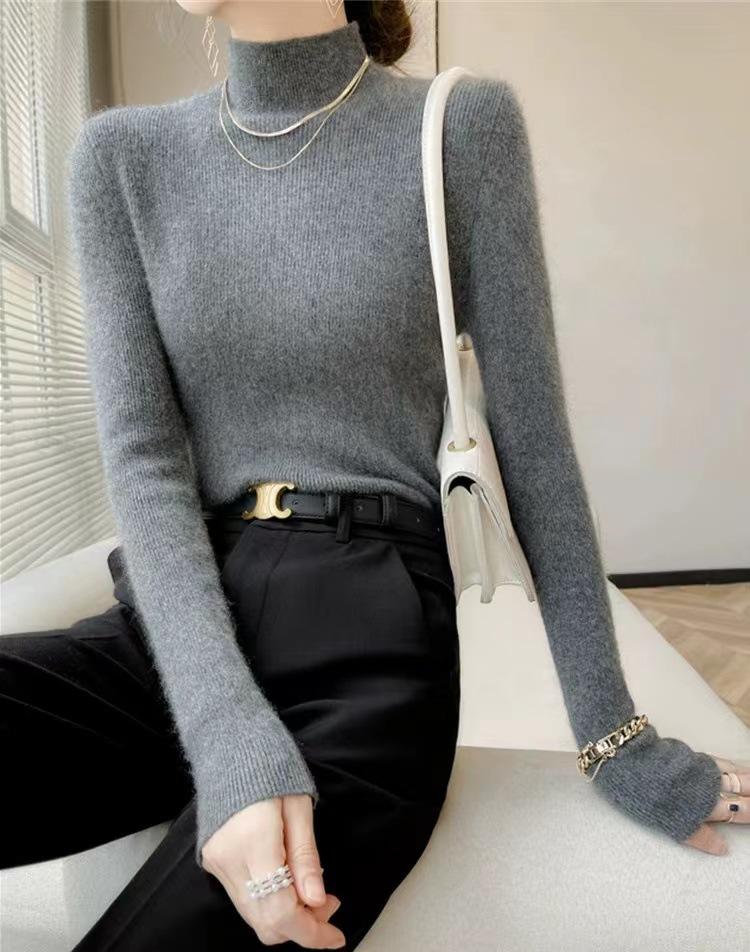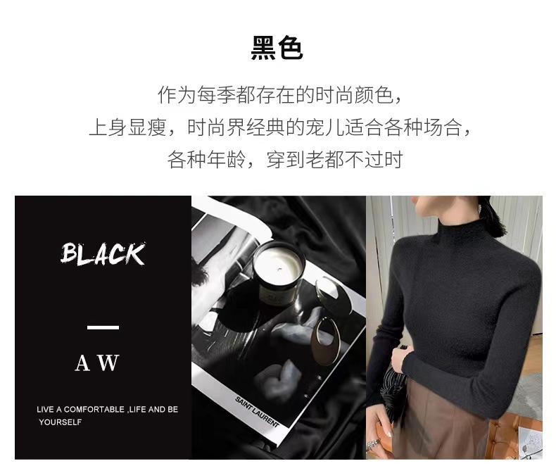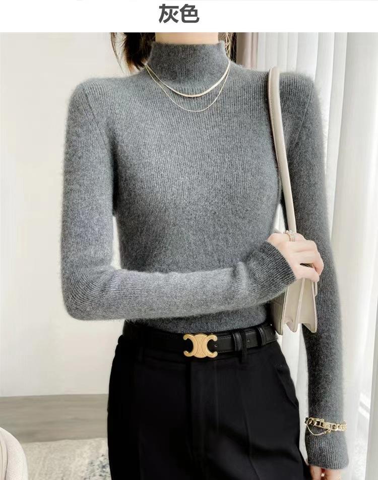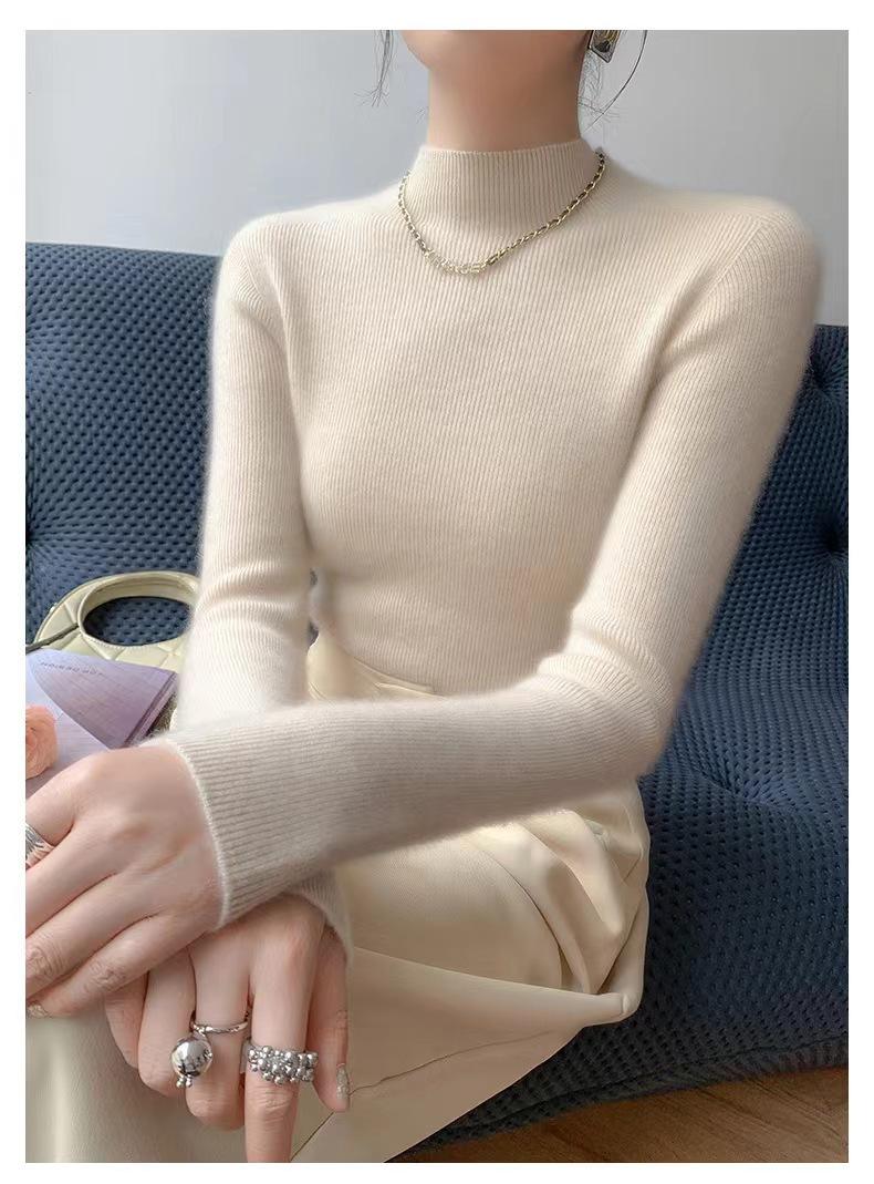 [Primera Línea Listo para Usar] Suéter Grueso de Lana Tejida, Slim de Manga Larga Otoño e Invierno Versátil y Elegante Cuello Medio Tortuga Camiseta Base