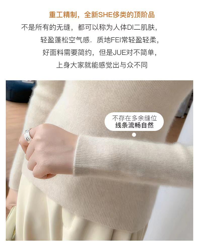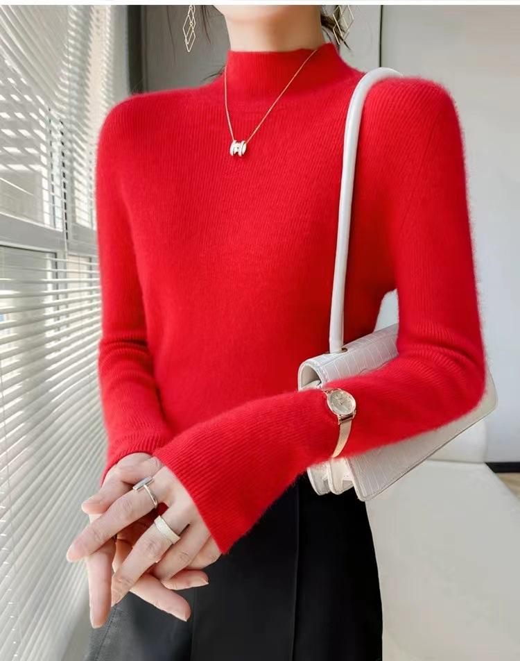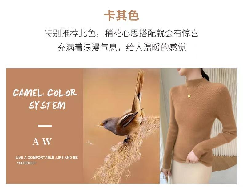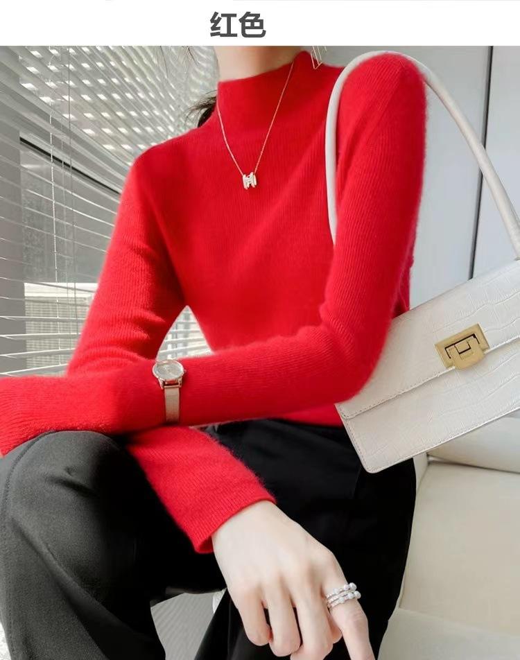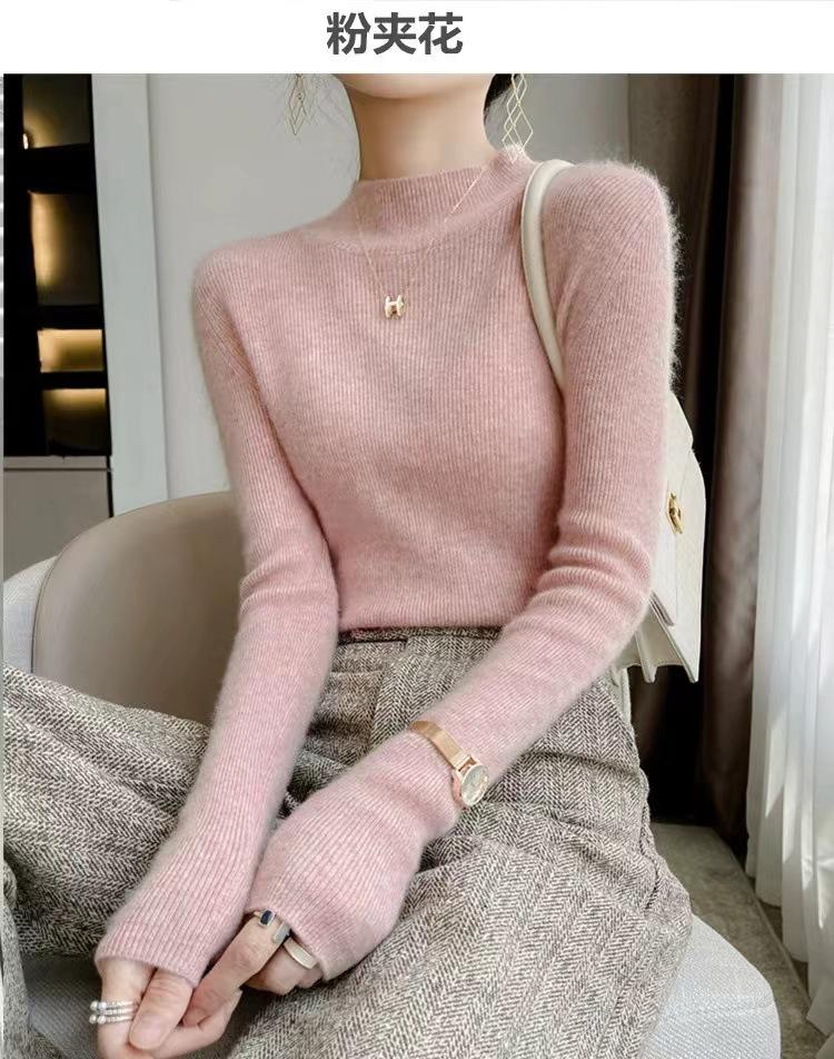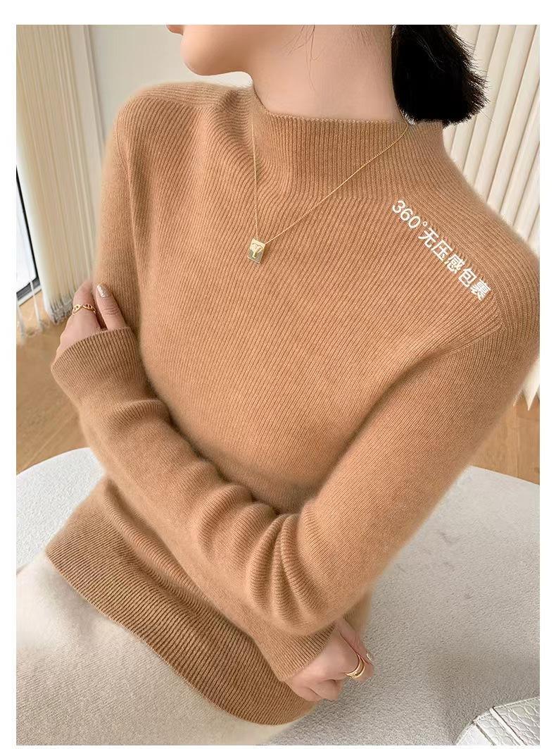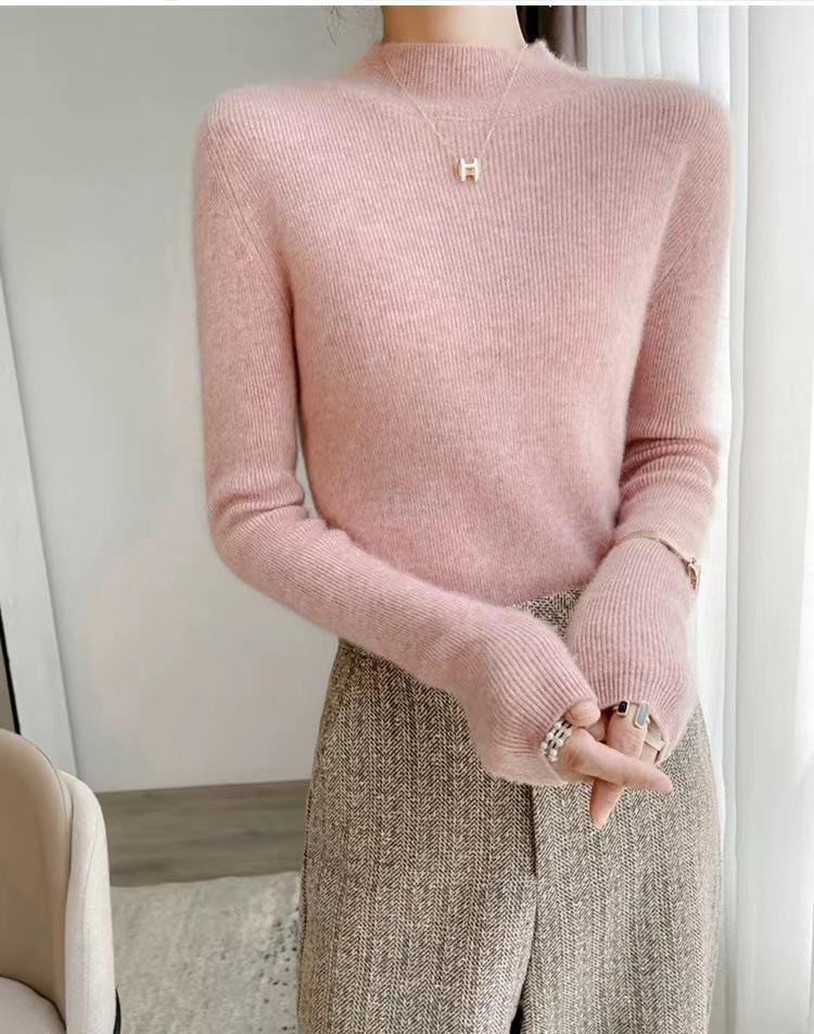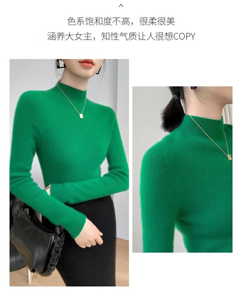 [Primera Línea Listo para Usar] Suéter Grueso de Lana Tejida, Slim de Manga Larga Otoño e Invierno Versátil y Elegante Cuello Medio Tortuga Camiseta Base