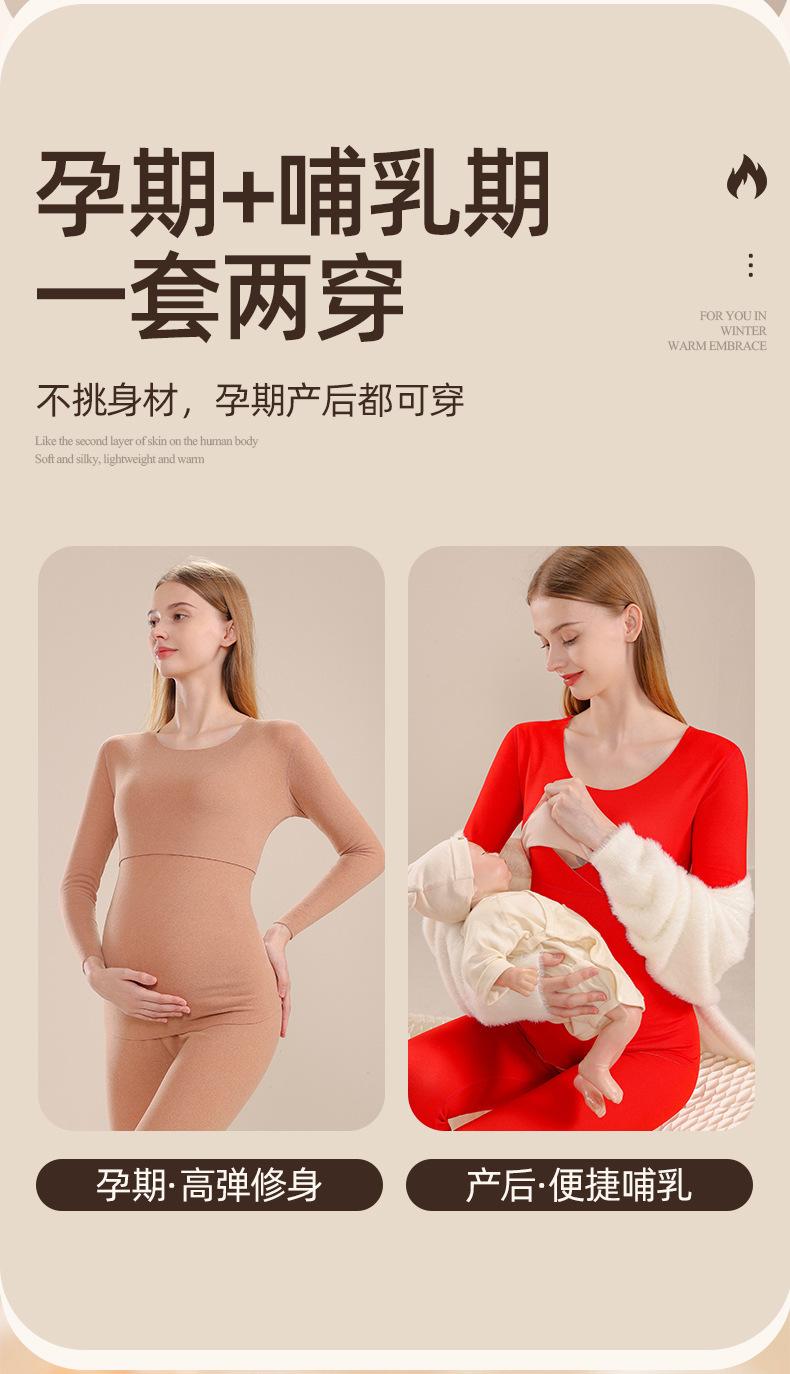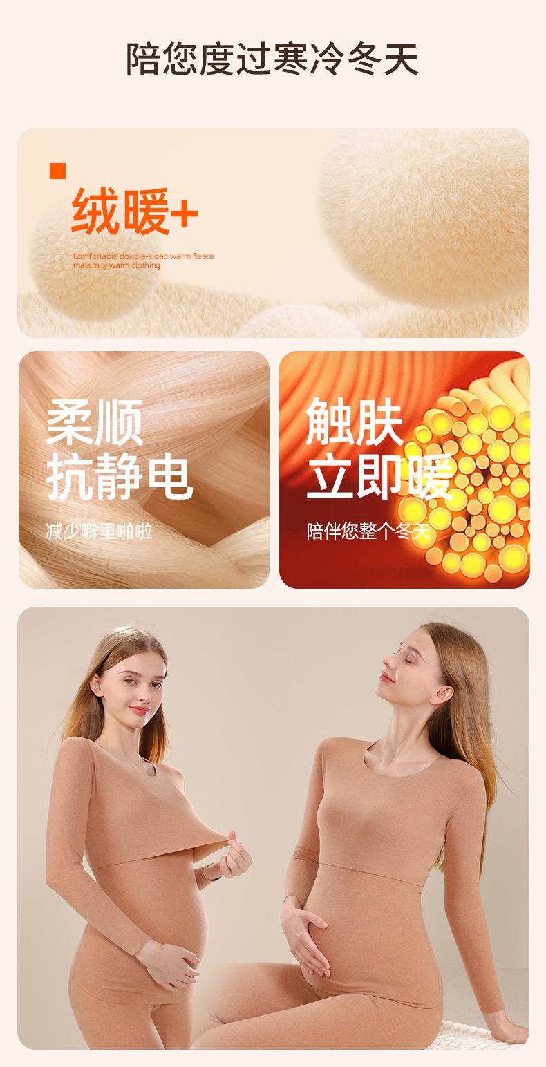 Ropa de otoño para embarazadas y pantalones de terciopelo, ropa interior térmica para posparto, lactancia materna, ropa de luna con forro polar, otoño e invierno.