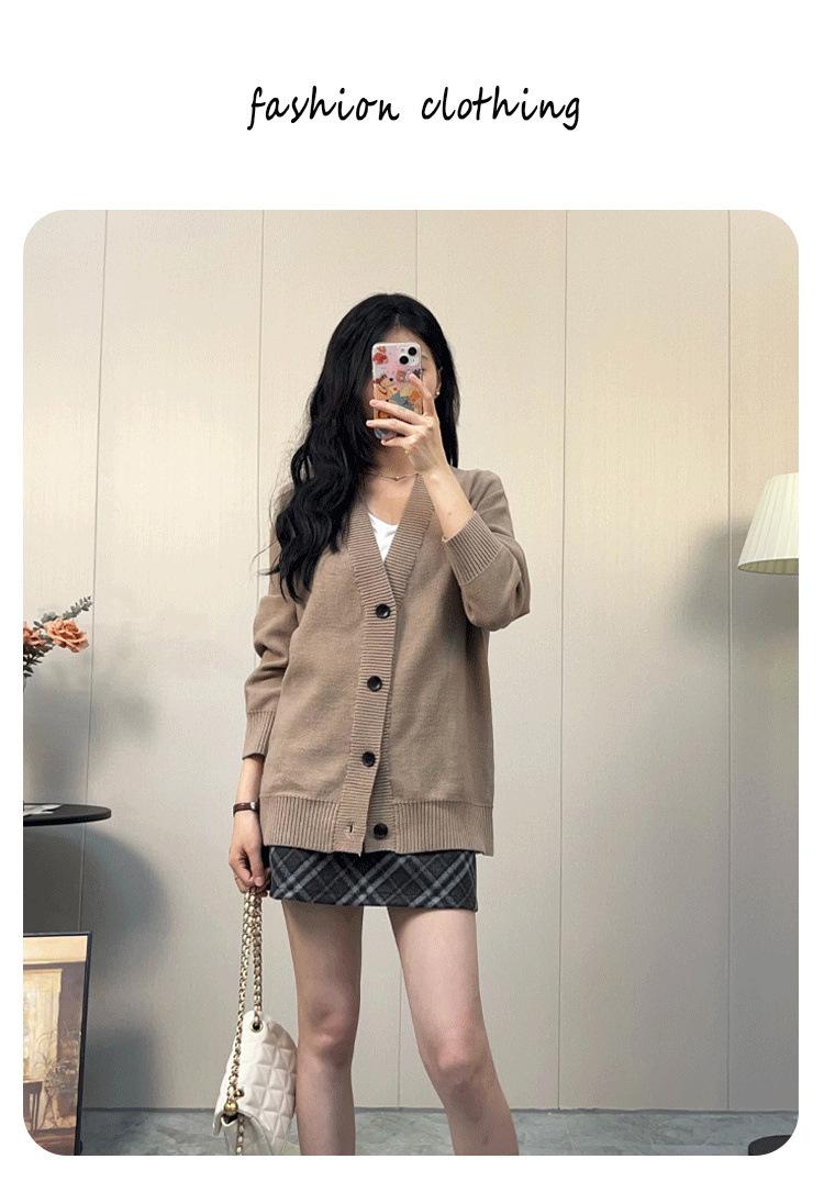 Chaqueta de Punto Retro Estilo Lazy para Mujer 2025 Nueva Primavera Suelta Casual Slim Suéter Cárdigan Top Cuello en V