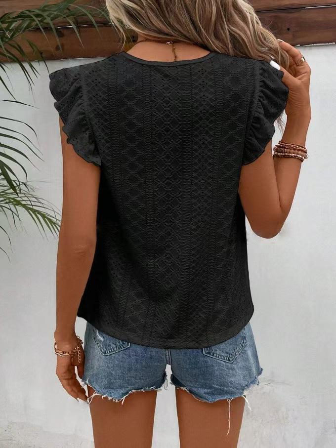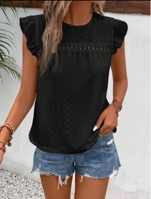 Camiseta de manga corta con cuello redondo, informal, color liso y estampado de hojas de loto para mujer, ropa de verano de Amazon, comercio exterior transfronterizo europeo y americano, 2024