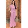 Este traje es principalmente negro, con costuras rosas, lo que hace que el aspecto general sea más vibrante.