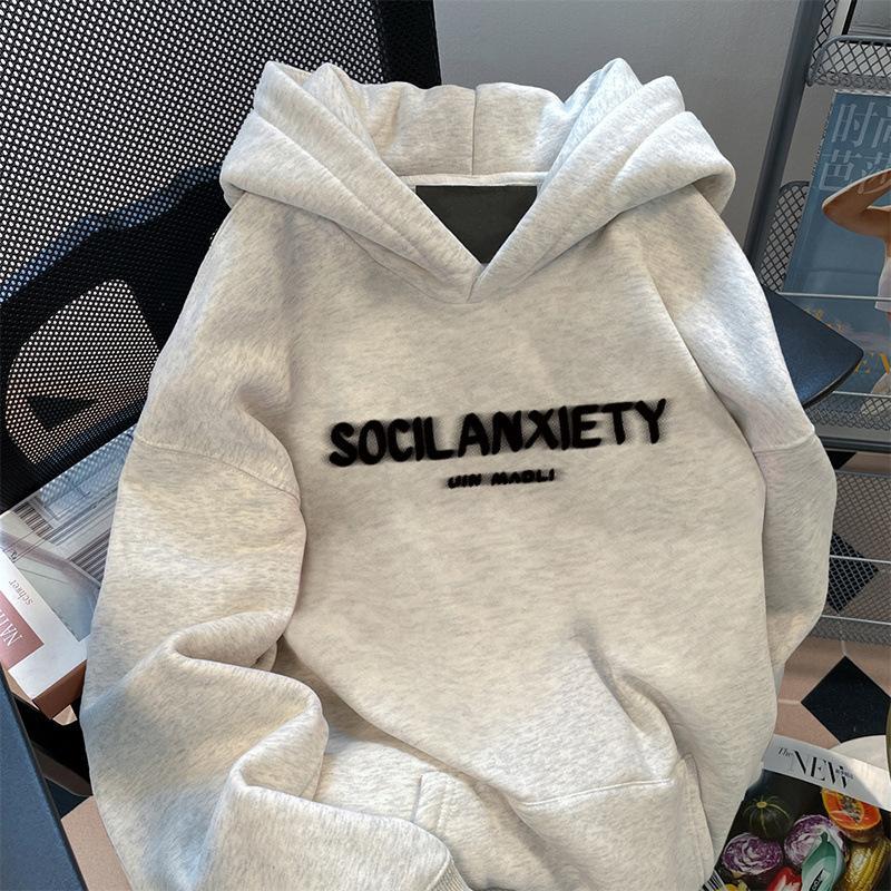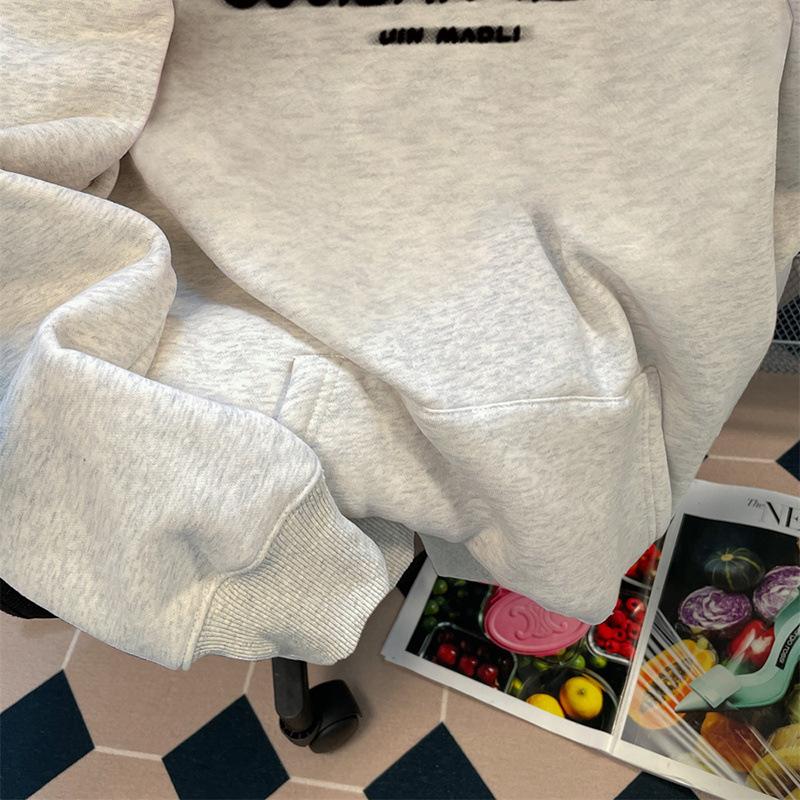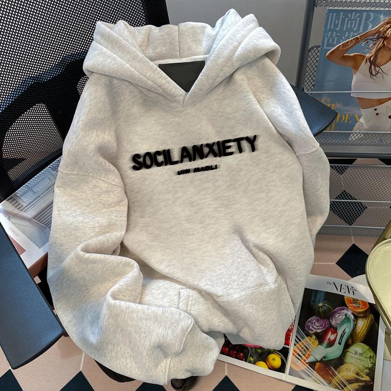Sudadera con capucha con letras de diseño americano para mujer en otoño e invierno, holgada, casual y versátil, chaqueta de moda para personas pequeñas