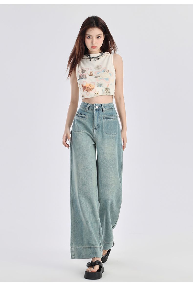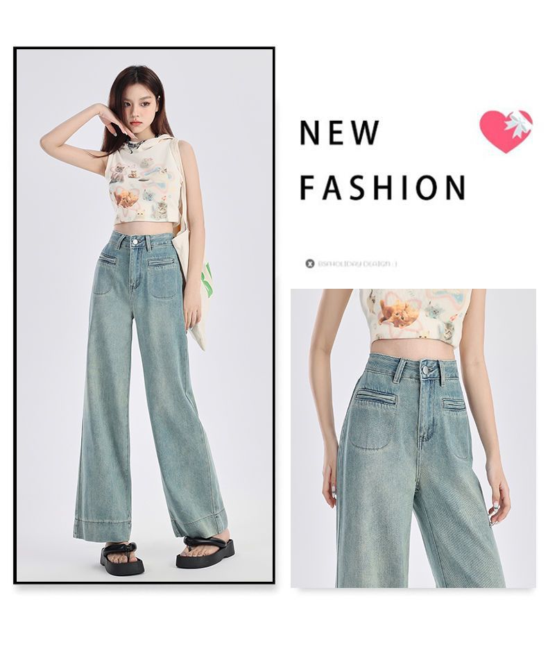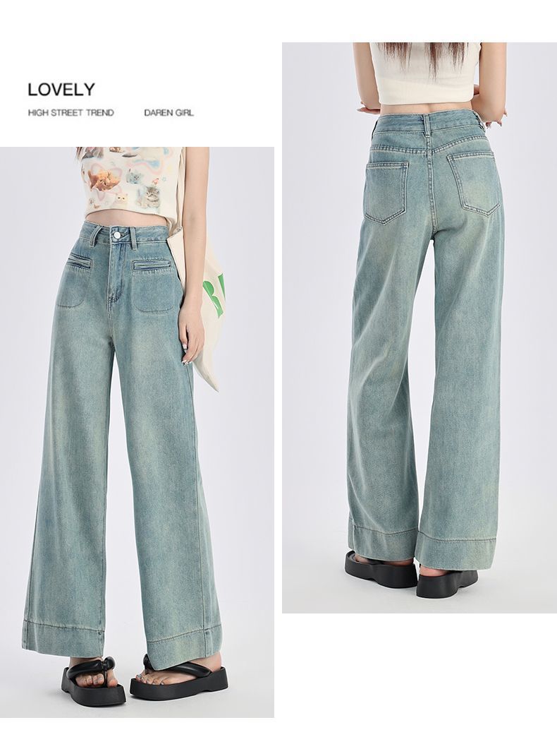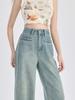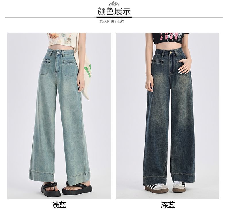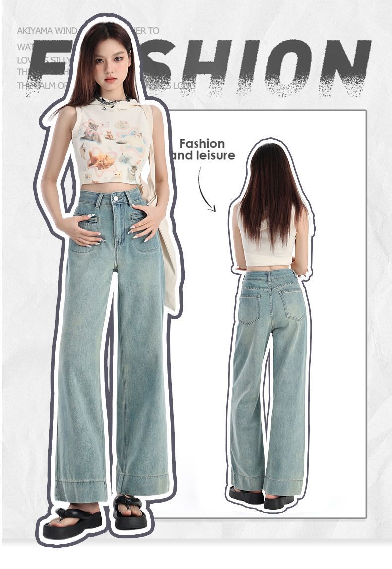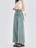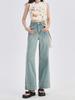 Vaqueros azul claro de pierna ancha para mujer, primavera y otoño de 2024, nuevos pantalones largos rectos holgados y adelgazantes de cintura alta.