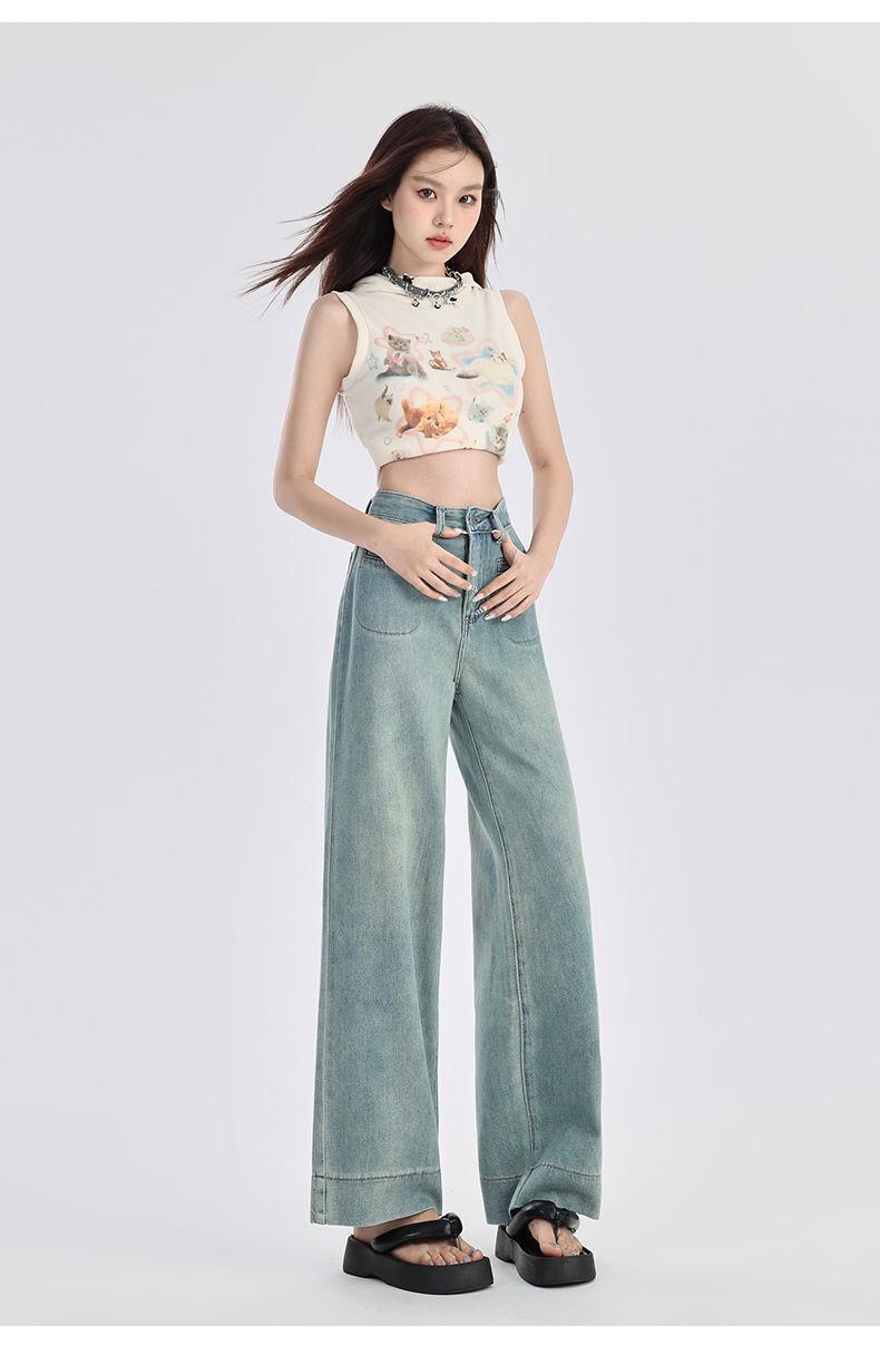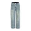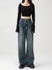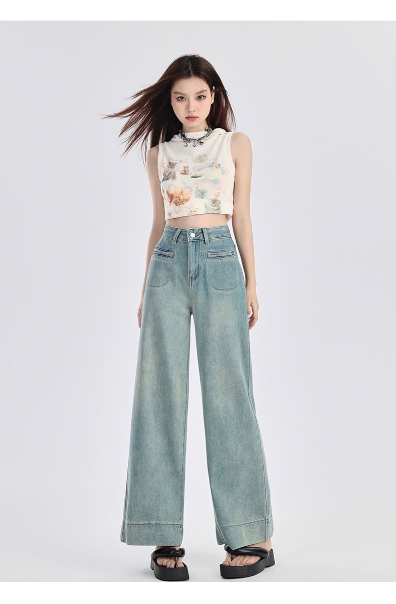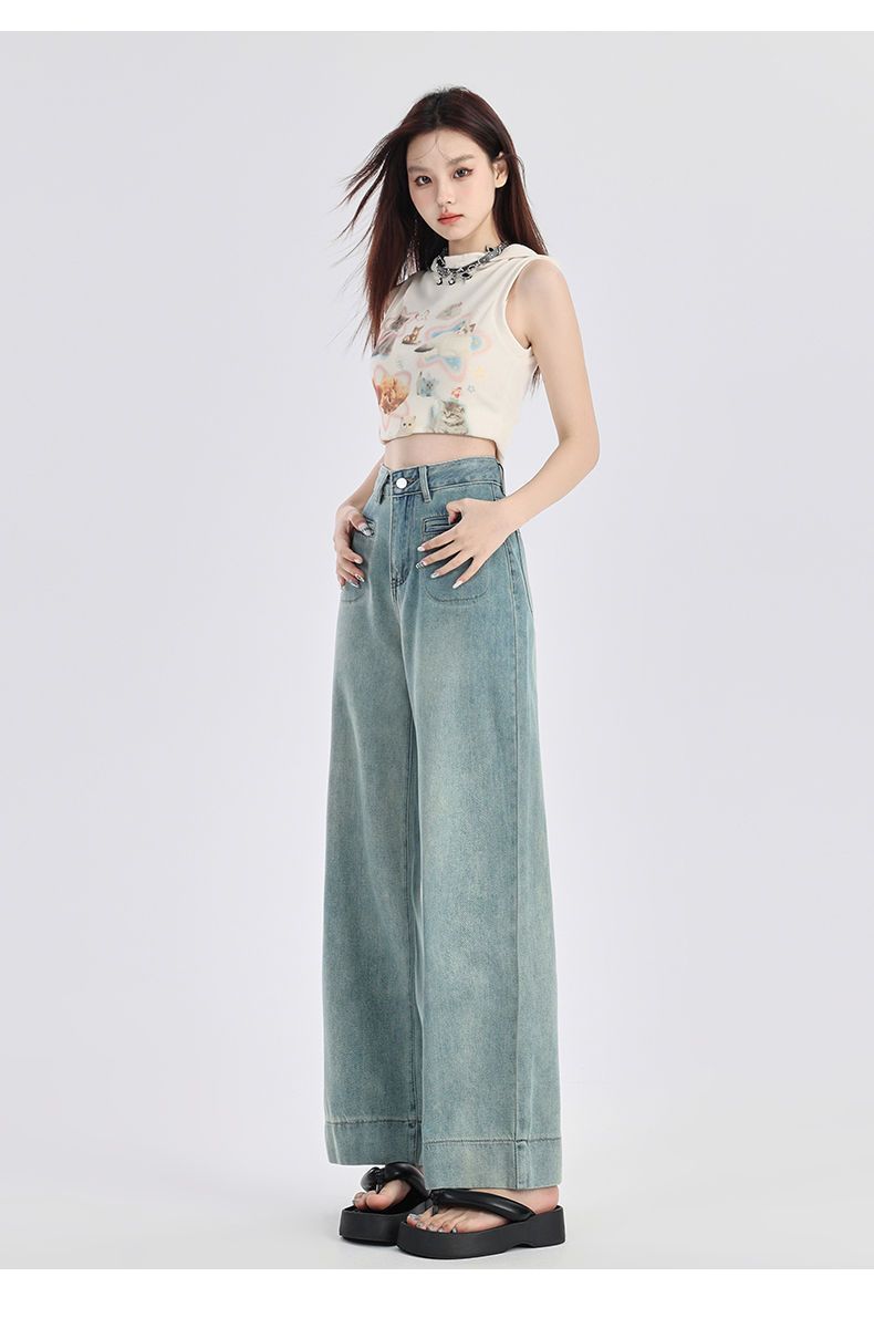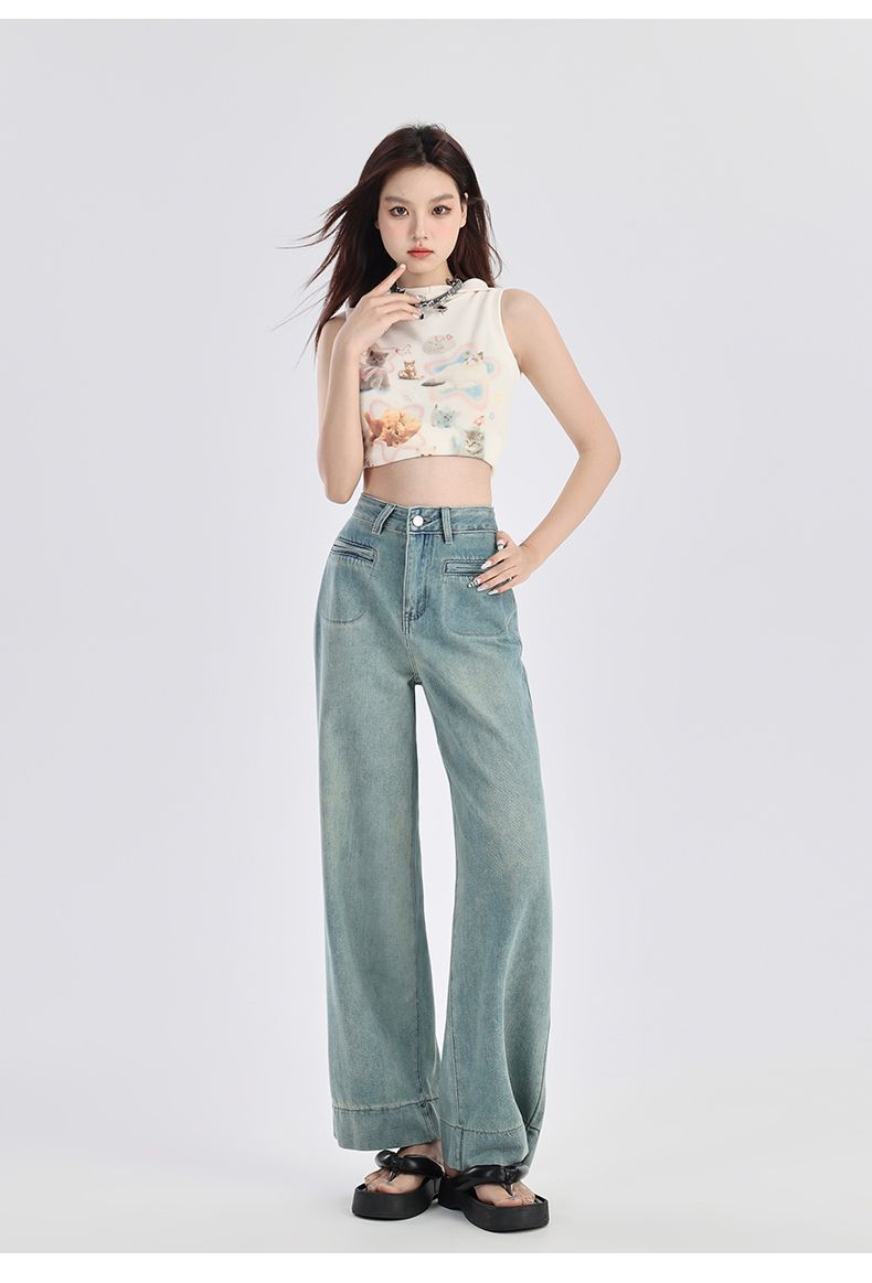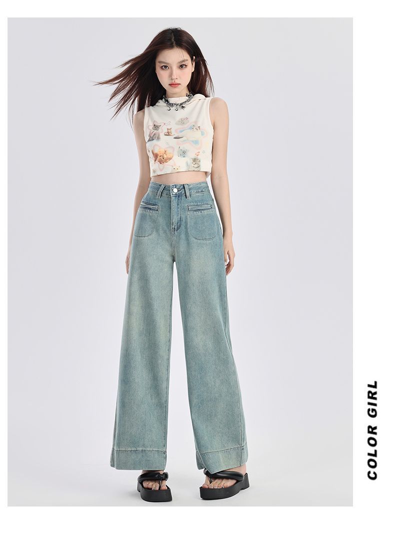 Vaqueros azul claro de pierna ancha para mujer, primavera y otoño de 2024, nuevos pantalones largos rectos holgados y adelgazantes de cintura alta.