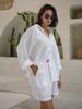 Traje de camisa de algodón y lino transfronterizo para mujer, traje informal de verano con camisa holgada de manga larga y pantalones cortos para vacaciones en Europa y América.