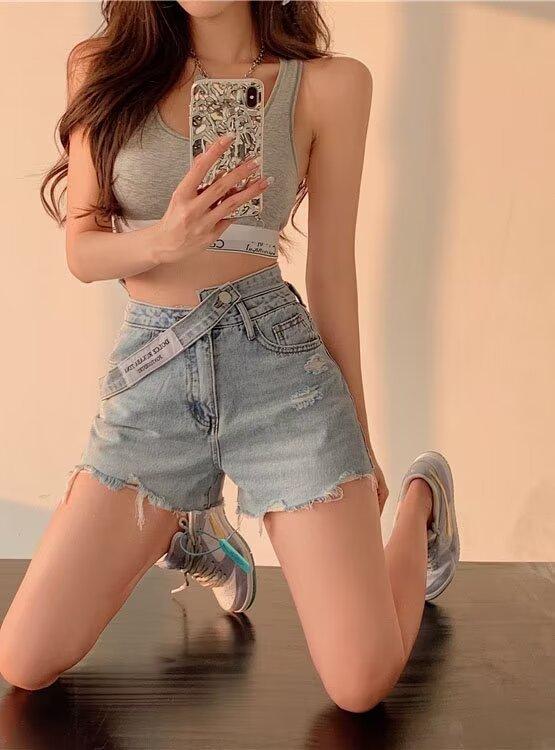Diseño Sentido Combinación Total Tendencia 2024 Verano Nuevo Pantalones de Pierna Recta Pantalones de Pierna Ancha Ajustado Ceñido Alto Delgado Tendencia