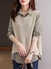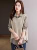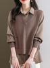 Suéter de dos piezas falso para mujer, primavera y otoño 2024, con cuello camisero corto y costuras, camisa de punto holgada de manga larga