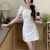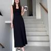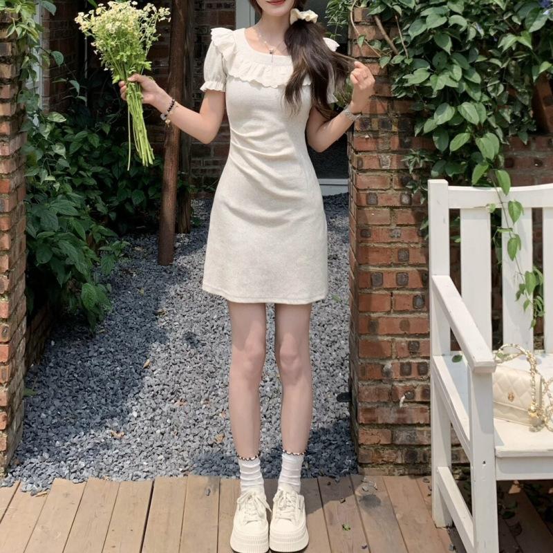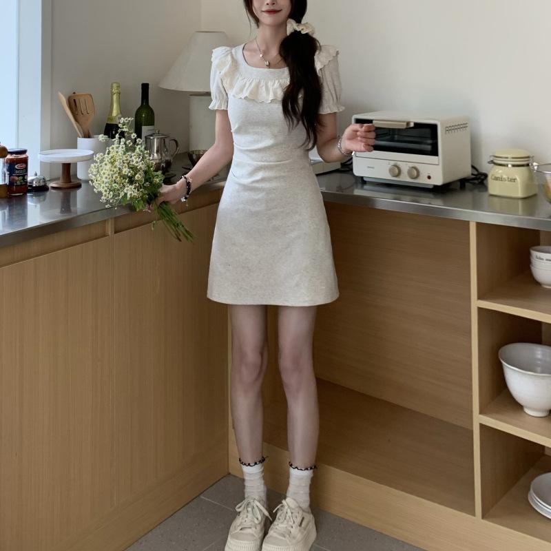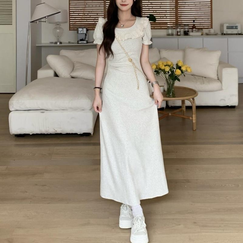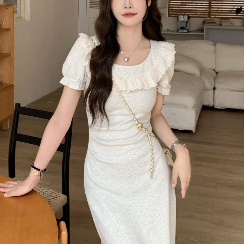 Vestido de verano para mujer, estilo francés, con cuello cuadrado y costuras de encaje, elegante, ajustado, con cintura adelgazante y corte A hasta la cadera, vestido largo.