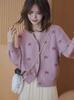 Cárdigan morado con cuello en V, primavera y otoño 2024, nuevo estilo coreano, para uso interior, estilo suave, para uso exterior, suéter de punto con botones y textura suave y cerosa para mujer.