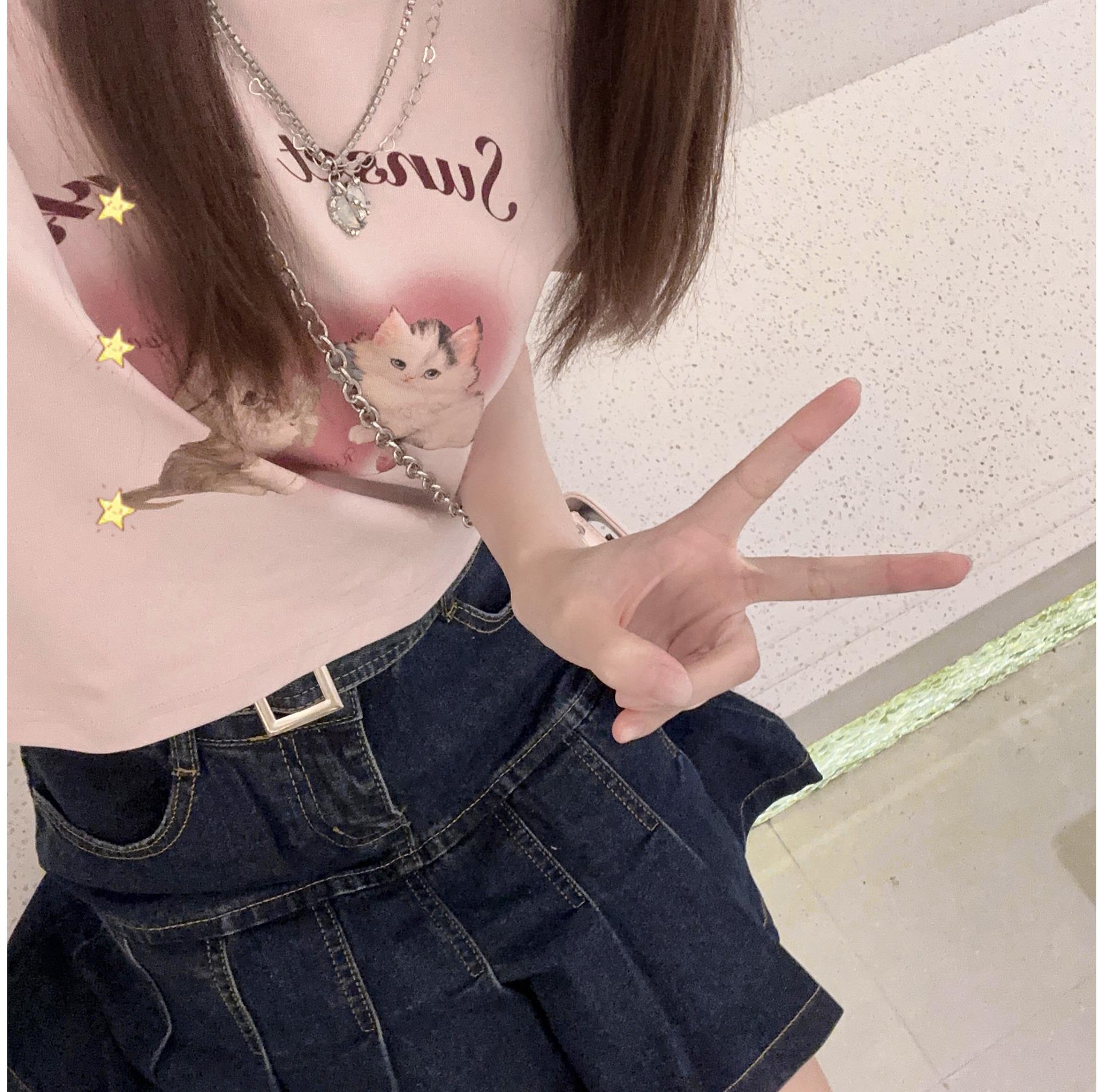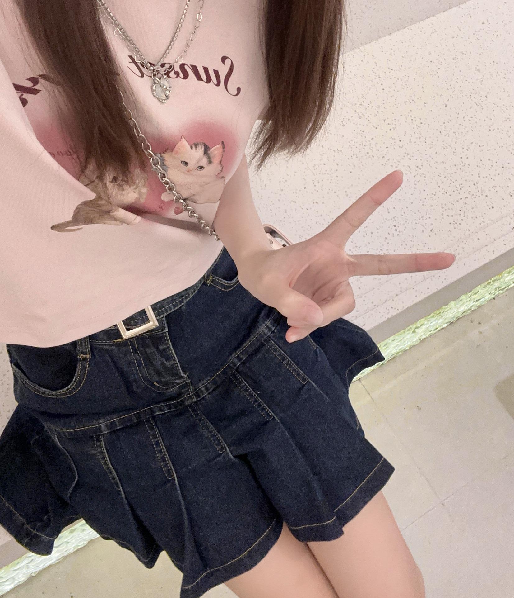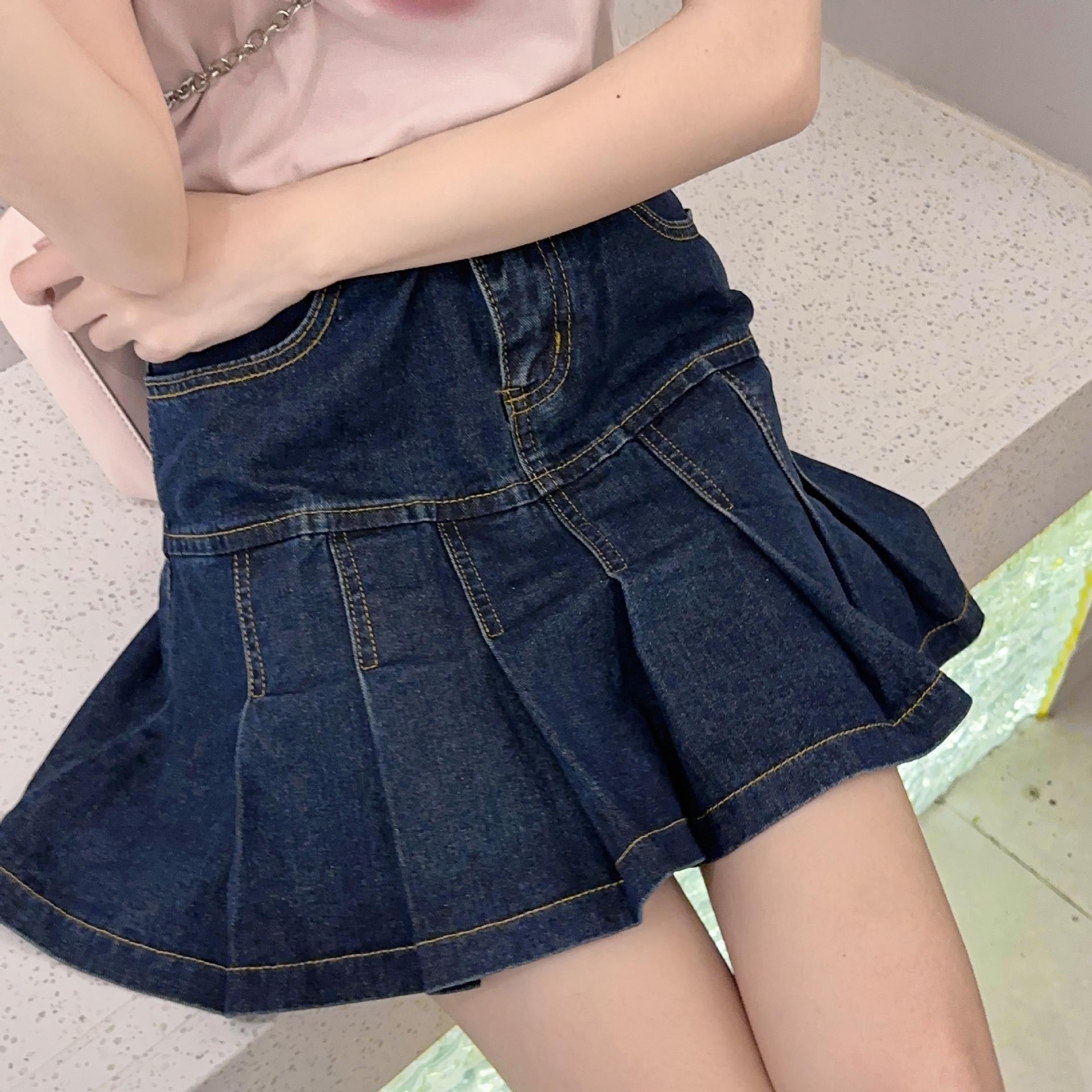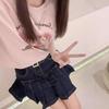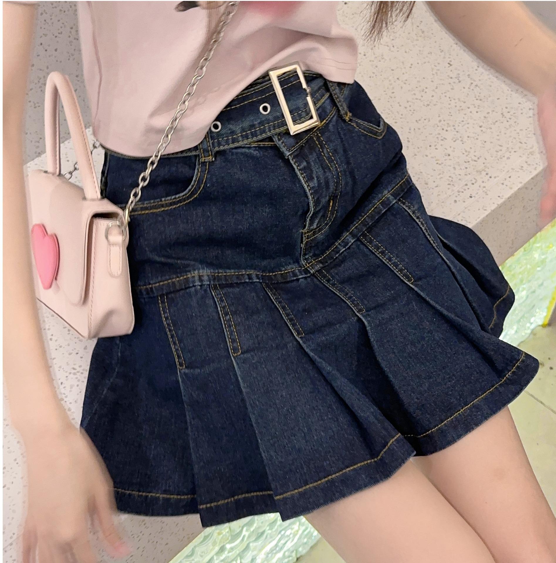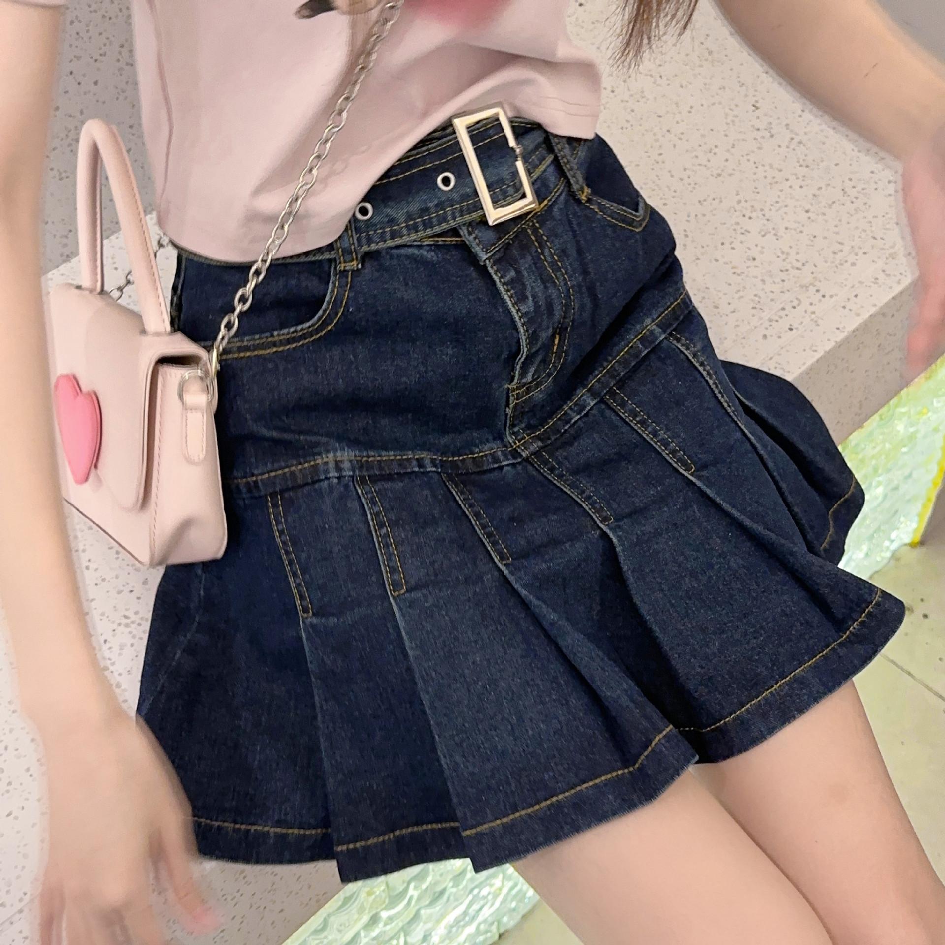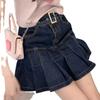 Minifalda vaquera de talle alto para mujer 2025 verano nuevo estilo con cinturón retro adelgazante hot girl falda plisada línea A