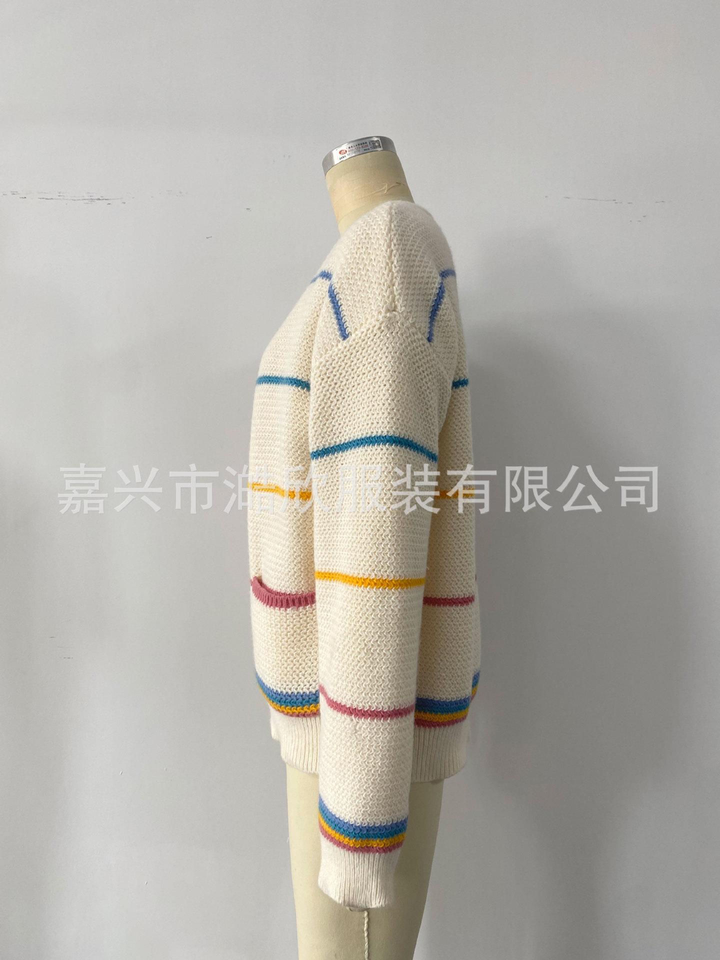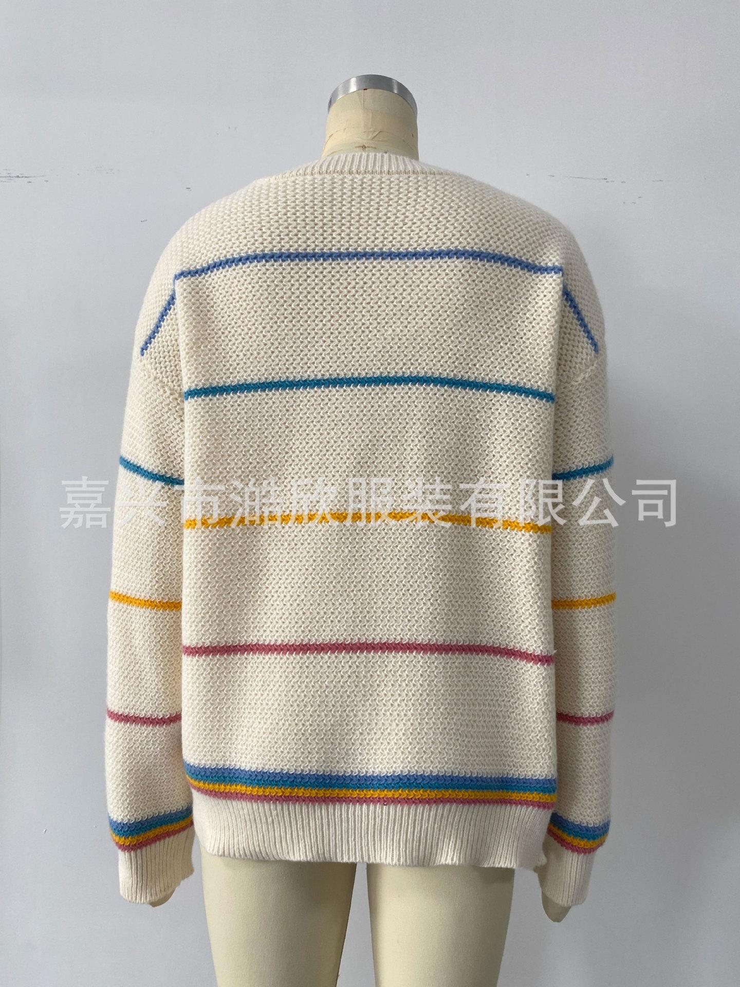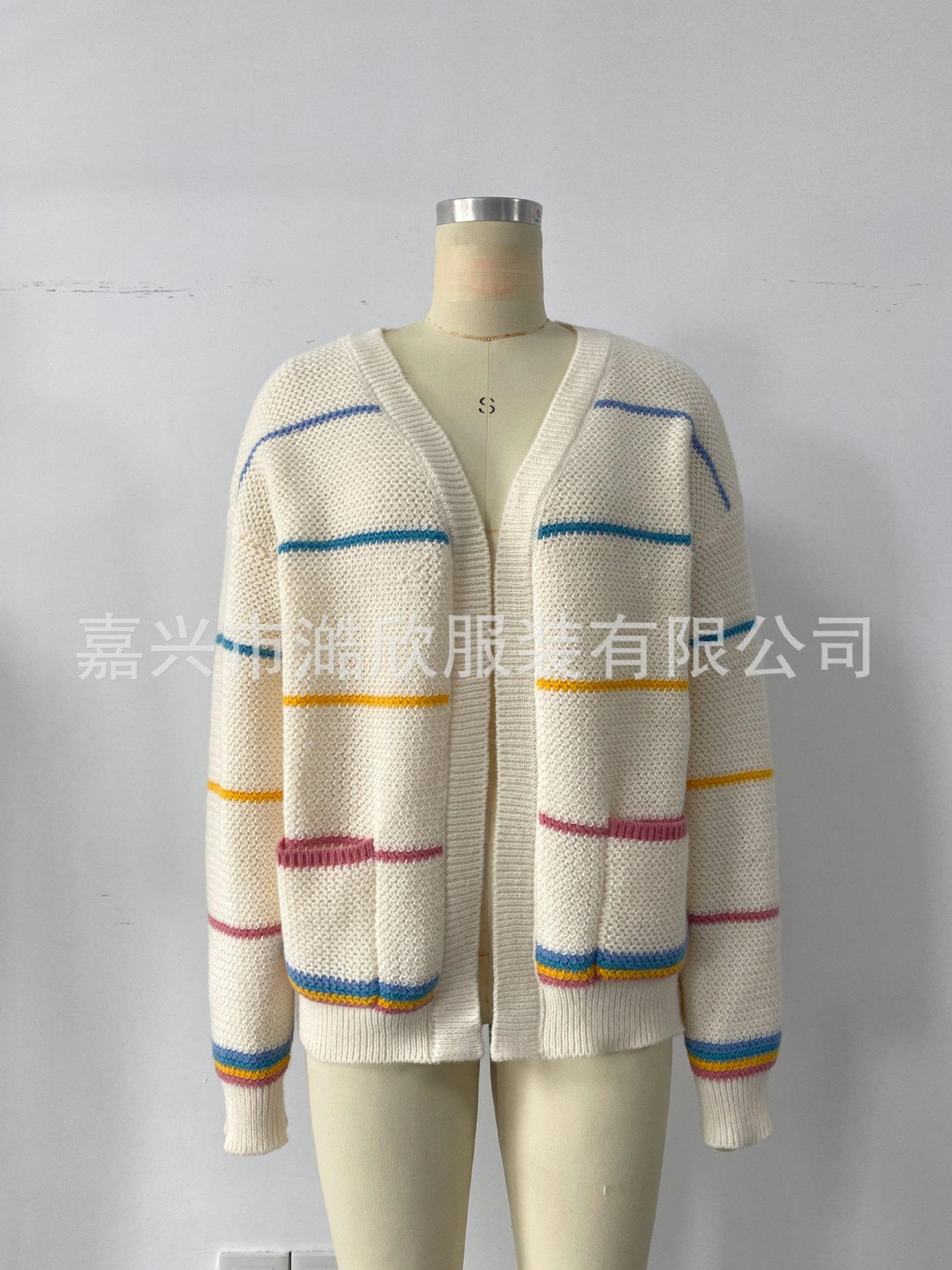 Cárdigan de punto de rayas arcoíris de otoño e invierno Comercio exterior transfronterizo Suéter de mujer Moda Suelto Casual Combinable Chaqueta suéter de punto