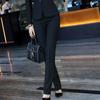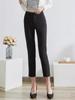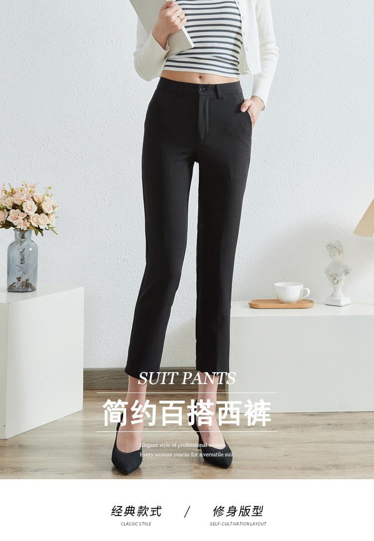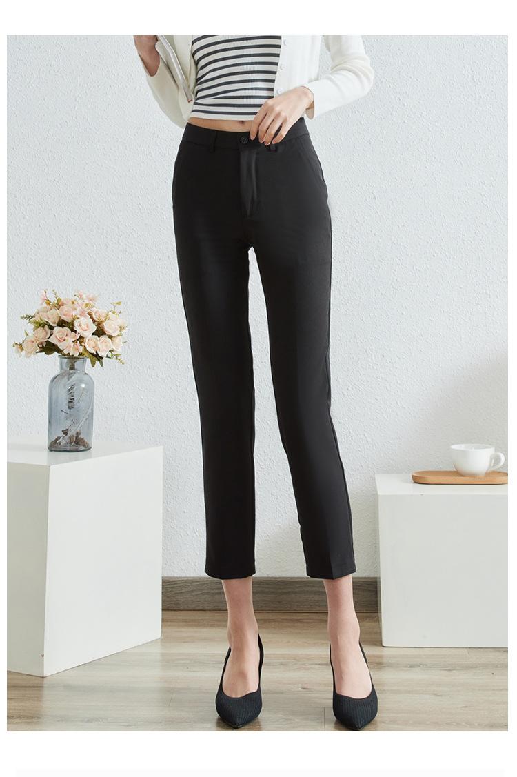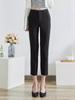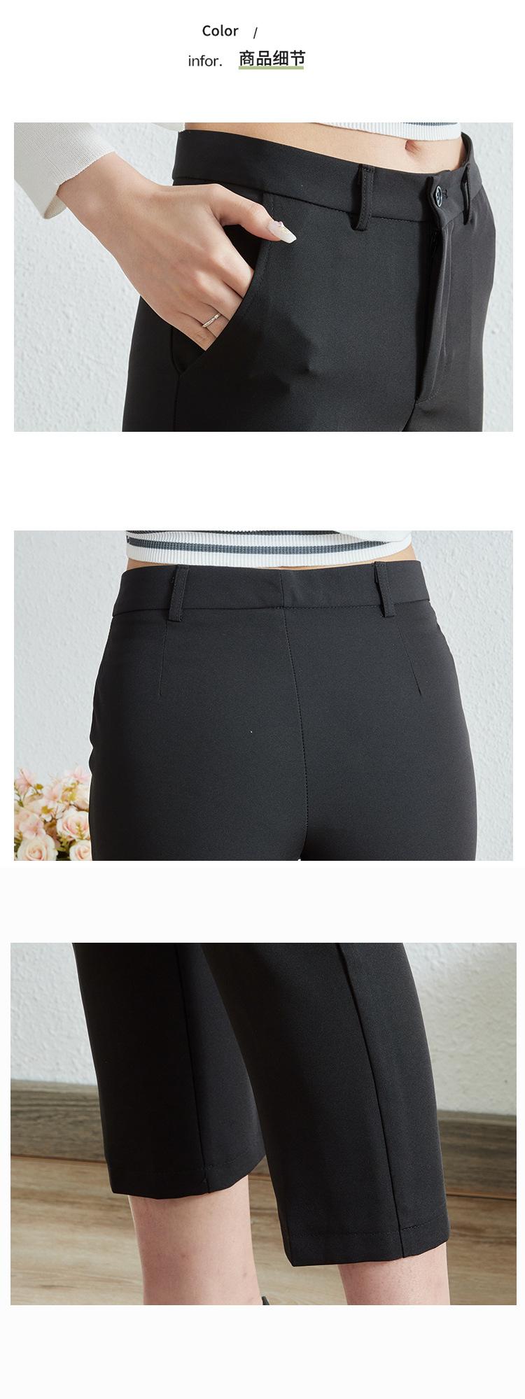 Pantalones Rectos de Manga Corta de Cintura Alta para Mujer Profesionales Primavera y Verano Negros Entrevista Ropa de Trabajo de Cuello Blanco Pantalones Peto de Trabajo