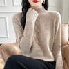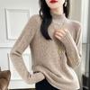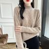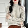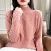 Suéter de lana pura 100%, nueva moda 2024, suéter de punto de cuello alto con flores retorcidas para mujer, top holgado de otoño e invierno.