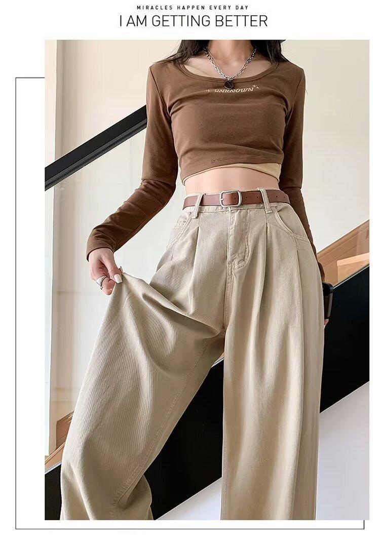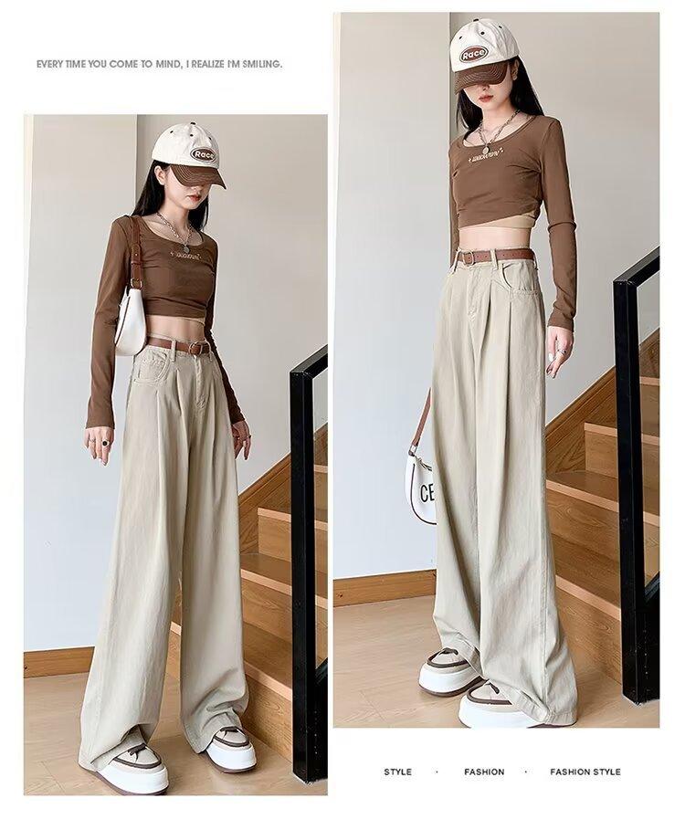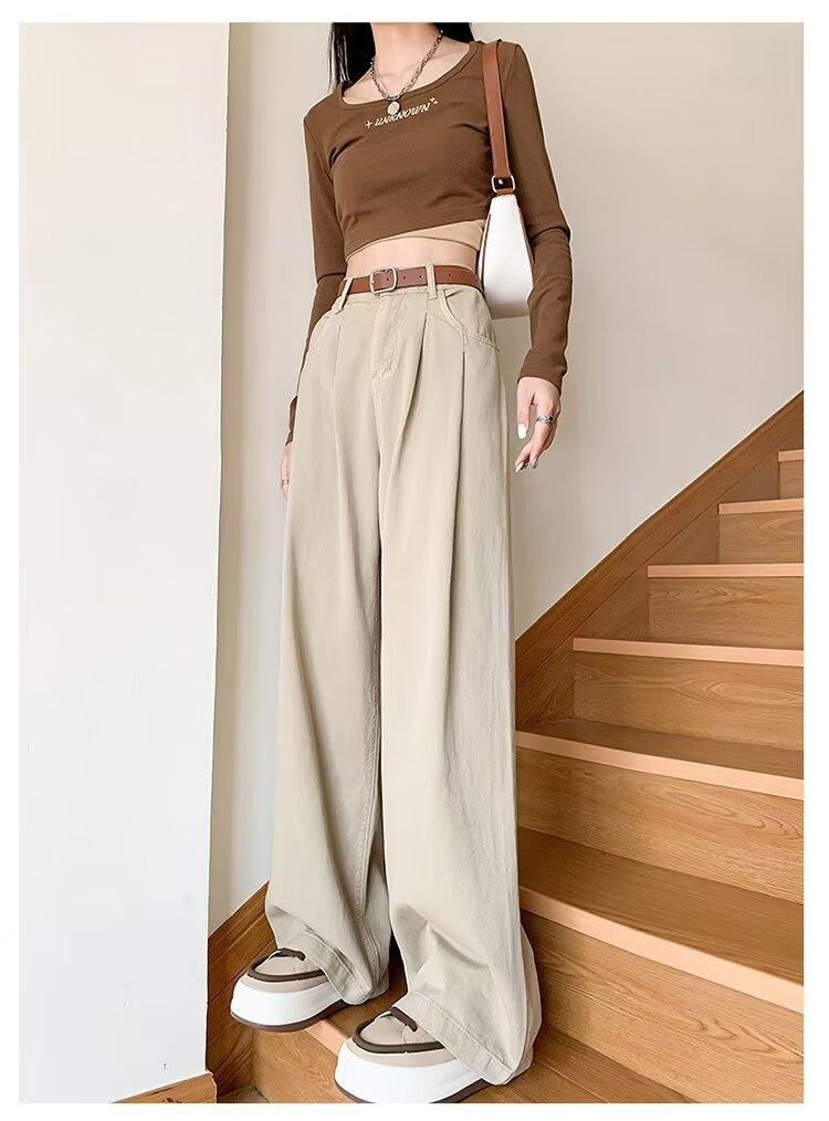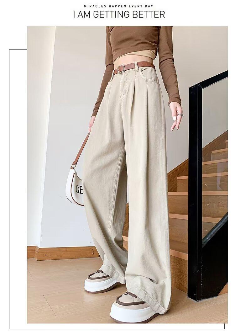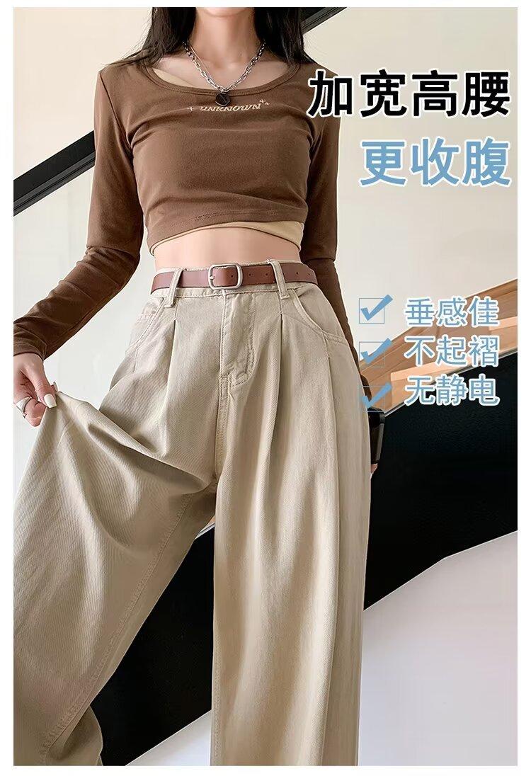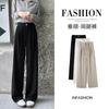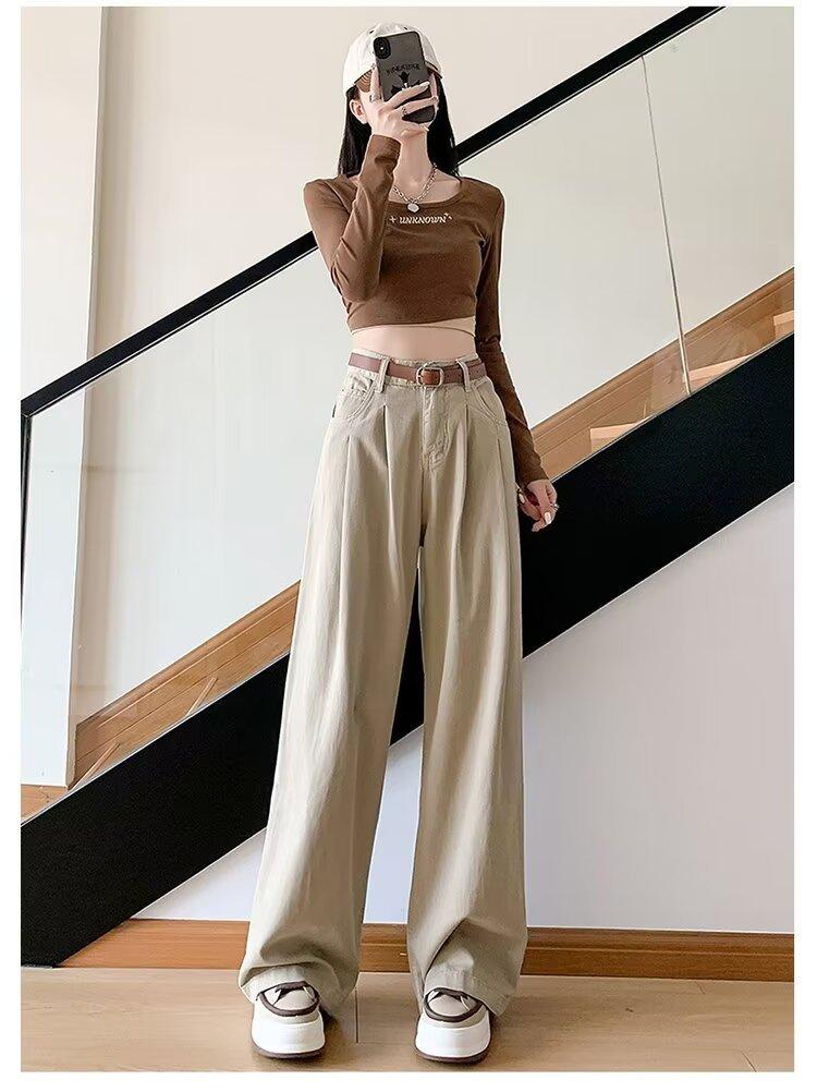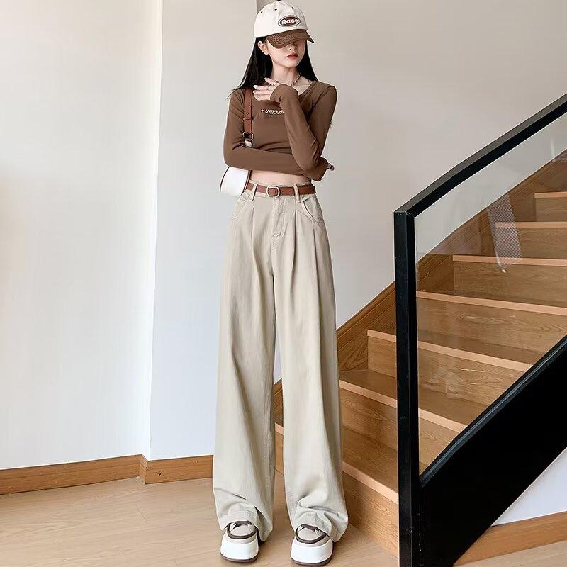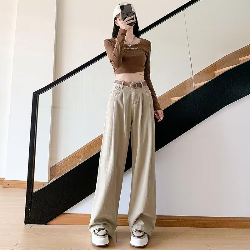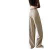 Diseño de tiro real pantalones casuales negros para mujer 2024 Otoño Nuevo Cintura alta drapeado pequeño recto casual pierna ancha