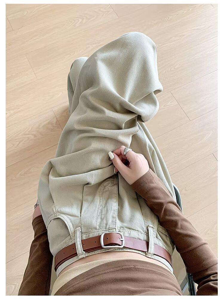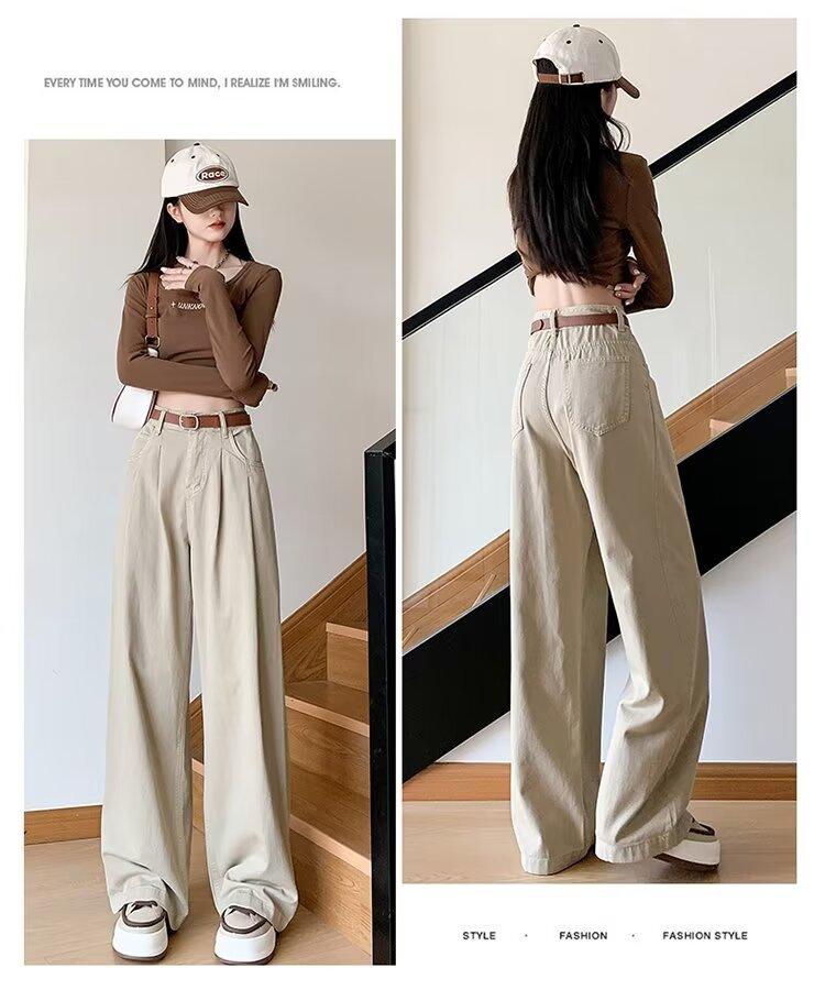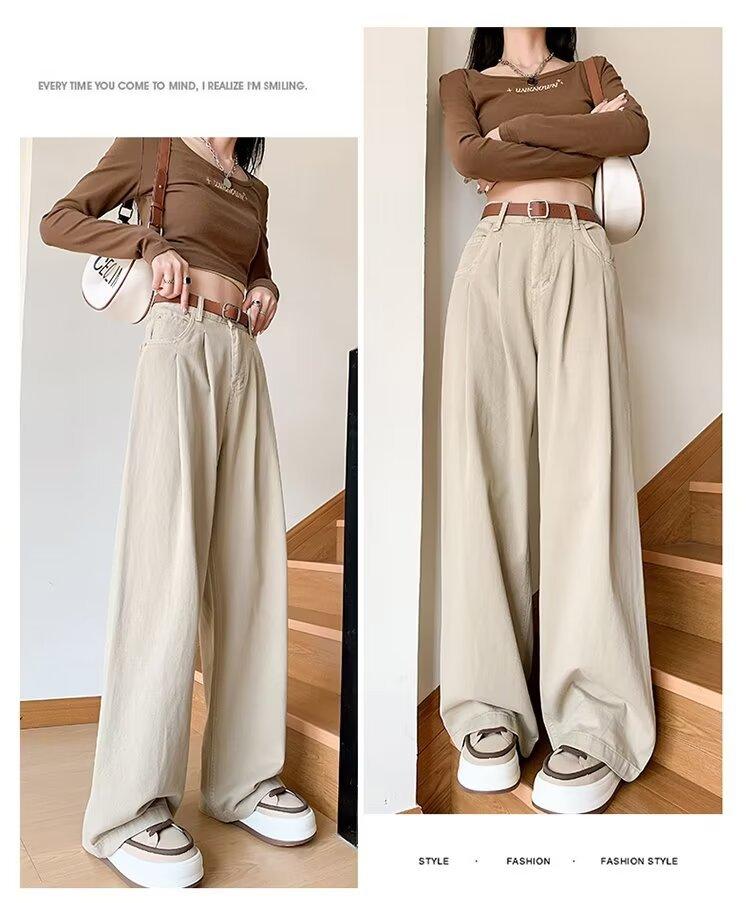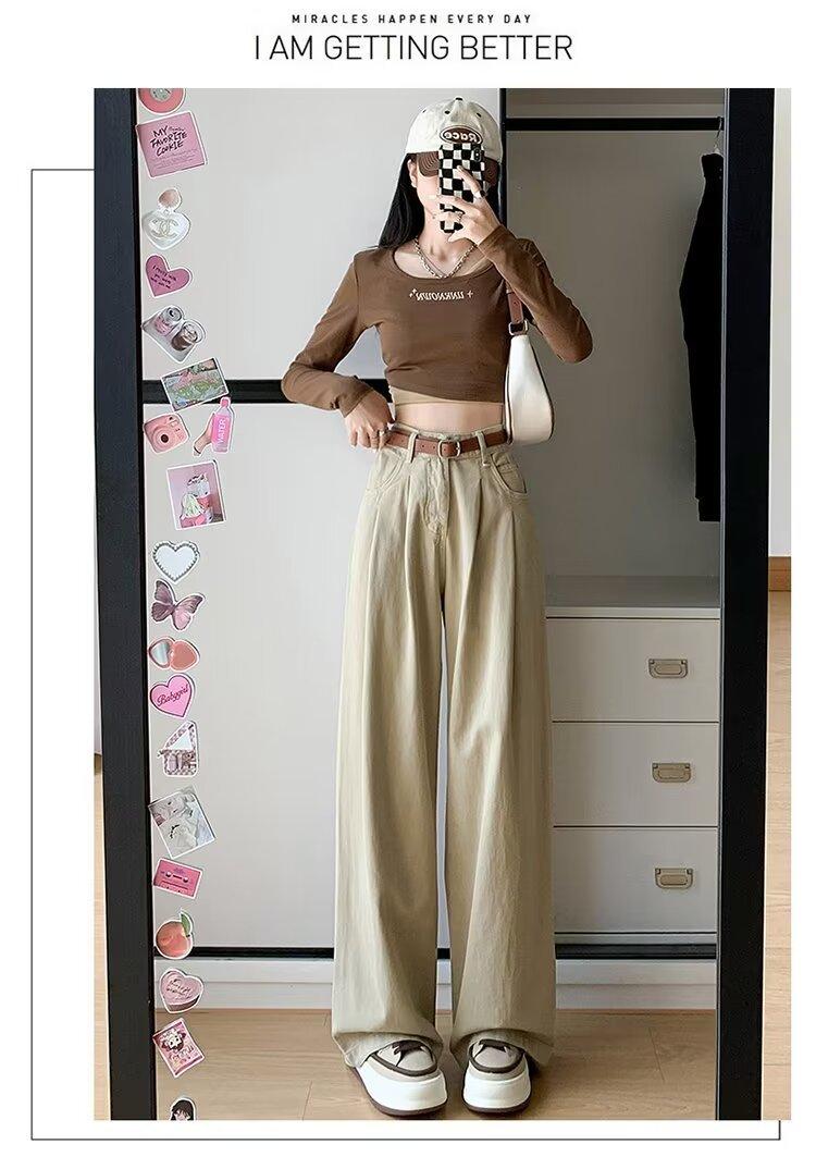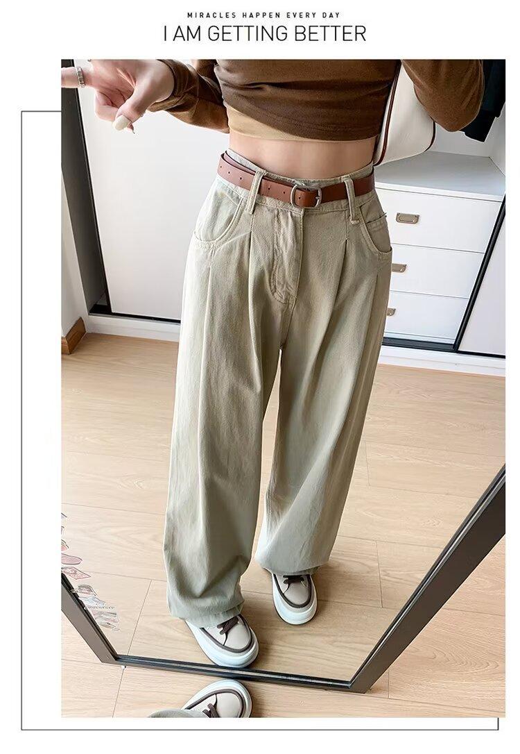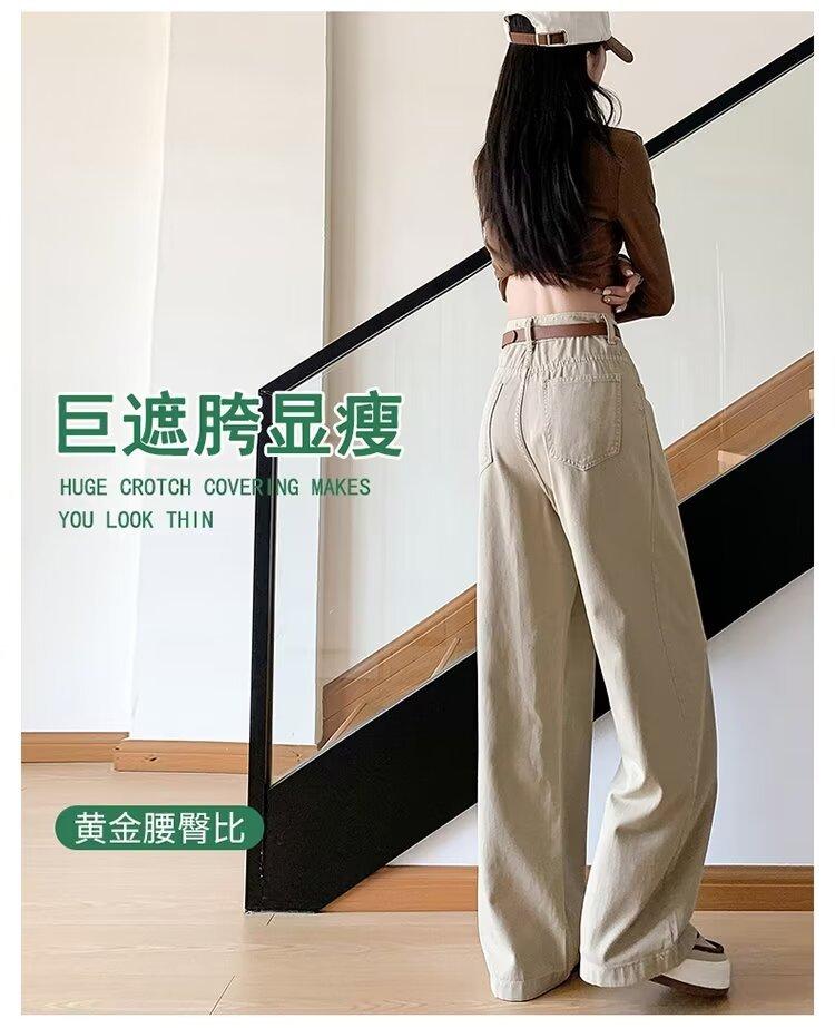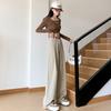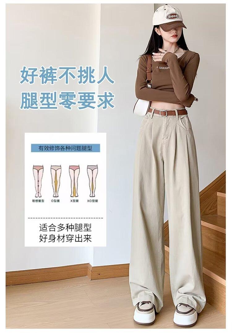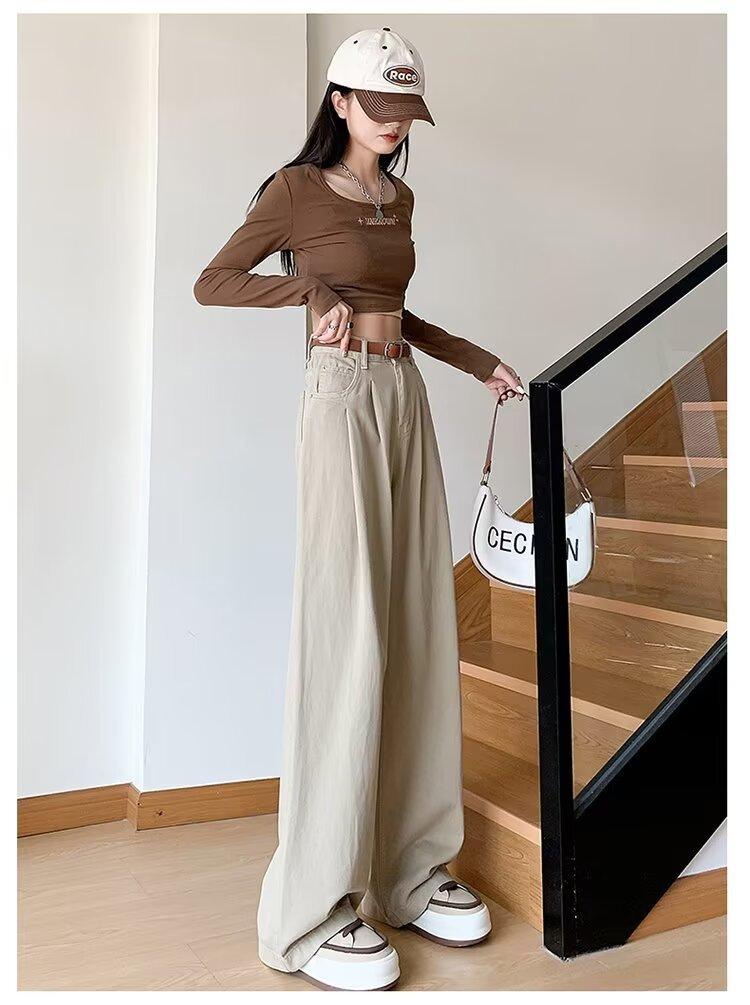 Diseño de tiro real pantalones casuales negros para mujer 2024 Otoño Nuevo Cintura alta drapeado pequeño recto casual pierna ancha