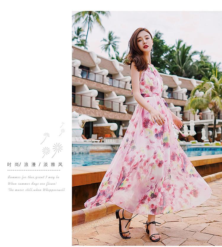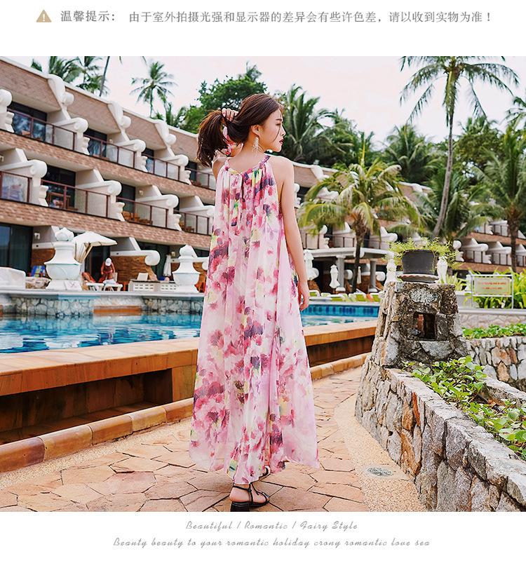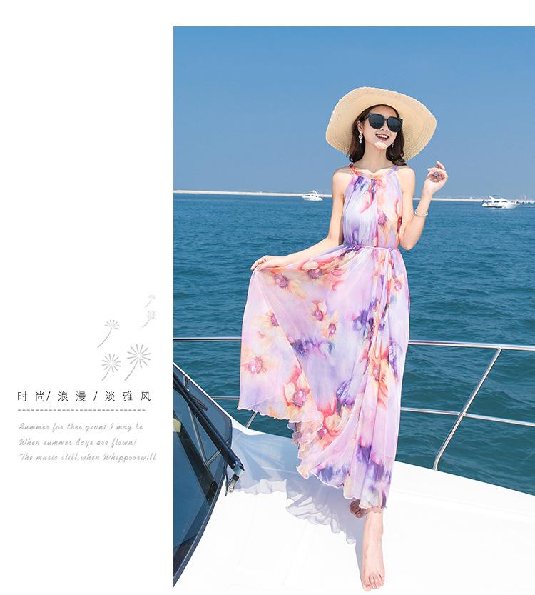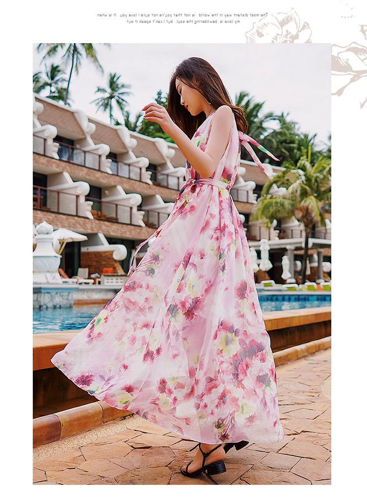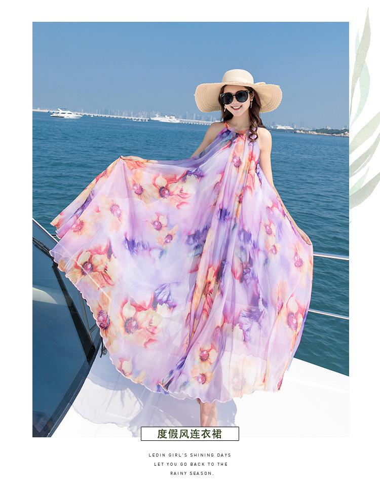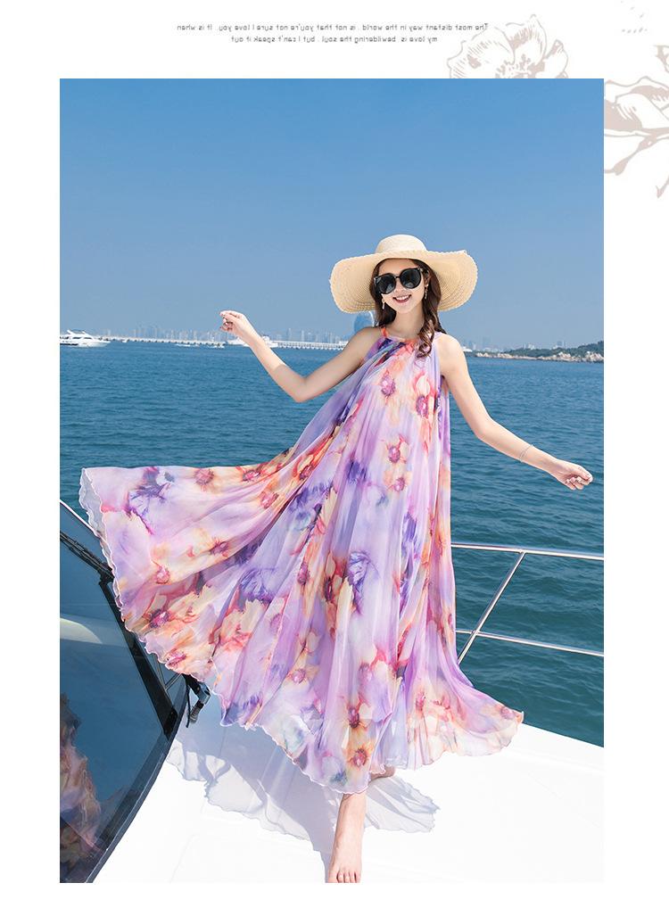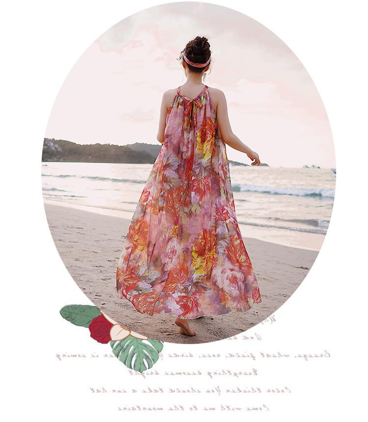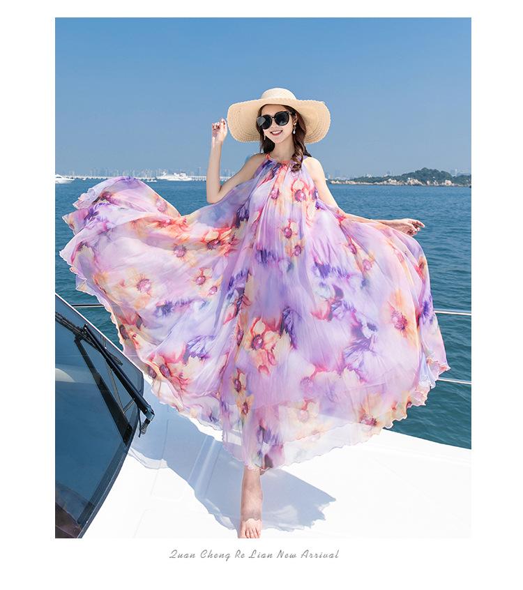 Foto Real Vestido de Chifón Floral con Tirantes Talla Grande Largo Bohemio Vacaciones Playa Cuello Vestido Largo Hada