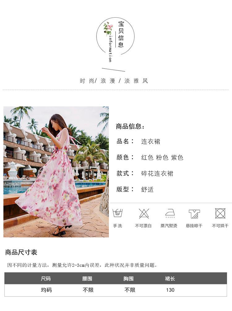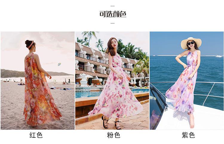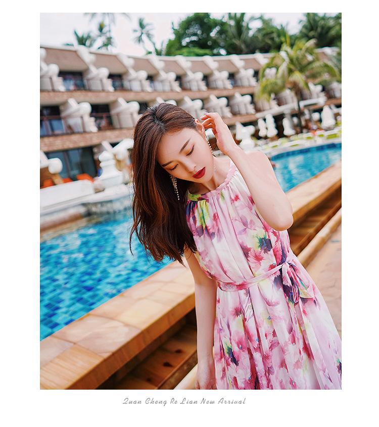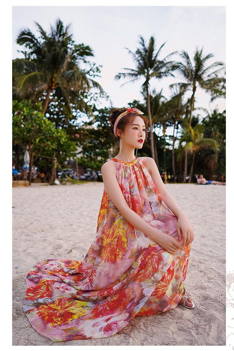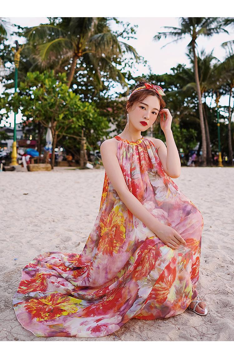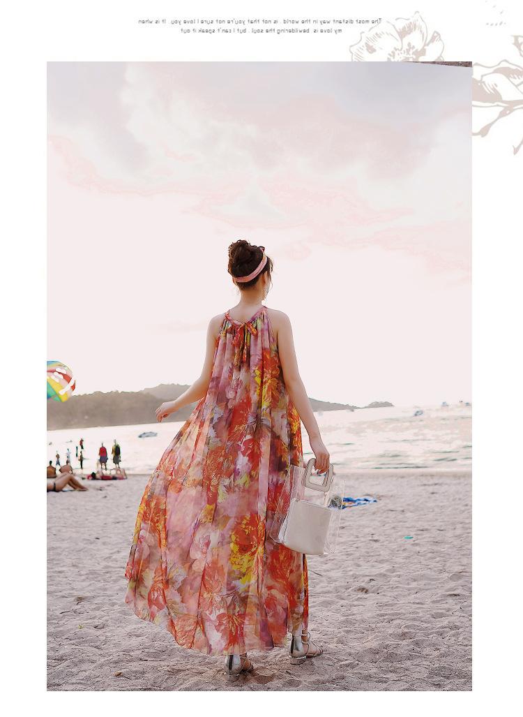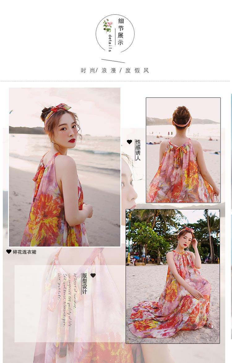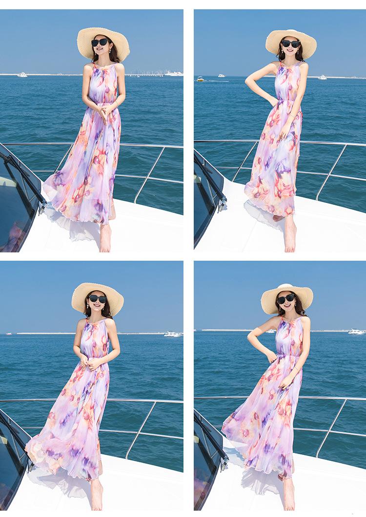 Foto Real Vestido de Chifón Floral con Tirantes Talla Grande Largo Bohemio Vacaciones Playa Cuello Vestido Largo Hada